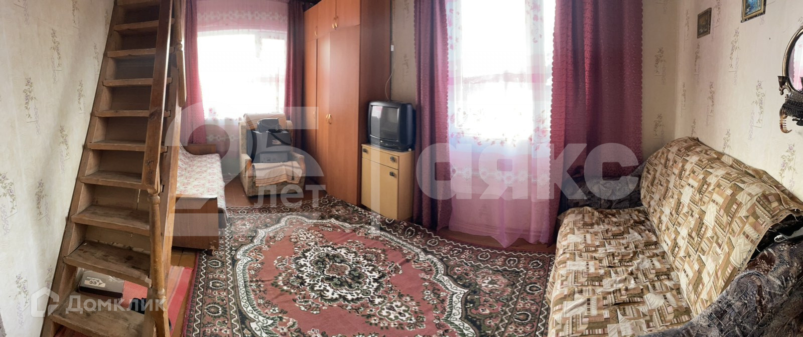 2 этажа, на 1 этаже коридор, туалет, кухня, большая комната и маленькая, на 2 этаже комната большая с балконом.
