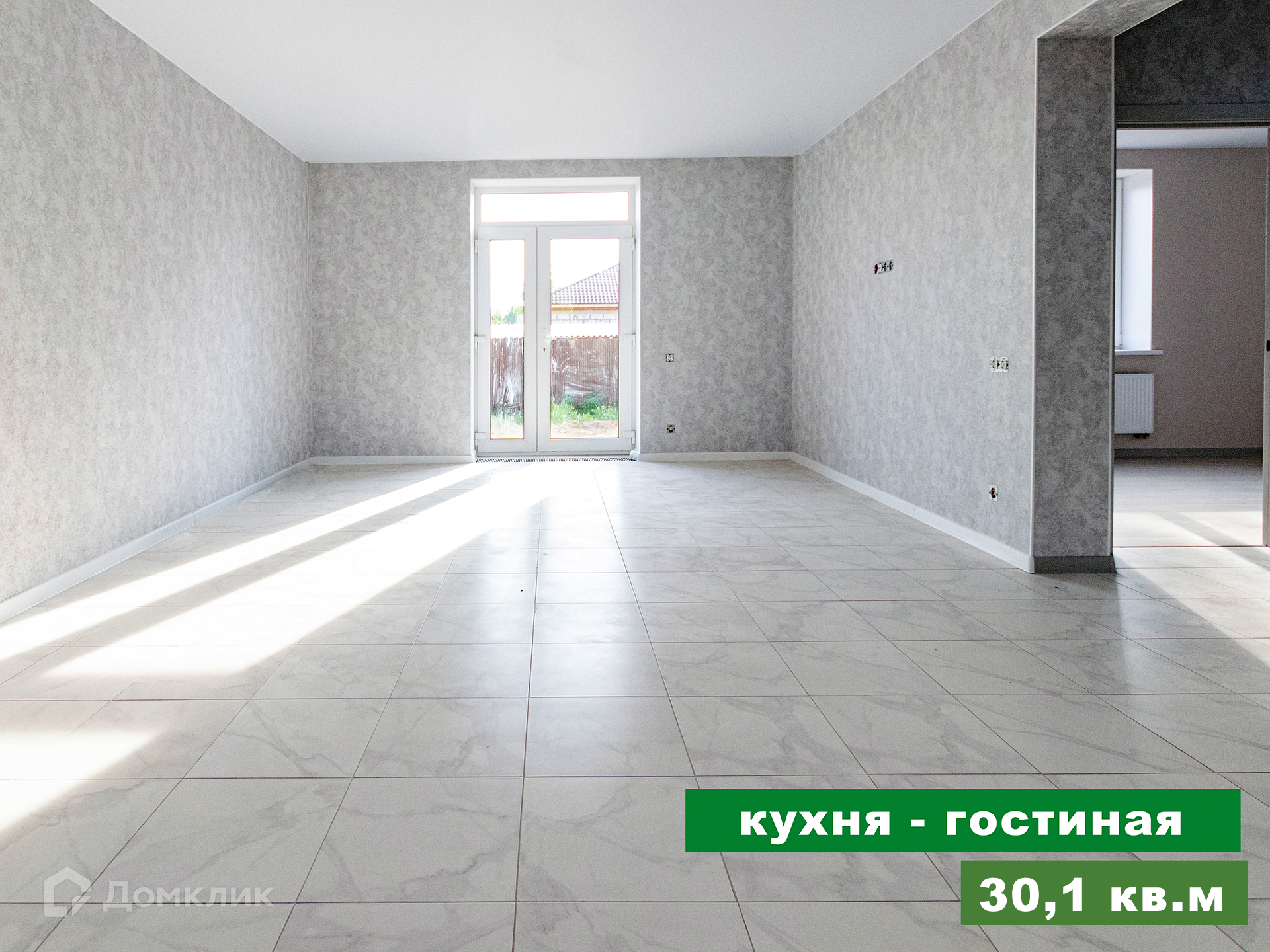 Выход на задний двор из кухни-гостиной