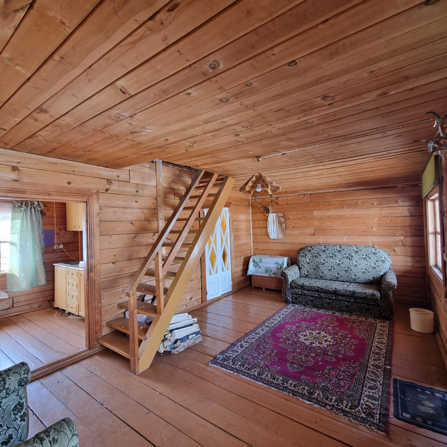 Построен из Бруса, в доме 3 комнаты.