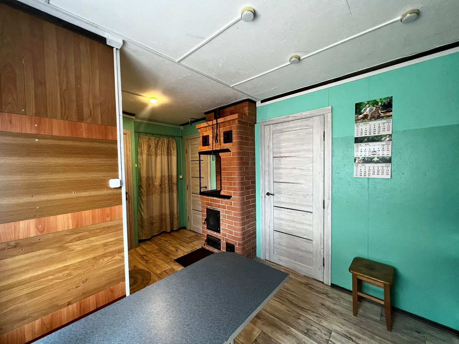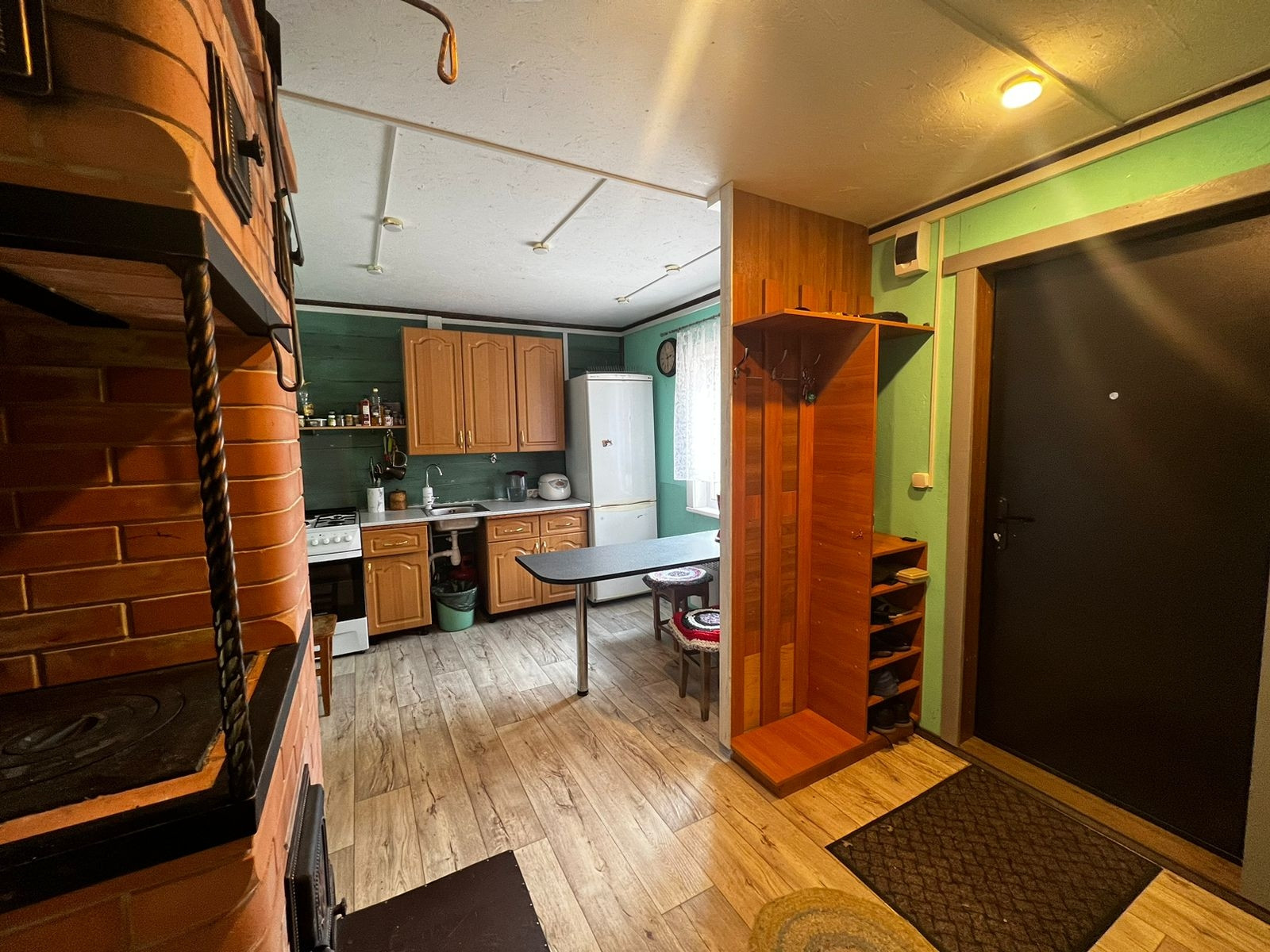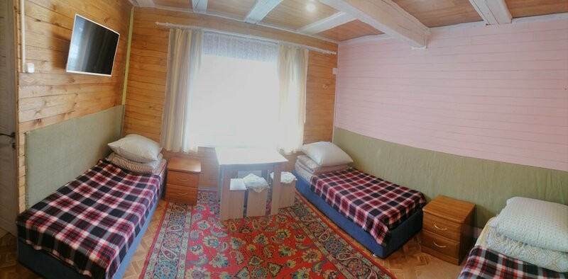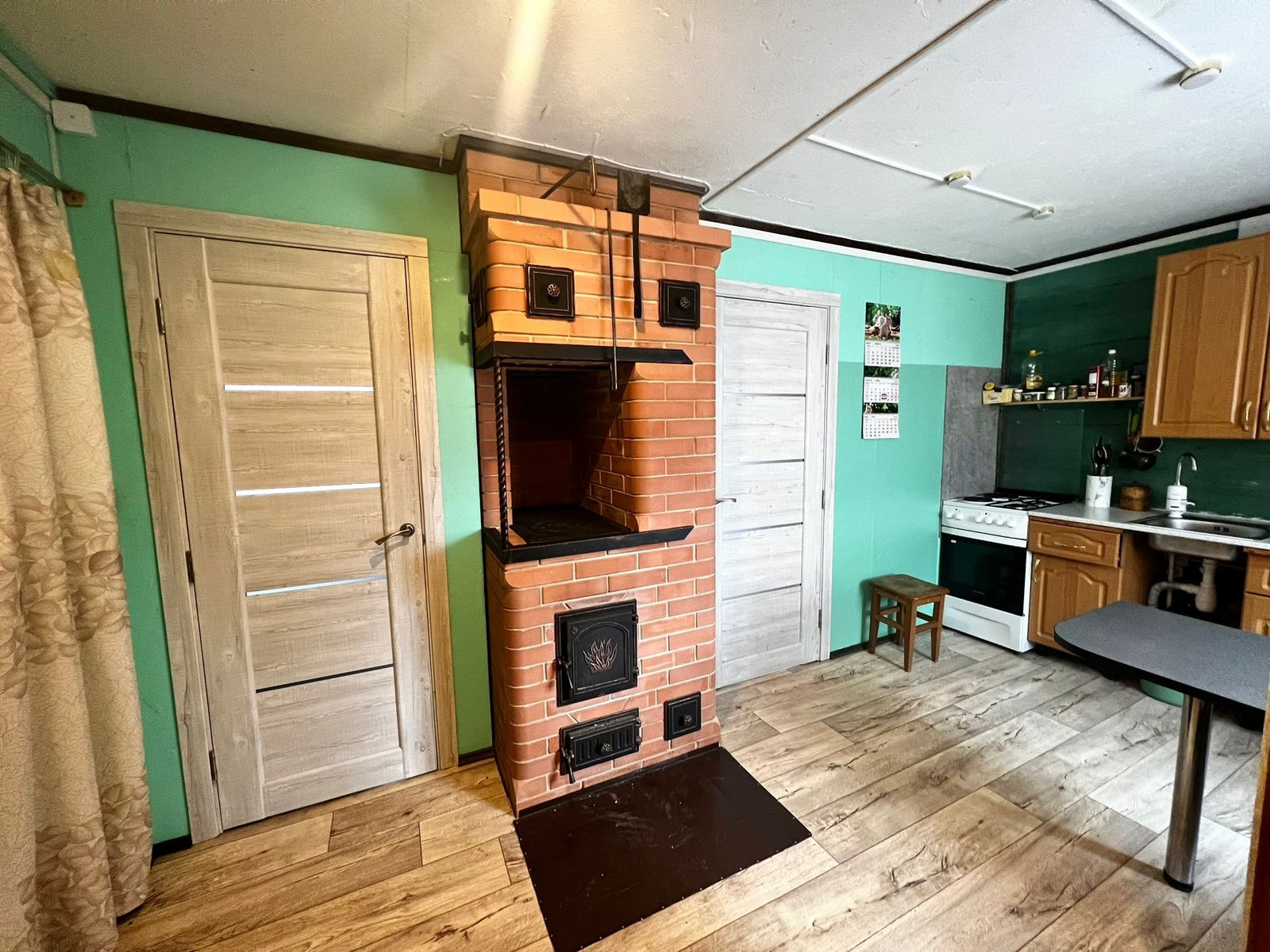 В одноэтажном доме: 2 отдельные спальни, небольшое помещение хозяйственного назначения, кухня-столовая с кирпичной печью и сан узел с ванной комнатой.