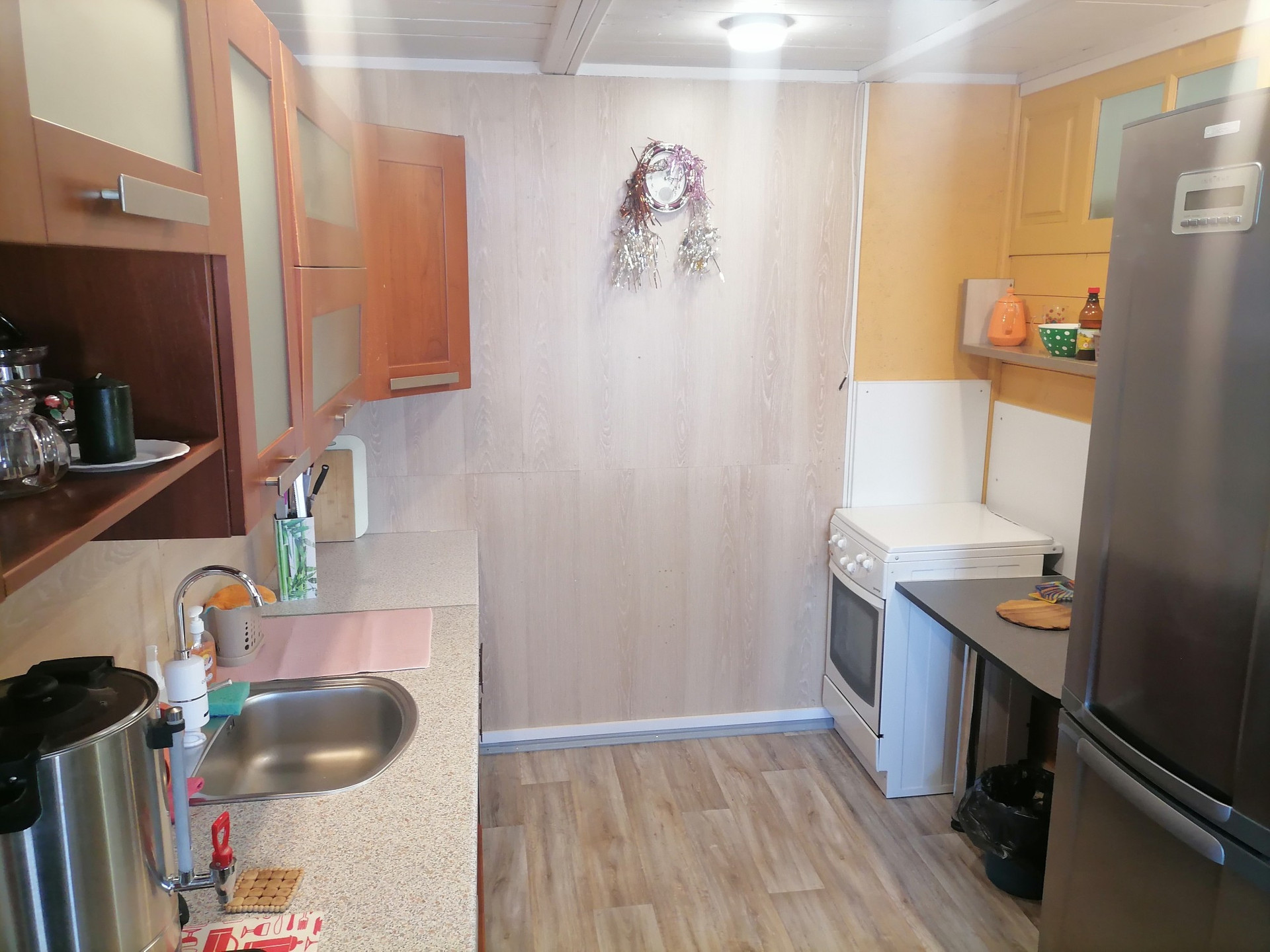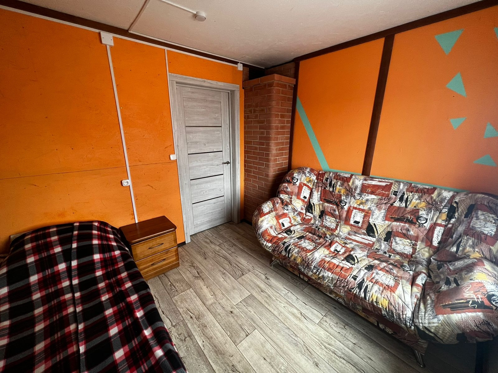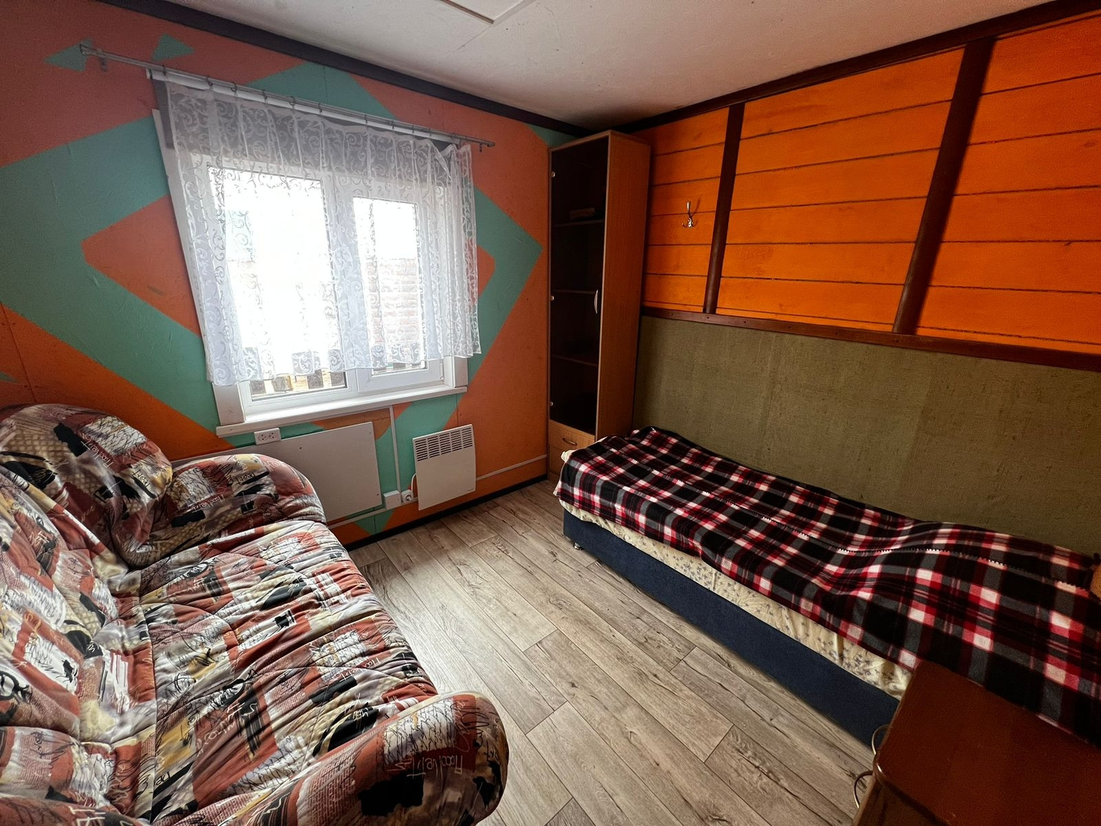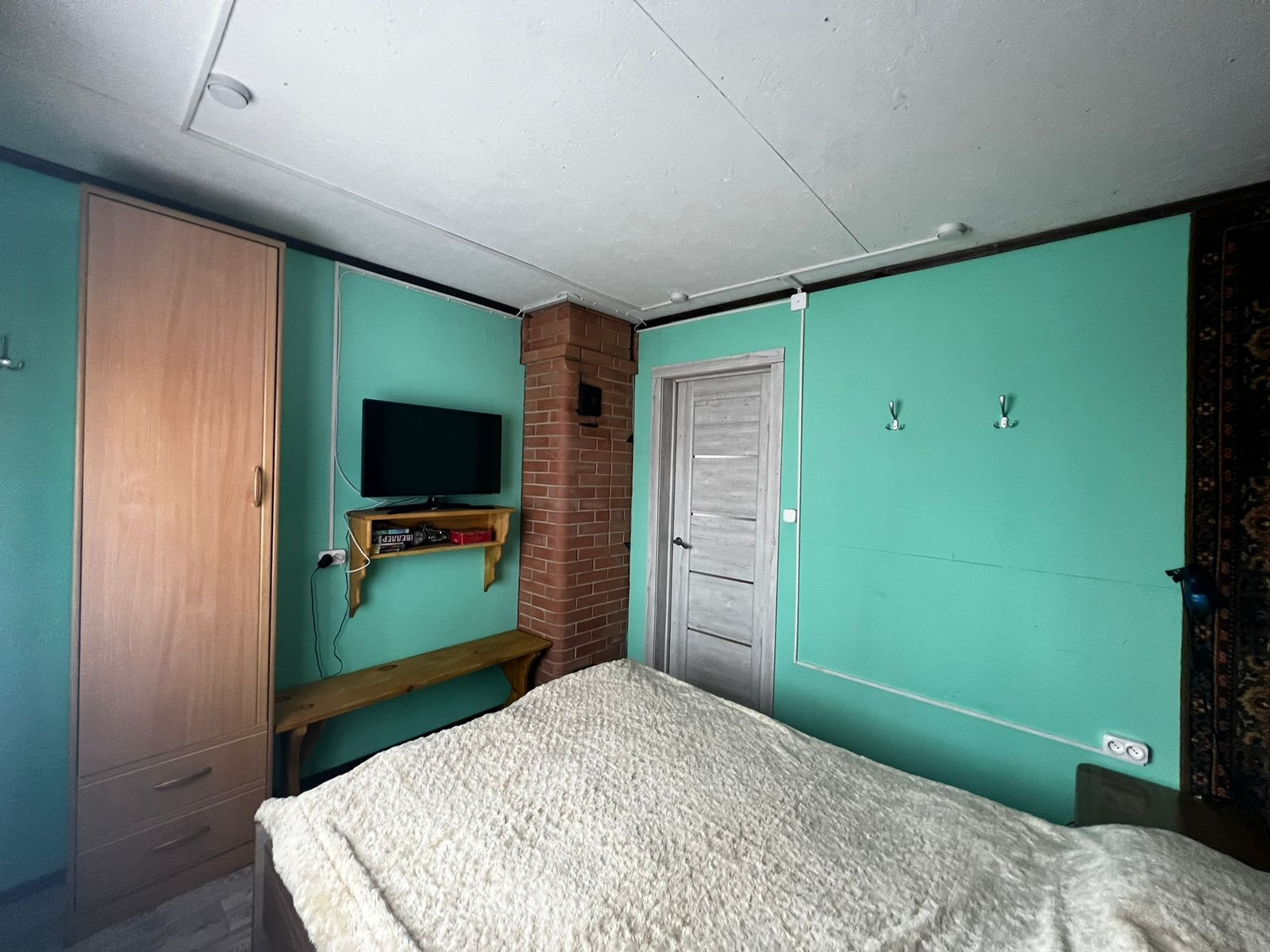 В одноэтажном доме: 2 отдельные спальни, небольшое помещение хозяйственного назначения, кухня-столовая с кирпичной печью и сан узел с ванной комнатой.