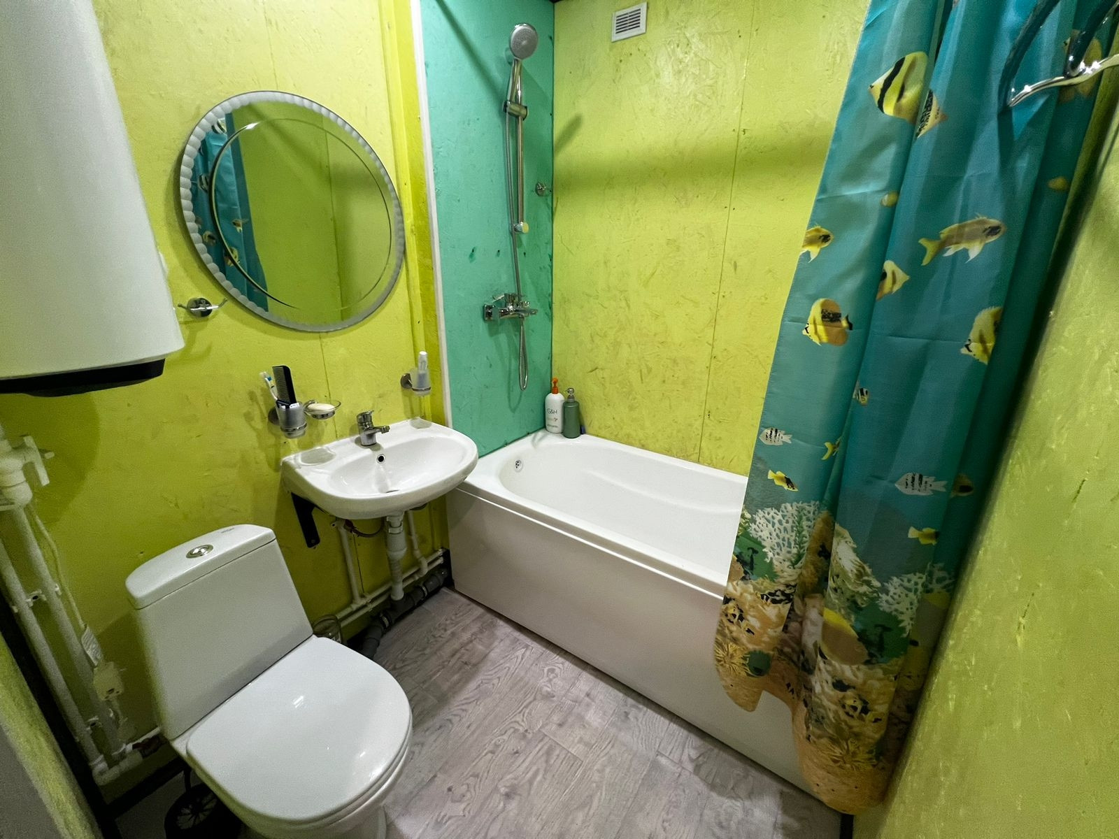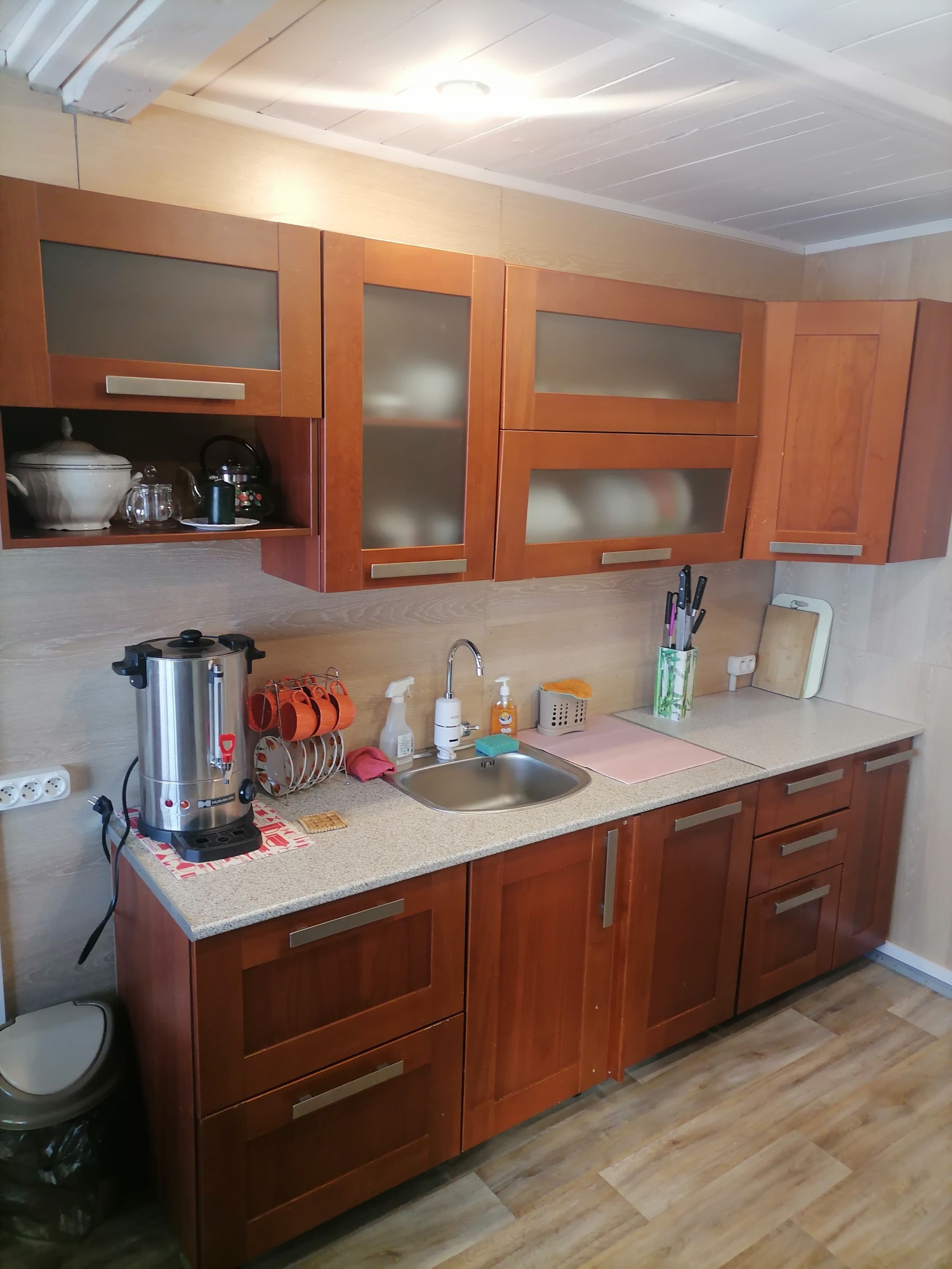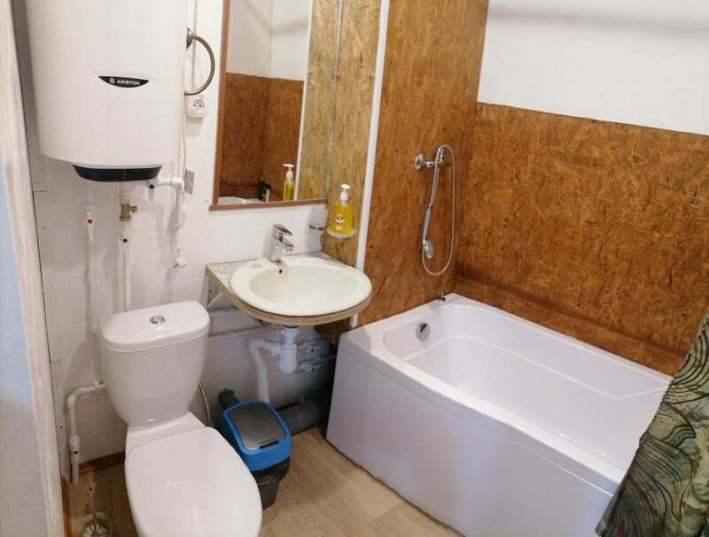 В каждом доме установлен гидроаккумулятор, в каждом сан узле дома водонагреватель емкостью 100 л.
