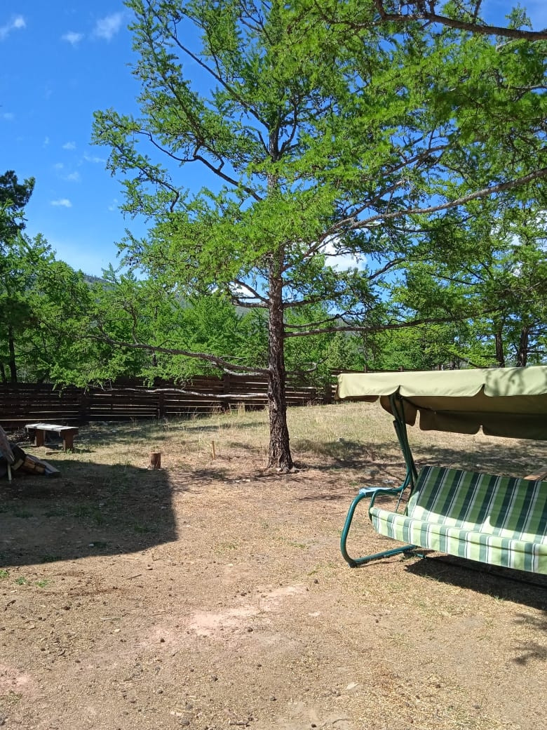 Участок площадью 12 соток ровный, правильной прямоугольной формы, позволяет достройку. Произрастают красивые лиственницы. Имеется паспорт участка и межевание границ площадью 12 соток, по периметру огорожен деревянным забором с распашными воротами.