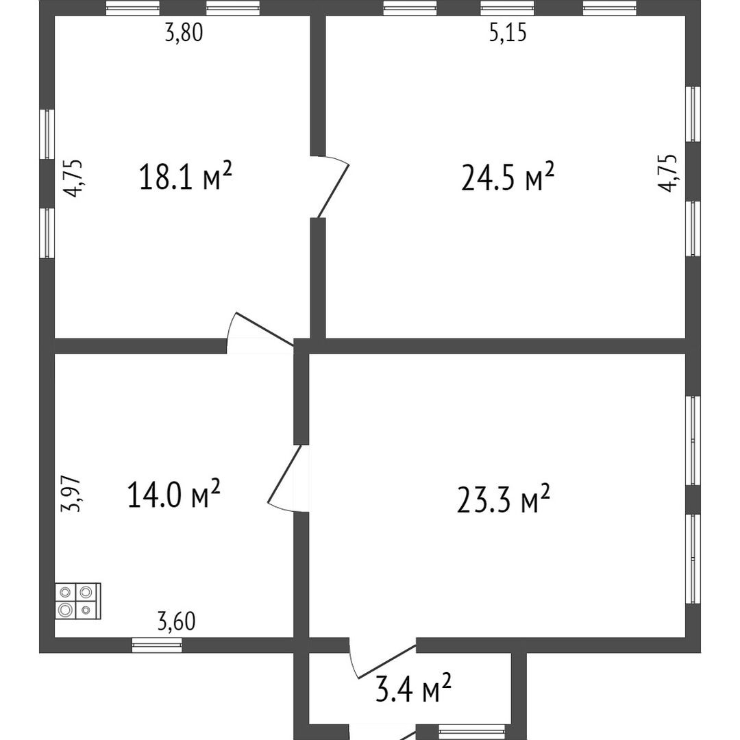 Общая площадь 56.6 м2