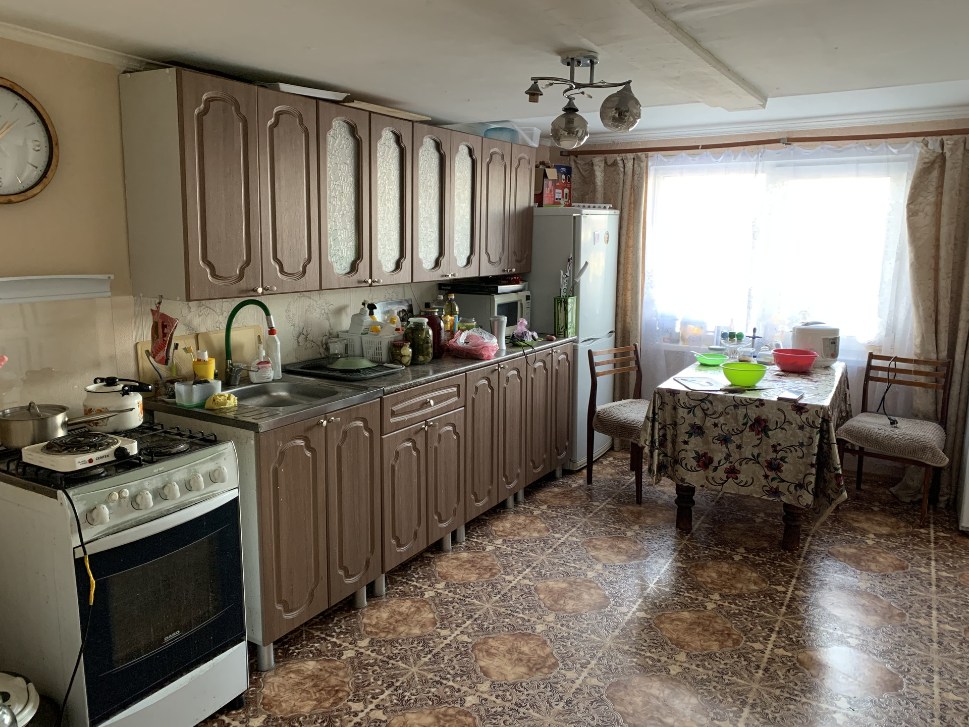 Дом из бревна и бруса, состояние хорошее. В доме большая кухня, 2 просторные комнаты. Есть комната с отдельным входом и своей печью. Кухонный гарнитур сделан под заказ, можем оставить. Отопление печное. К дому подведён газ, при желании можно подключить.