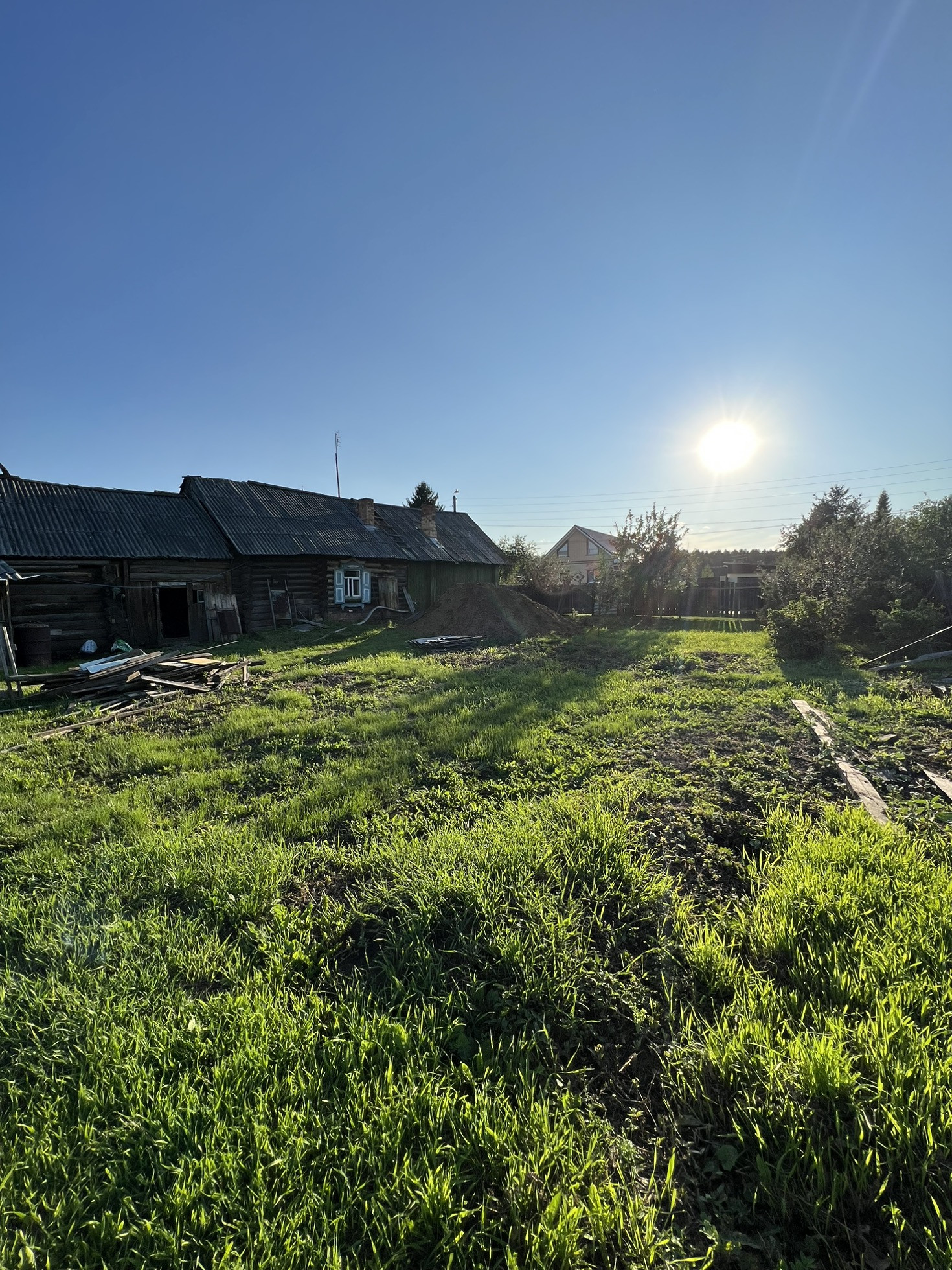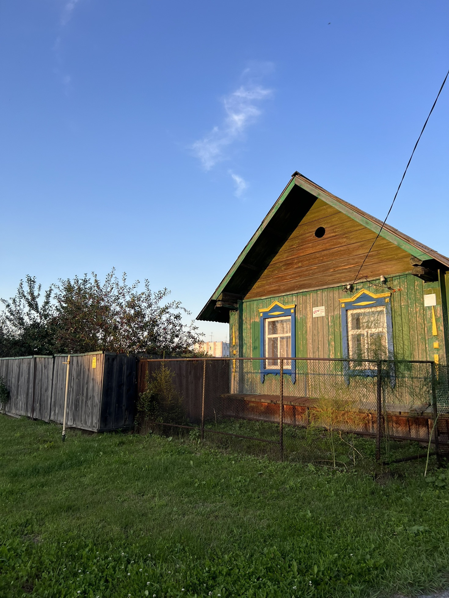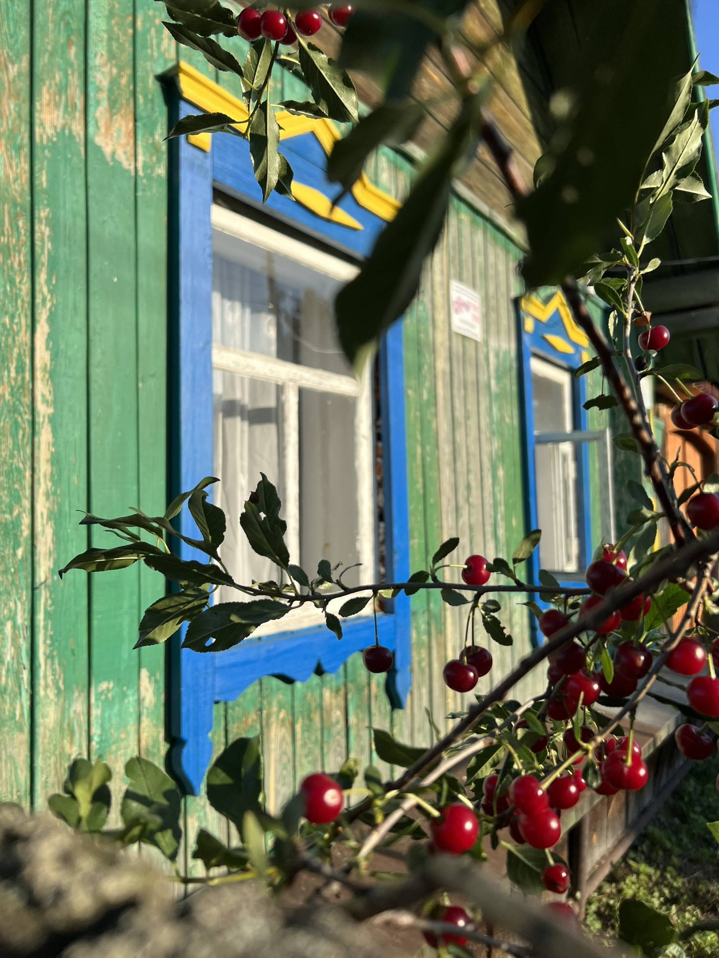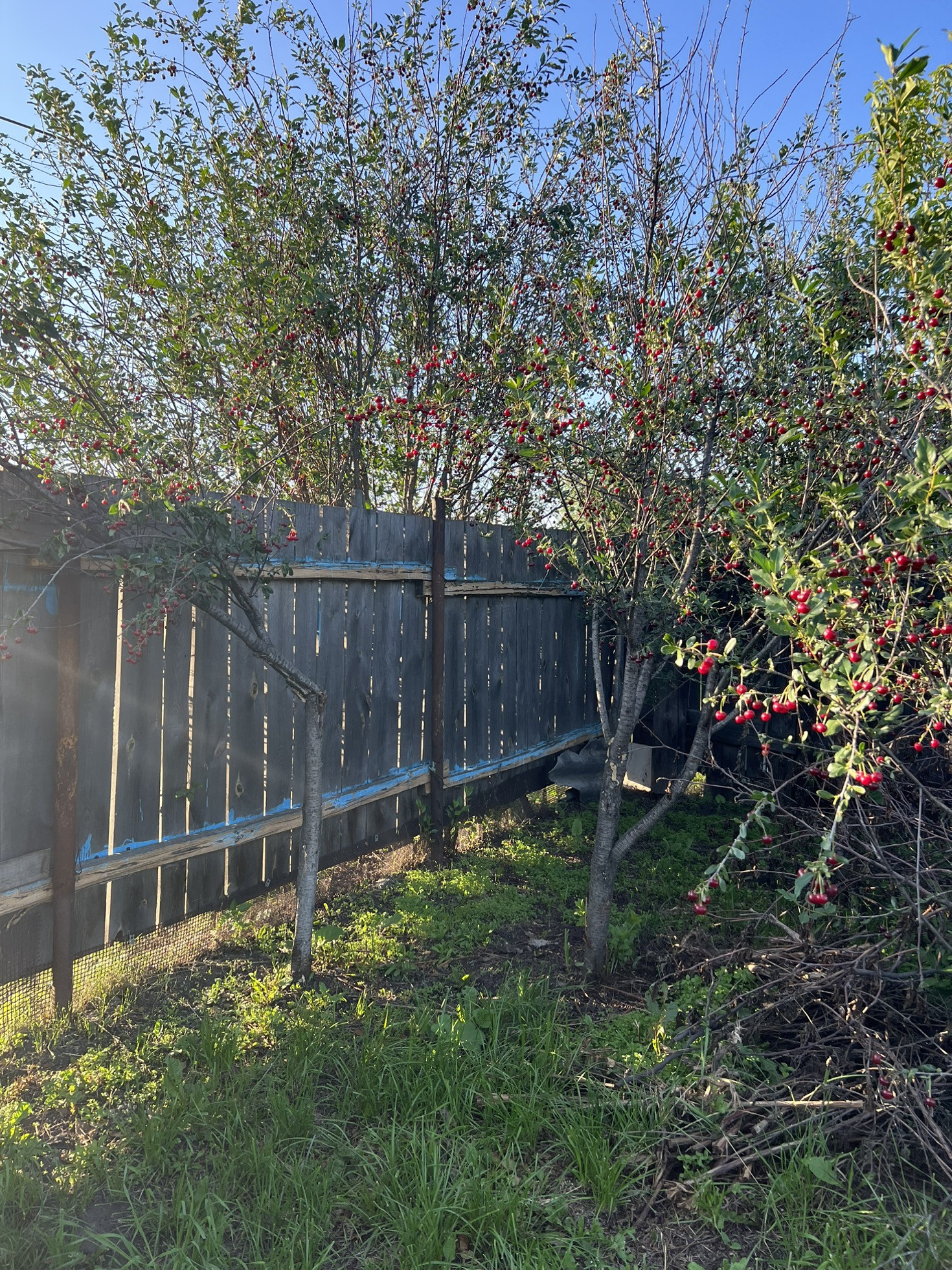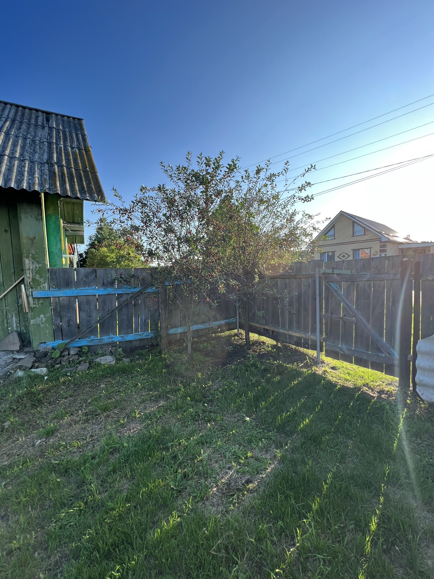 В саду несколько яблонь, вишня, облепиха, несколько кустарников.