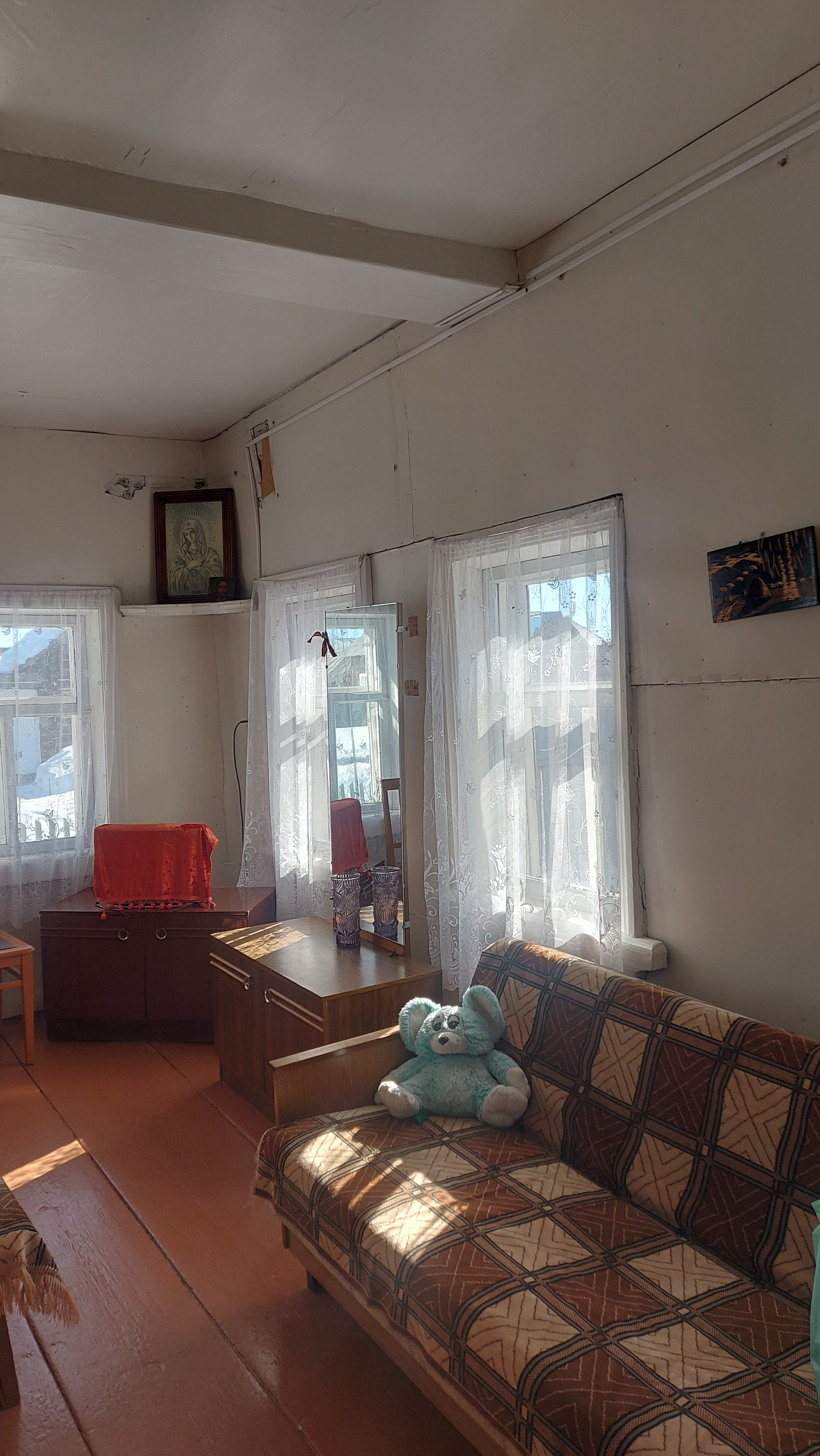В доме прихожая-кухня + большая светлая комната (5 окон).