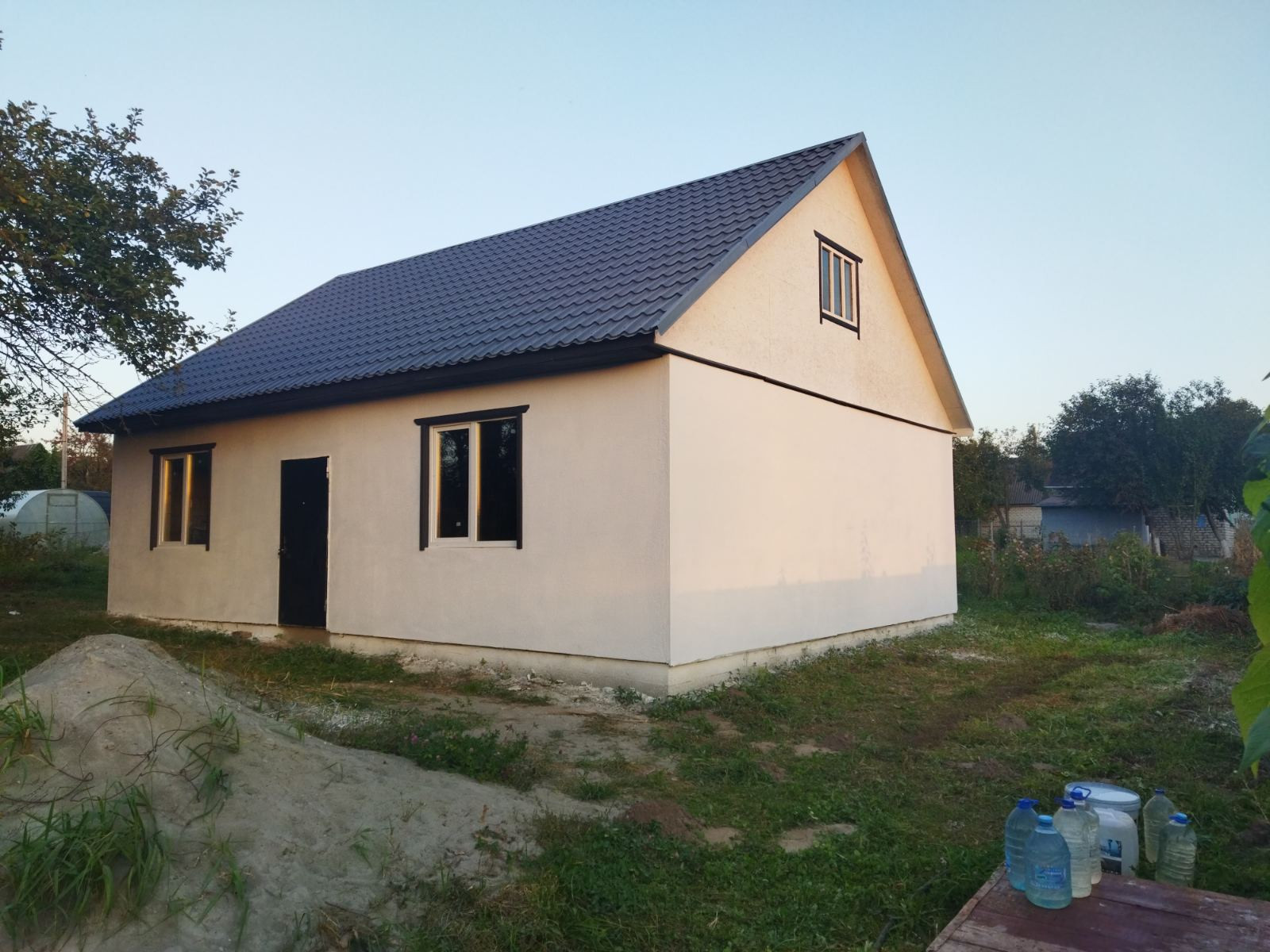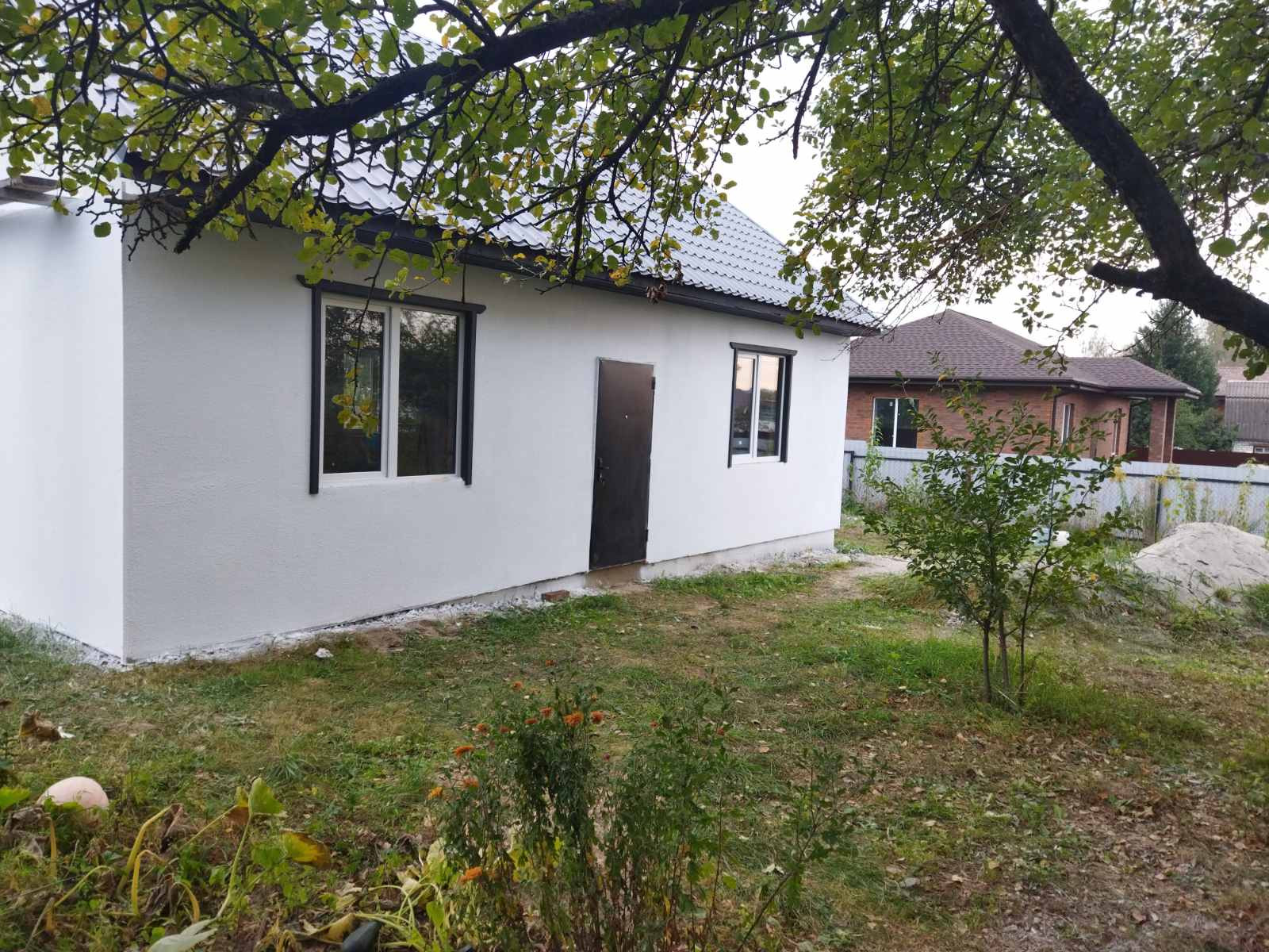 Первый этаж 72 метра, возможно обустроить второй этаж, там 45 метров, это две большие комнаты. Свет, вода, газ на участке.