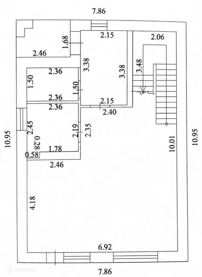 - На первом этаже расположены, прихожая – 7.4м2, сан-узел-3,6м2, котельная-5.4м2, и большая вместительная гостиная – кухня – 44.4м2. с возможностью перепланировки.