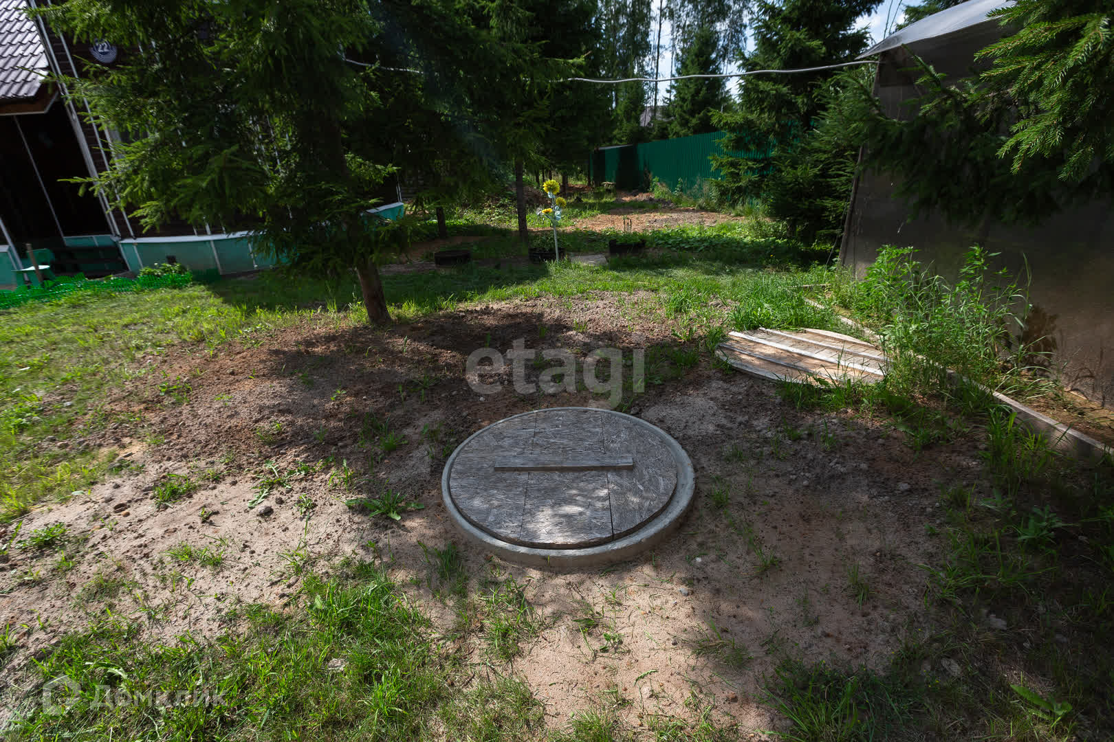 Участок ухожен и озеленён, на нём есть место для отдыха всей семьёй, с друзьями. По периметру участок огорожен забором из профнастила. Есть два заезда для машин на территорию участка. Так же имеется навес для одной машины.