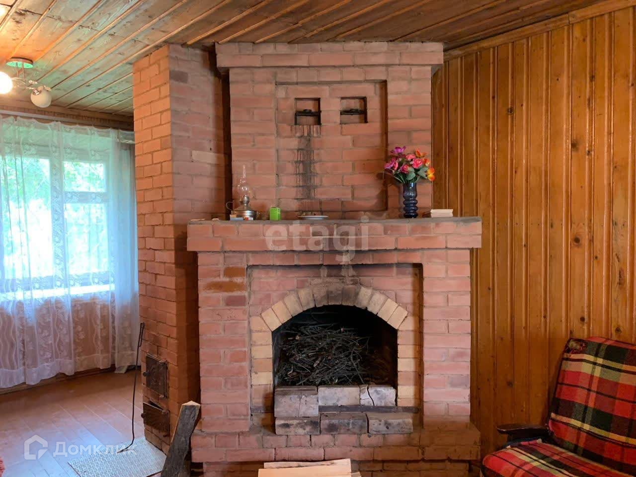 В комнате есть камин - печка, телевизор, интернет не подключён, на участке рубленная беседка,сарай, помещение для хоз. инвентаря,