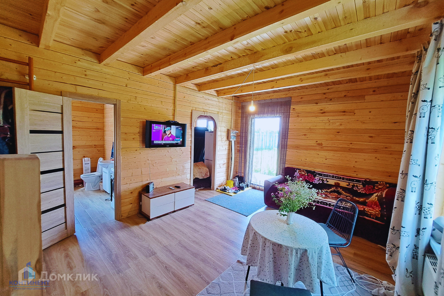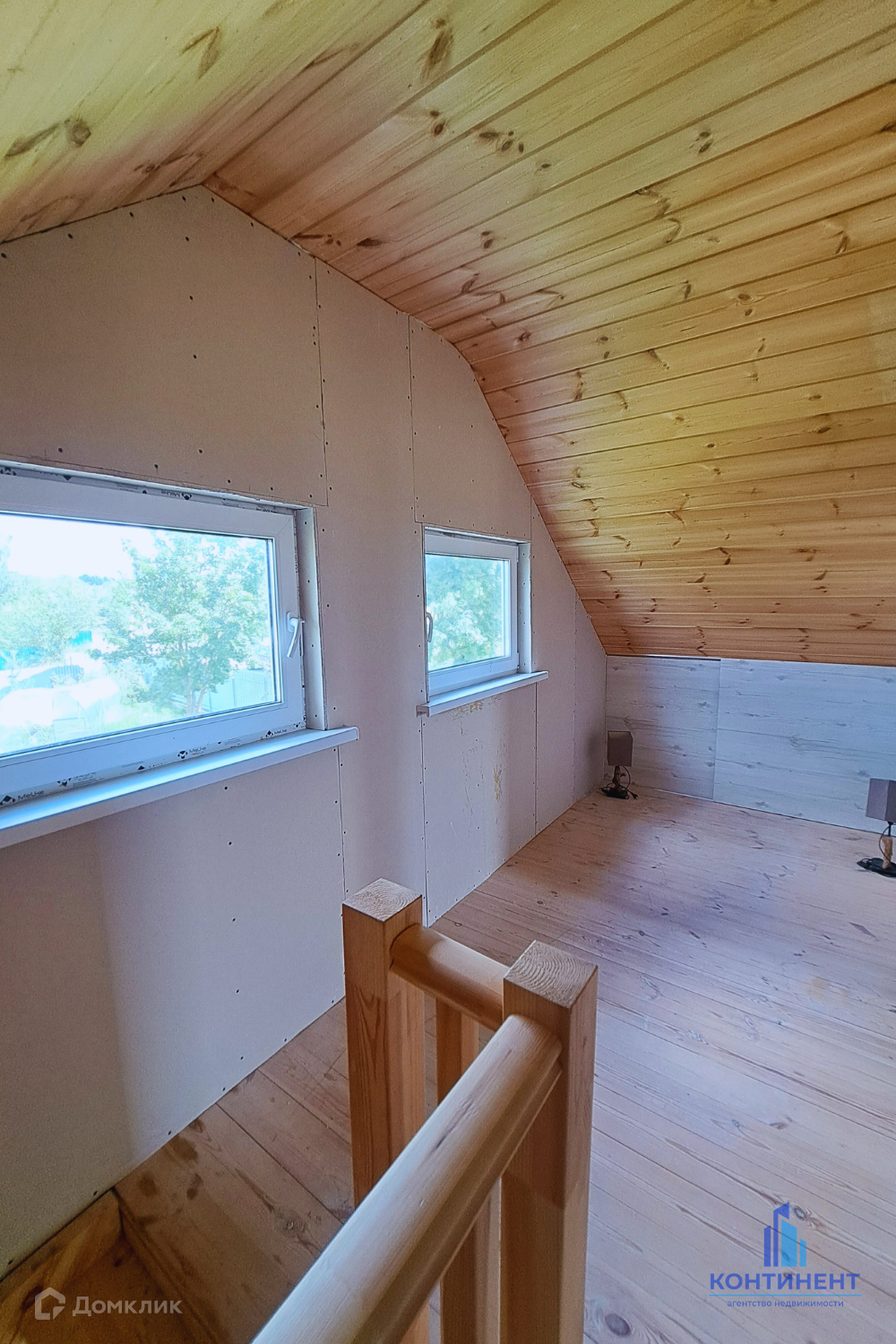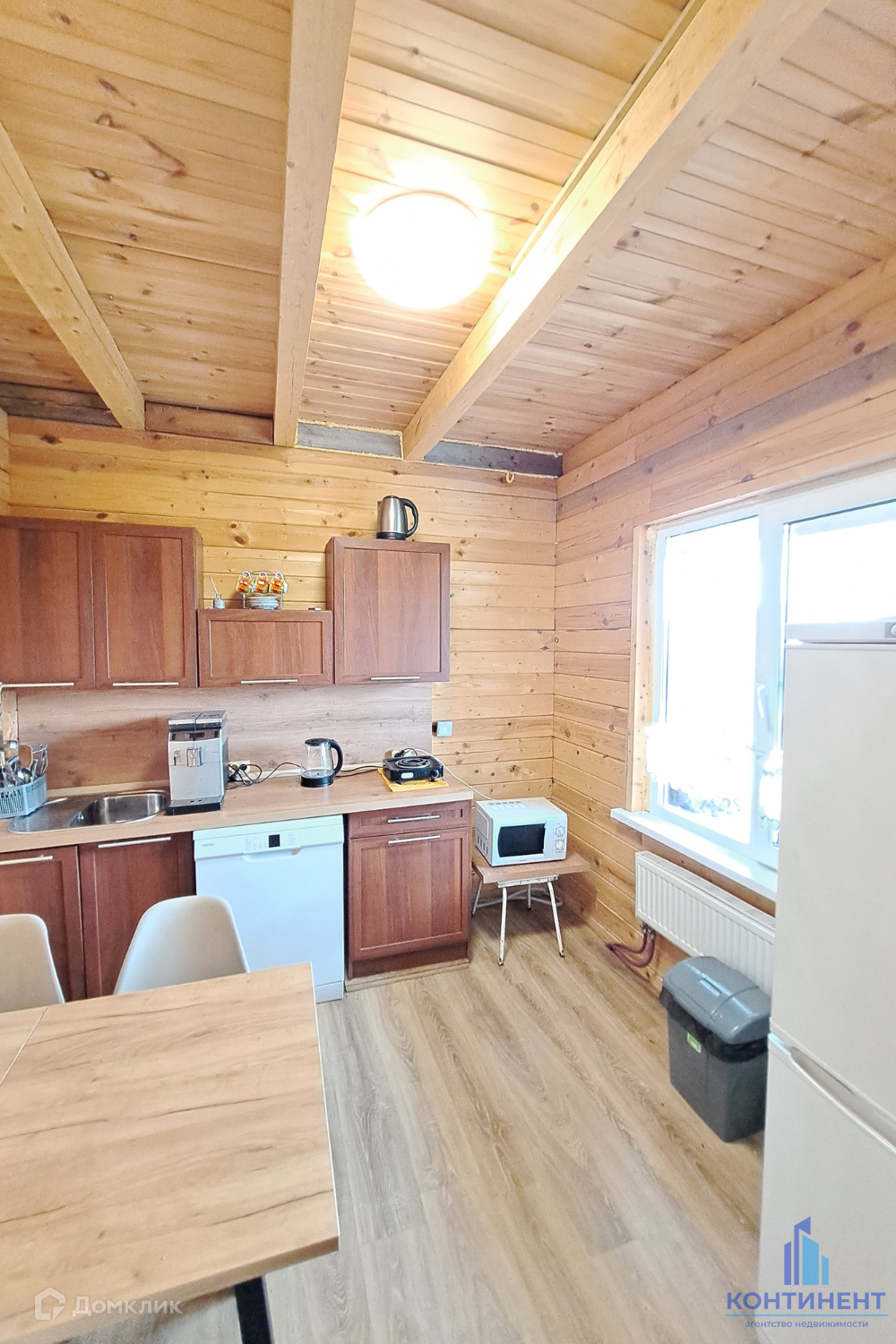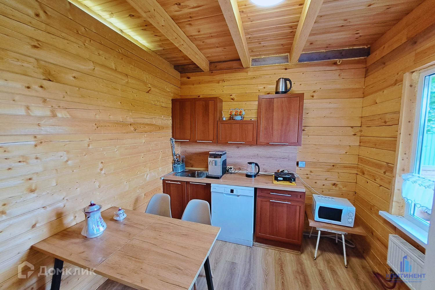 Дом изготовлен из бруса. Фундамент свайный. Первый этаж - гостиная, кухня, ванная и котельная. Мансардный этаж - две спальни с выходом на балкон. Вся мебель и техника остаётся!