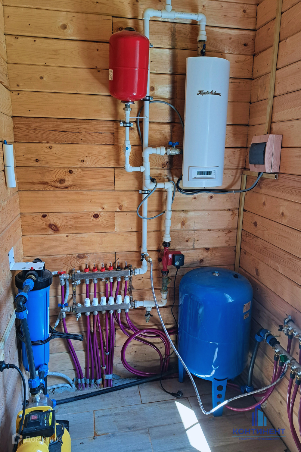 Электрическое отопление, тёплый пол на первом этаже. Электричество - 15кВт, вода - колодец, имеется насосная станция, водонагреватель. Канализация - станция биоочистки.