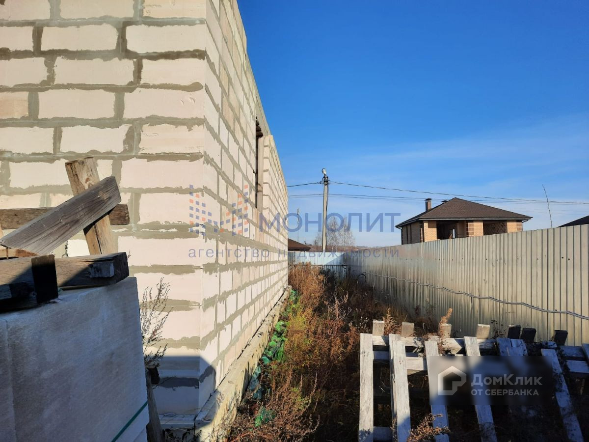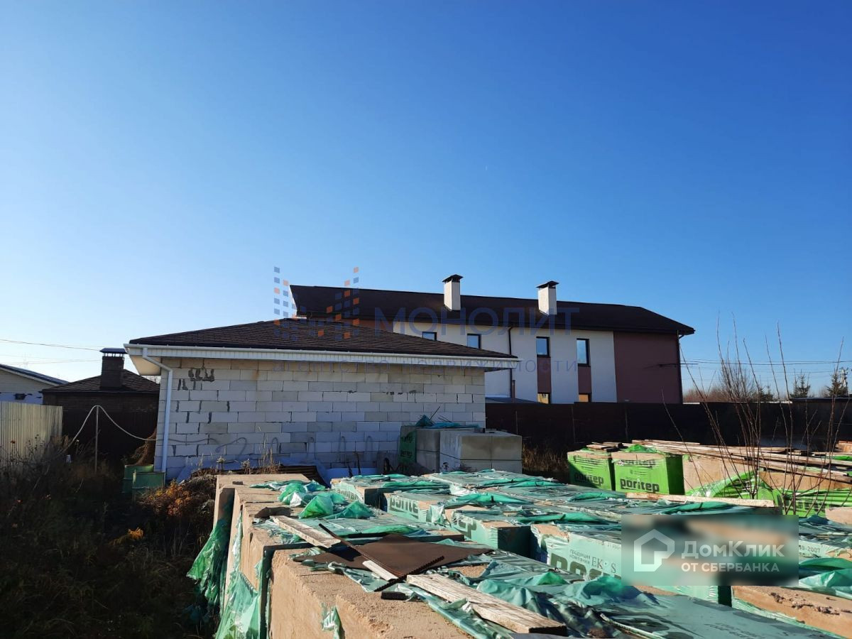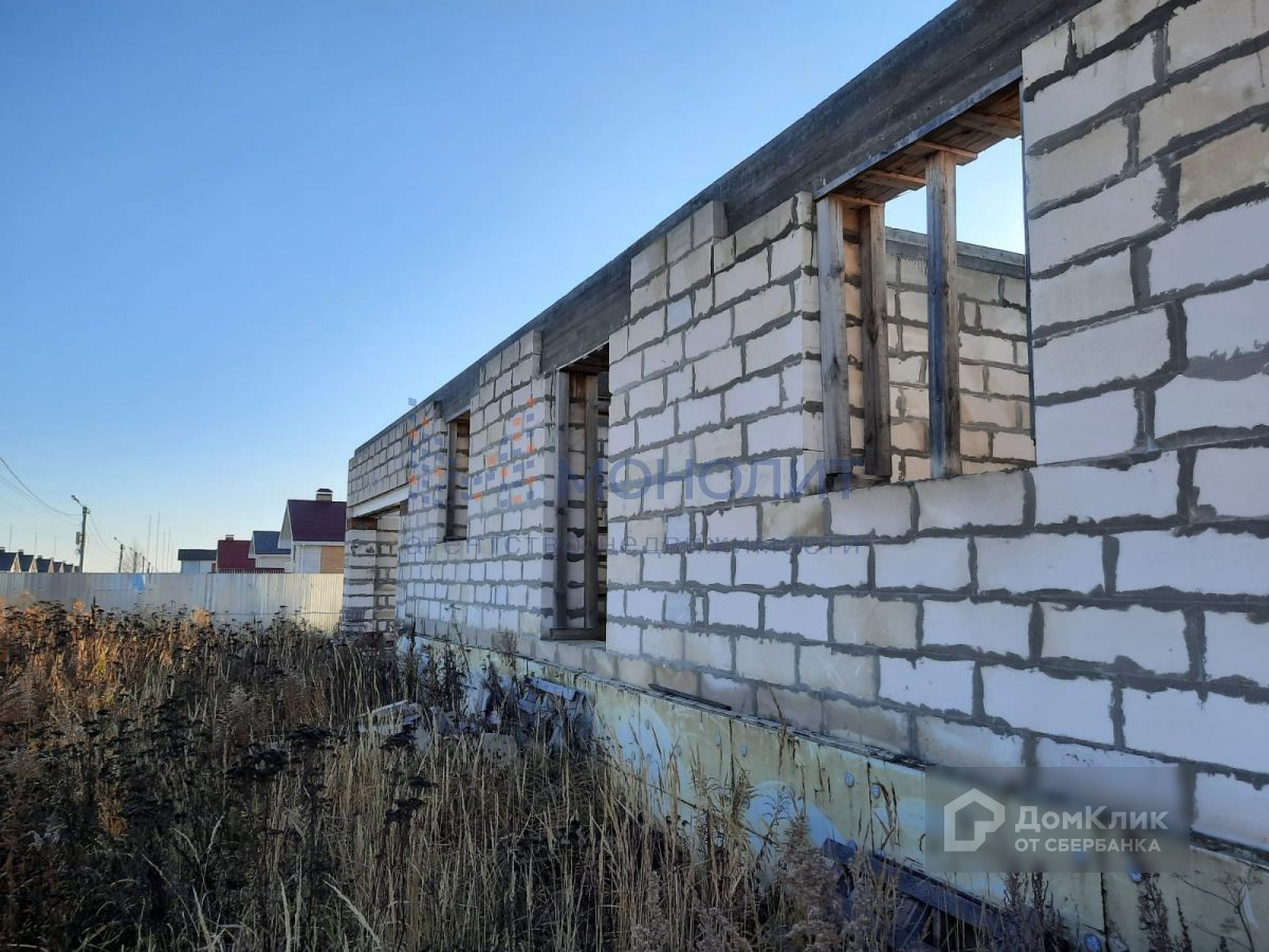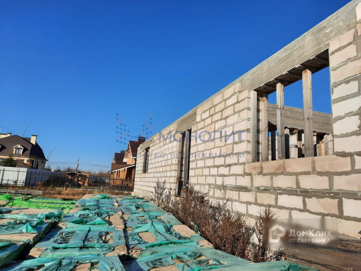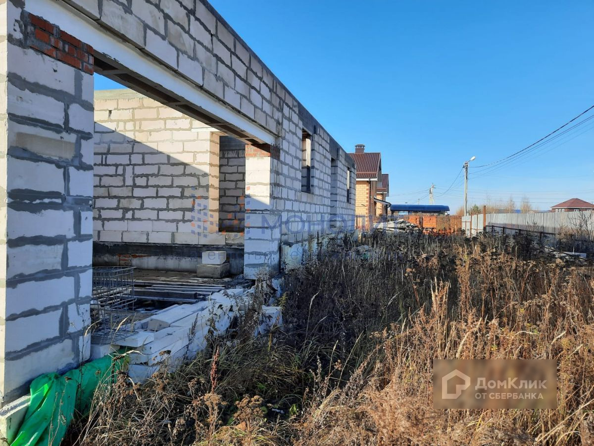 Построен цоколь на 220м2 и 1 этаж на 220м2, перекрытия плиты, весь материал для 2 этажа на участке в пачках + 2 тонны арматуры и металла. На территории отдельное строение из блоков 6м на 6м под крышу, 2 контейнера по 20т и забор по всему периметру. ТУ на газ получены.