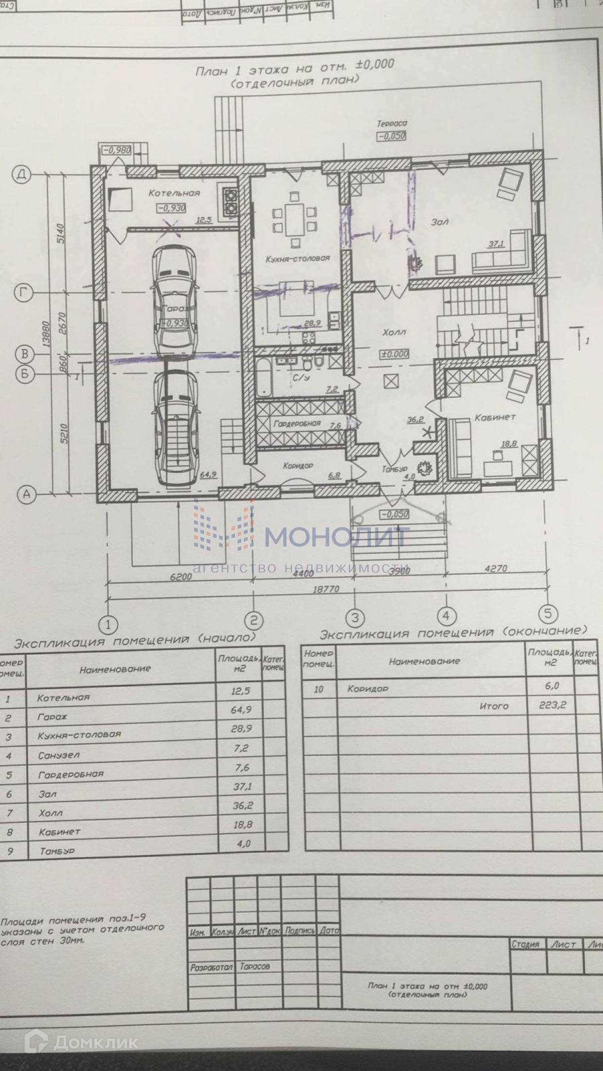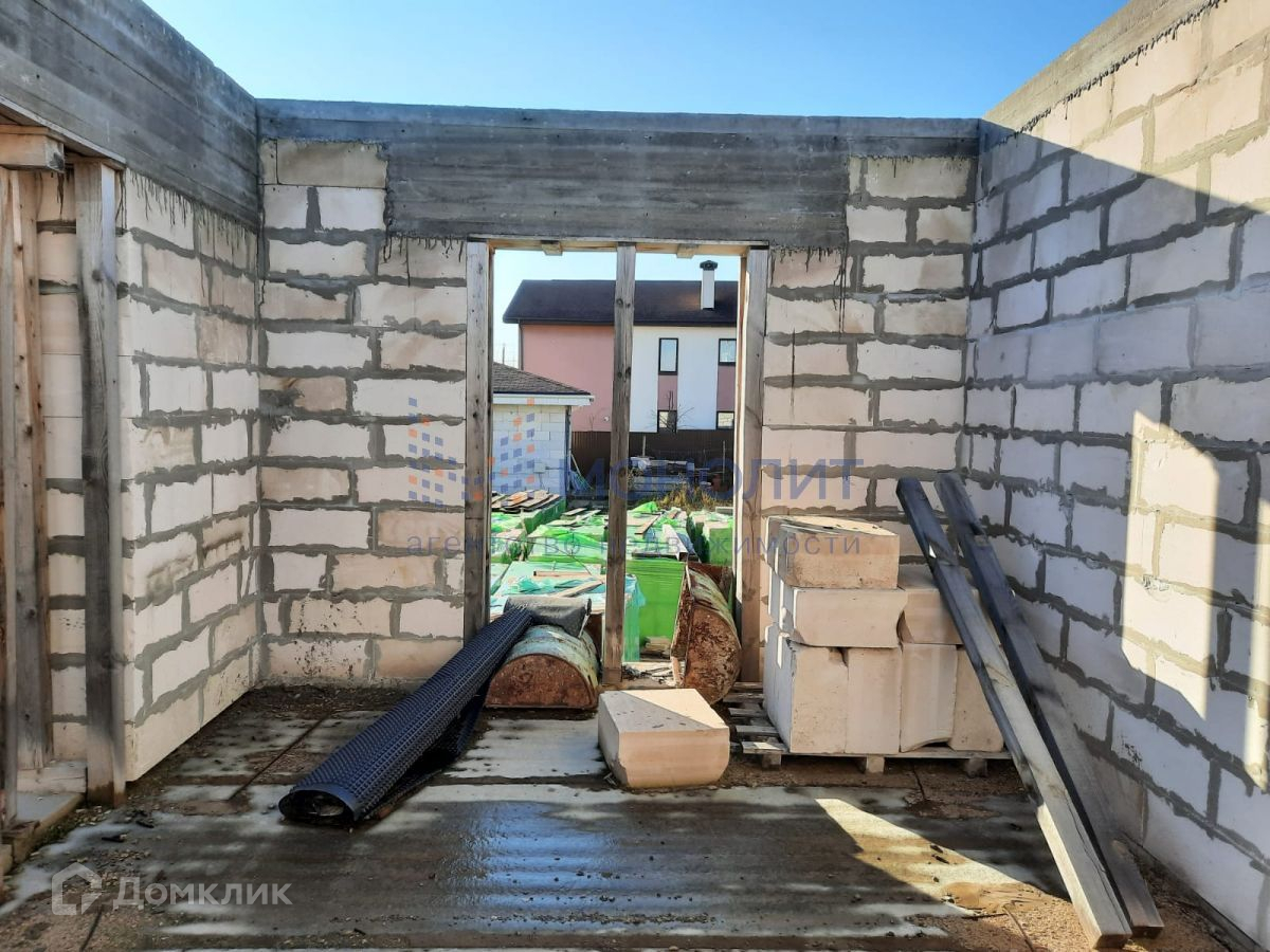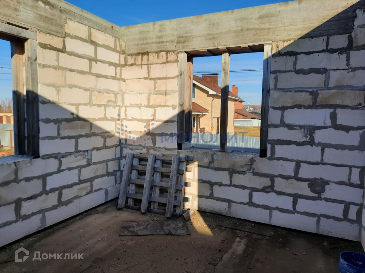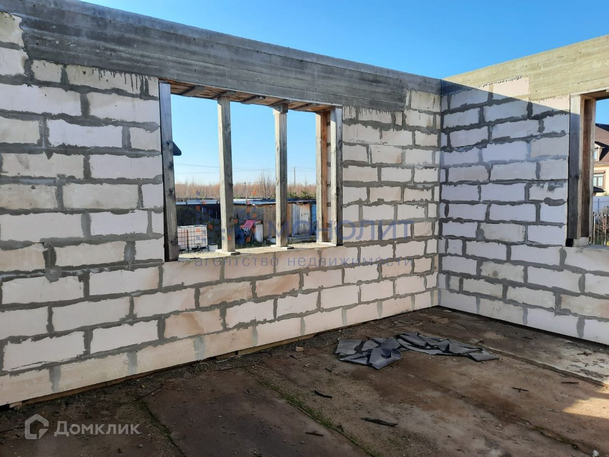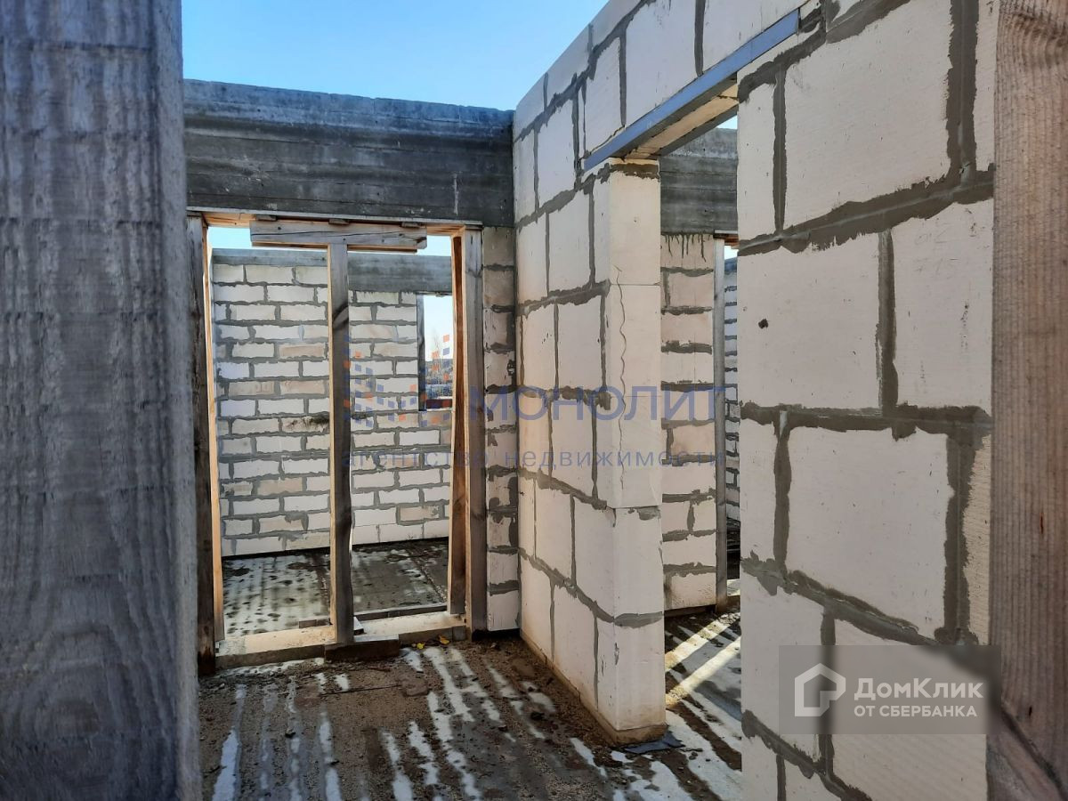 Построен цоколь на 220м2 и 1 этаж на 220м2, перекрытия плиты, весь материал для 2 этажа на участке в пачках + 2 тонны арматуры и металла. На территории отдельное строение из блоков 6м на 6м под крышу, 2 контейнера по 20т и забор по всему периметру. ТУ на газ получены.