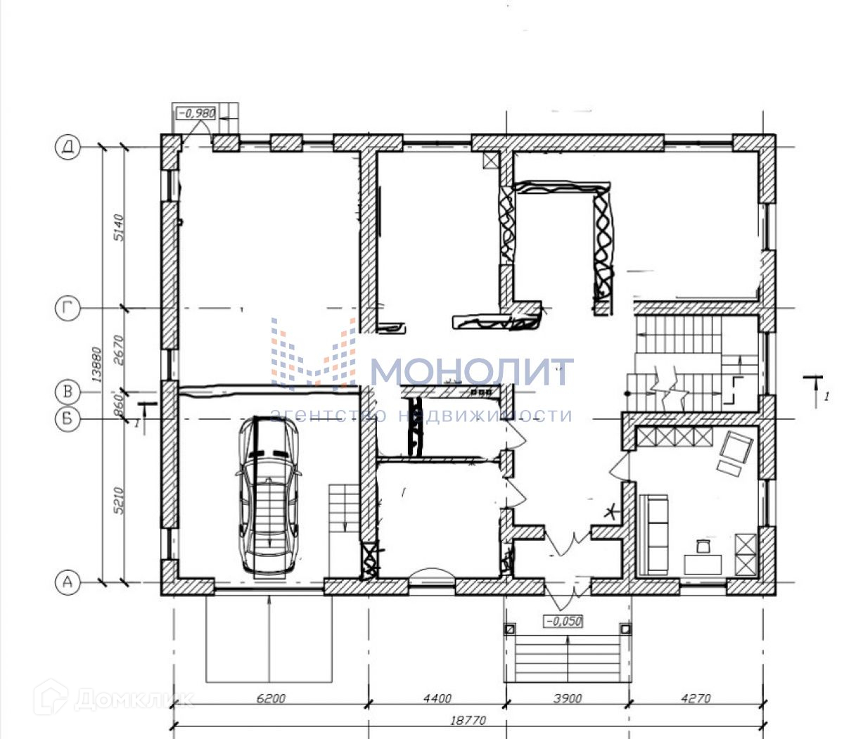 Дом построен на монолитном фундаменте из 500 блока ( обычно используется 300)