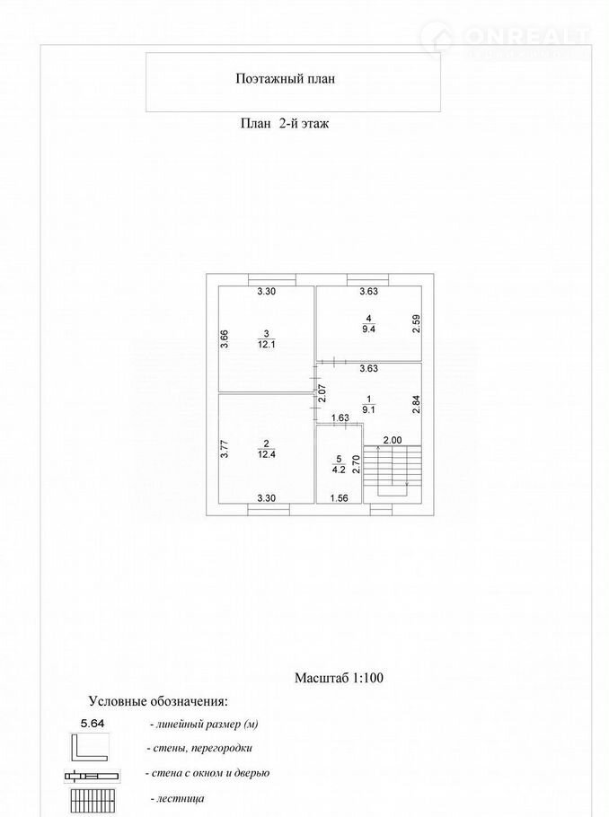 2 этаж - 3 спальни (12,4м+12,1м+9,4м), сан узел (4,2м), холл (9,1м).