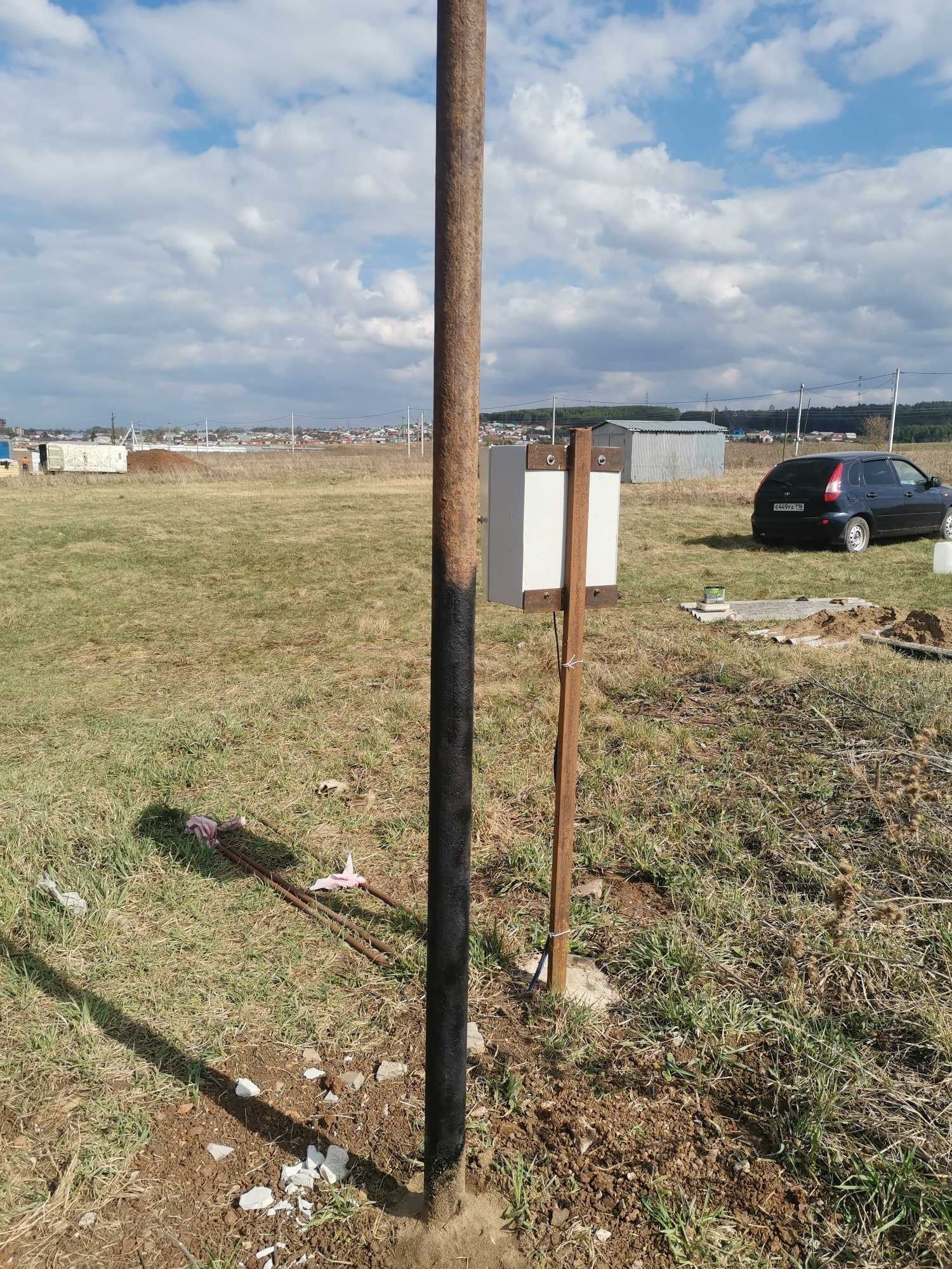 На участок подведено электричество, сделано межевание, ТУ и проект на центральное водоснабжение, ТУ на подключение газа! По периметру участка установлены металлические столбы для будущего забора.