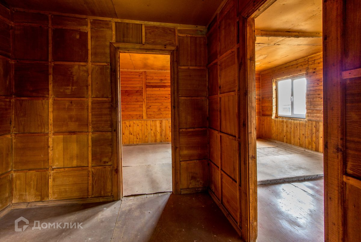 Дом 2х этажный из полубруса, крепкий, теплый. Фундамент ленточный. Крыша покрыта шифером, под ним рубероид. Внутри и снаружи обшит вагонкой. Пол - доска, уложена на черновой пол. Окна свежие стеклопакеты, установлены в 2021 году. Есть лаз в подпол высотой 1 м.