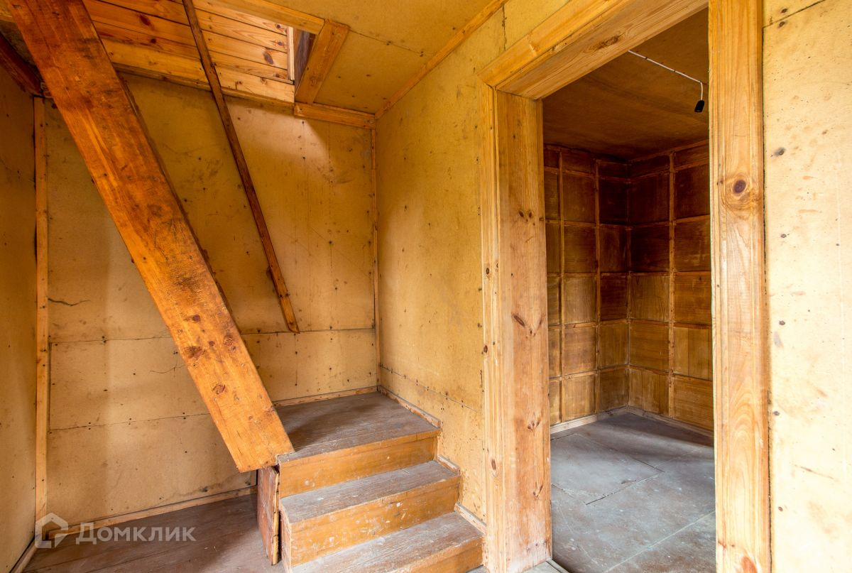 В доме прихожая 5,6 м2, веранда 6,3 м2, сан.узел 5,8 м2, кухня 6,9 м2, комната 18 м2. Высокие потолки для деревянного дома, 2,4 м. Лестница удобно расположена в прихожей.