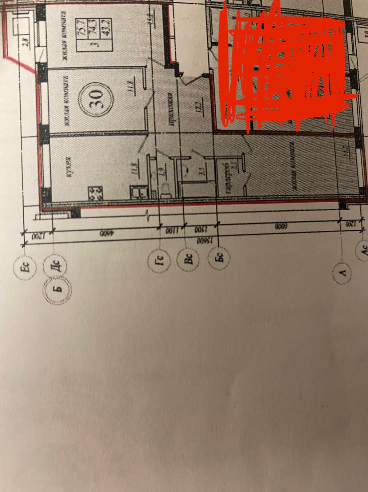 Жилая площадь 43.2 м2