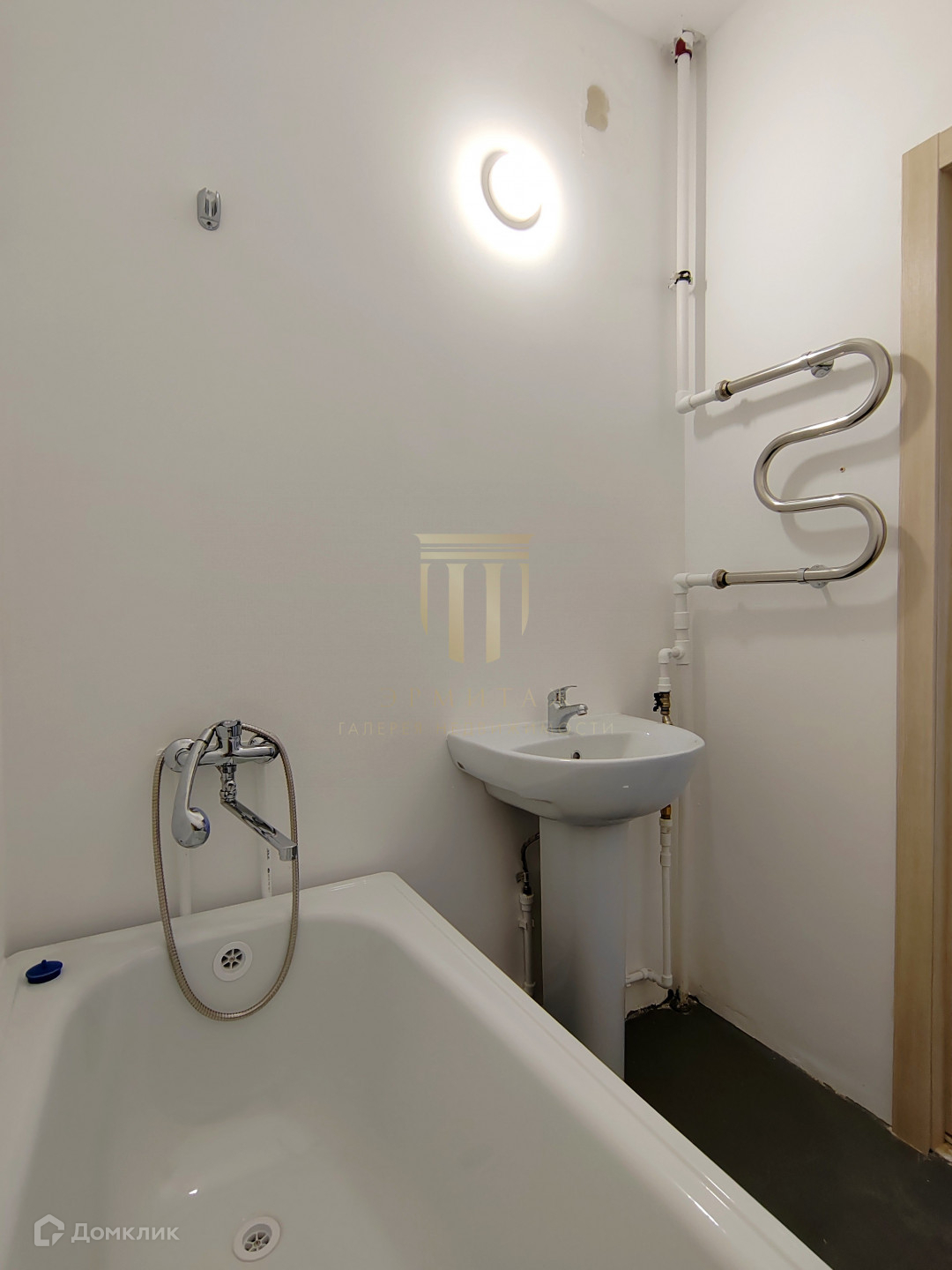 - Санузел раздельный. В ванной предусмотрено место под стиральную машинку (слева от входа), а в туалете установлена раковина для мытья рук и есть еще место для шкафа или пенала.