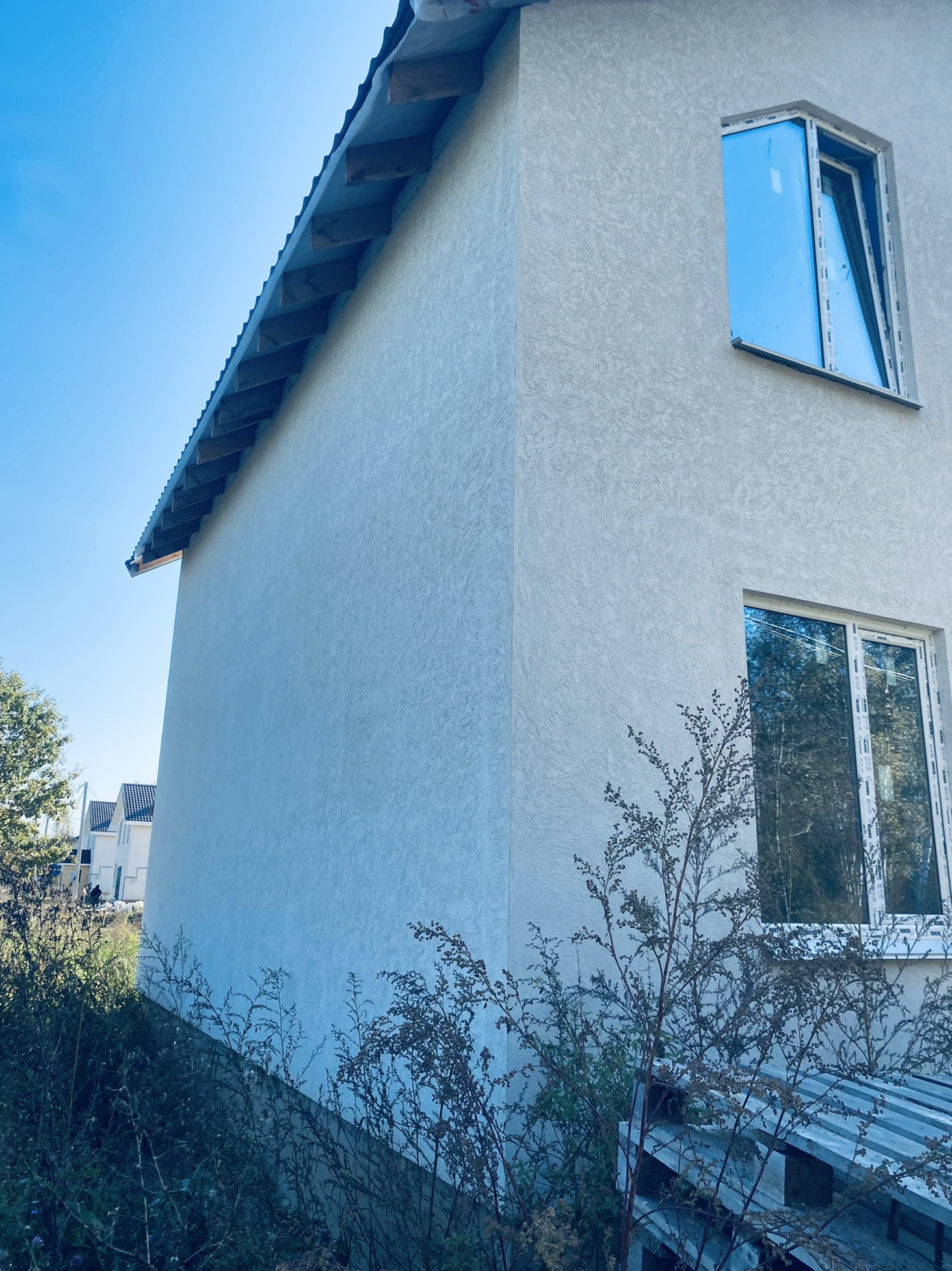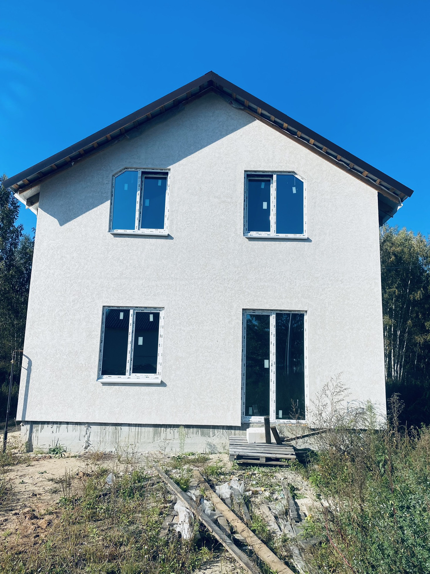Стены дома выполнены из керамзитобетонных блоков, облицовкой фасадов ( утеплитель, штукатурка , покраска ). Перекрытия - деревянные. Внутри дома будут сделаны все разводки инженерных коммуникаций : электропроводка, отопление (включая теплый пол на первом этаже), вода -скважина, канализация септик.