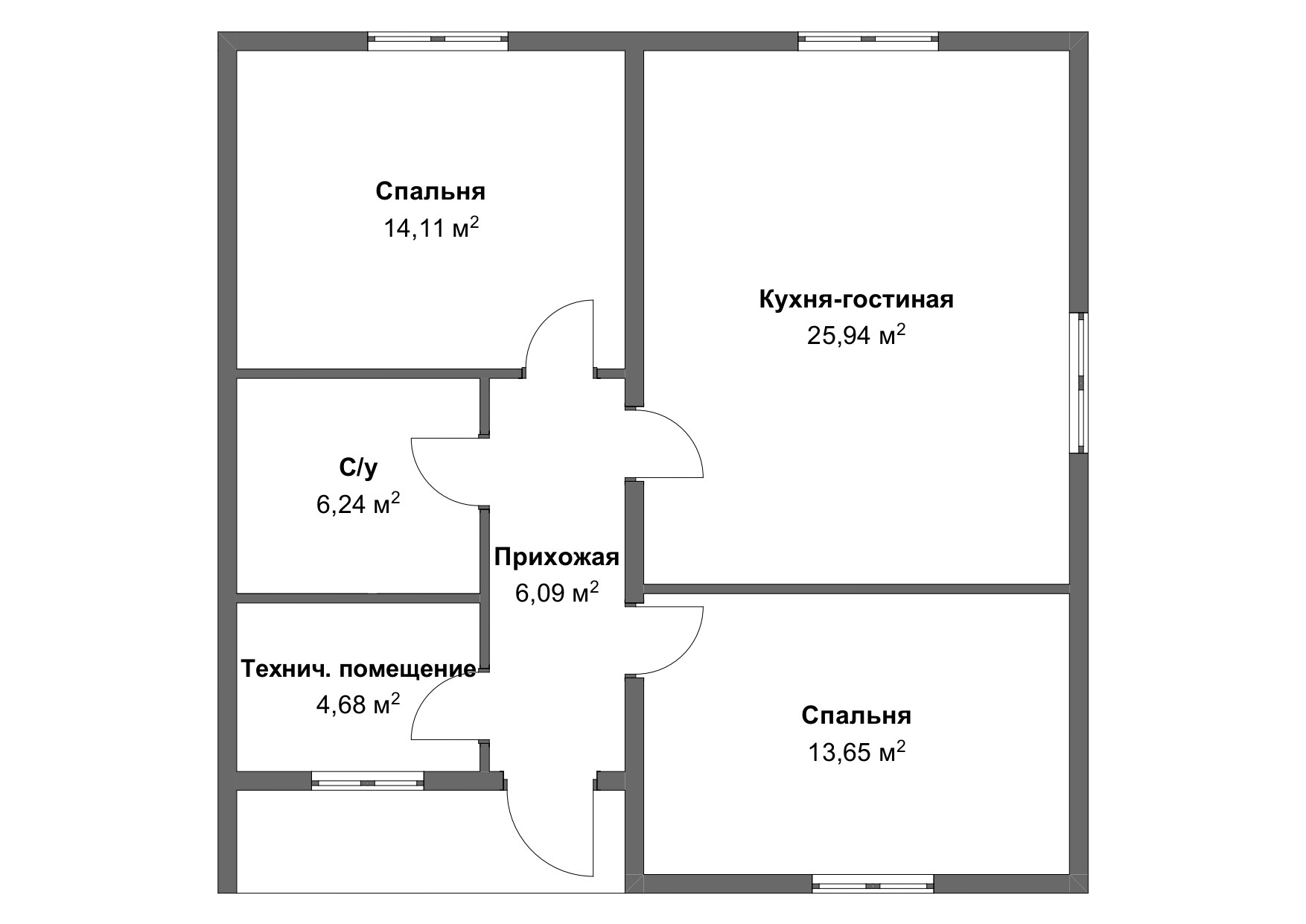 В доме есть 2 уютные спальни, просторная кухня-гостиная (с выходом во двор), санузел, техническое помещение, прихожая и крыльцо.