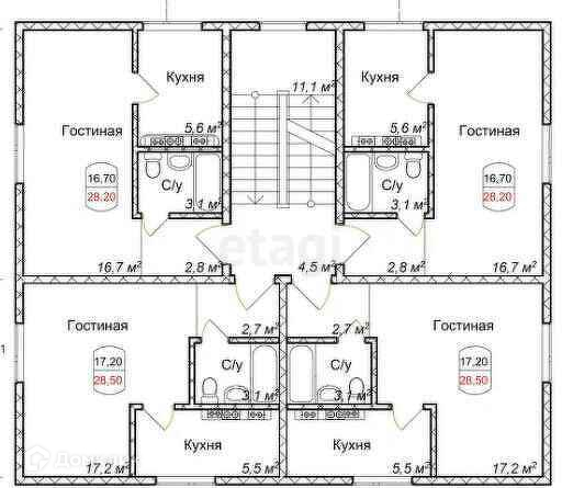 На втором этаже 4 спальни (40 кв. м., 15 кв. м., 16 кв. м., 7 кв. м.), гостиная с мини-кухней 18 кв. м., два просторных холла с системой хранения вещей, две ванных комнаты с санузлами и душевыми кабинами - 10 и 6 кв. м.