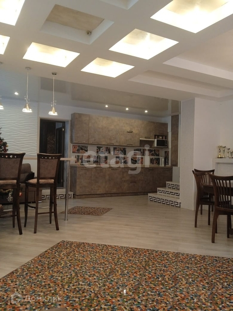 Газовое отопление, электричество по счетчику, своя скважина. В дом встроен тёплый гараж для автомобиля с автоматическими воротами с пульта, под гаражом погреб 10 кв. м. На первом этаже дома кухня-столовая площадью 64 кв. м., холл с двумя шкафами 11 кв. м., санузел 10 кв. м. (с 3 встроенными шкафами), сауна (работает от электричества, можно установить нужную температуру), котельная-санузел 6 кв. м., душевая кабина в отдельном помещении , отдельно комната отдыха с джакузи, диваном, мини-кухней - 17 кв. м