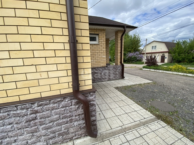 Дом выполнен в монолитной технологии с несъёмной опалубкой и облицован кирпичом.