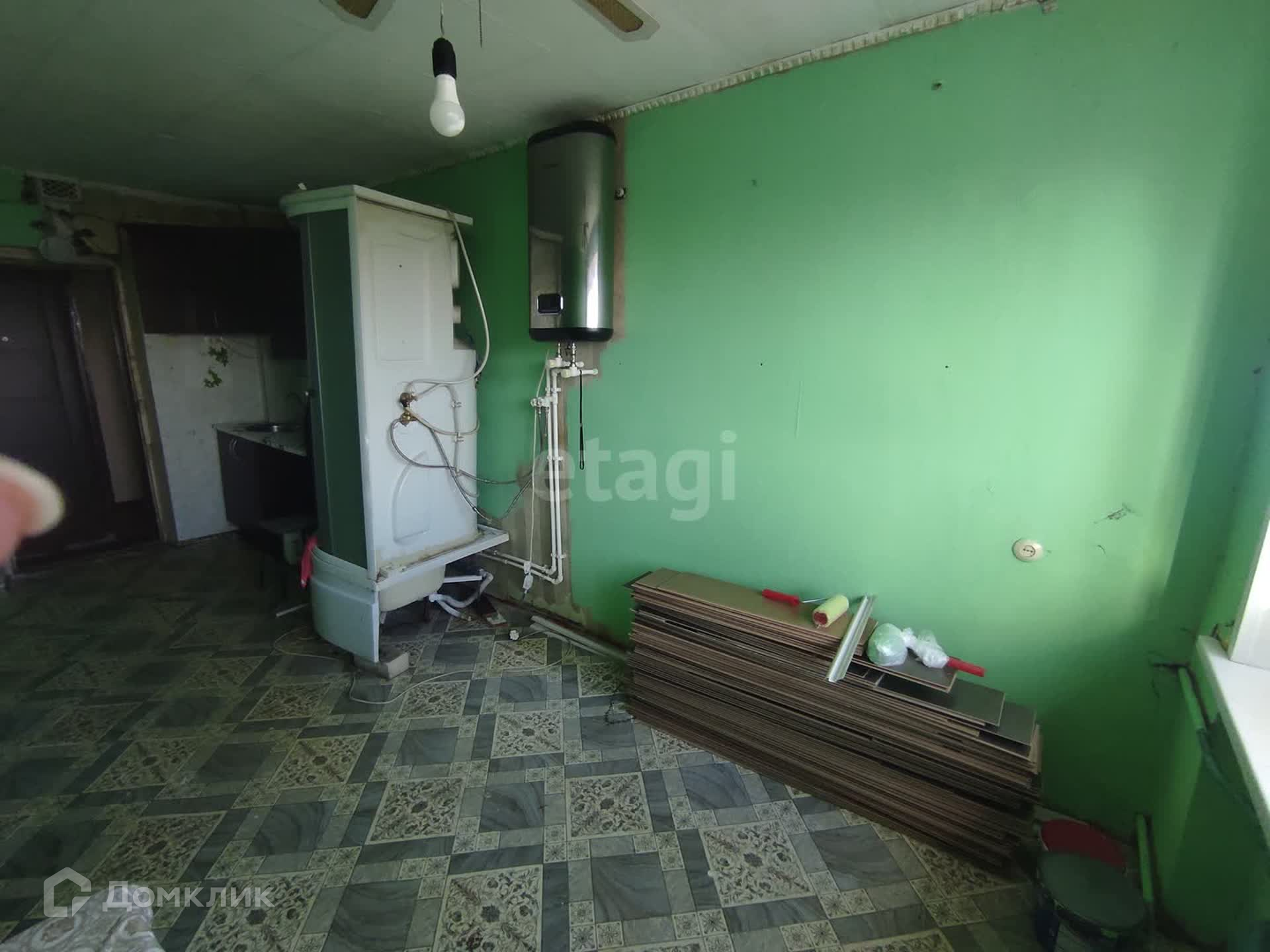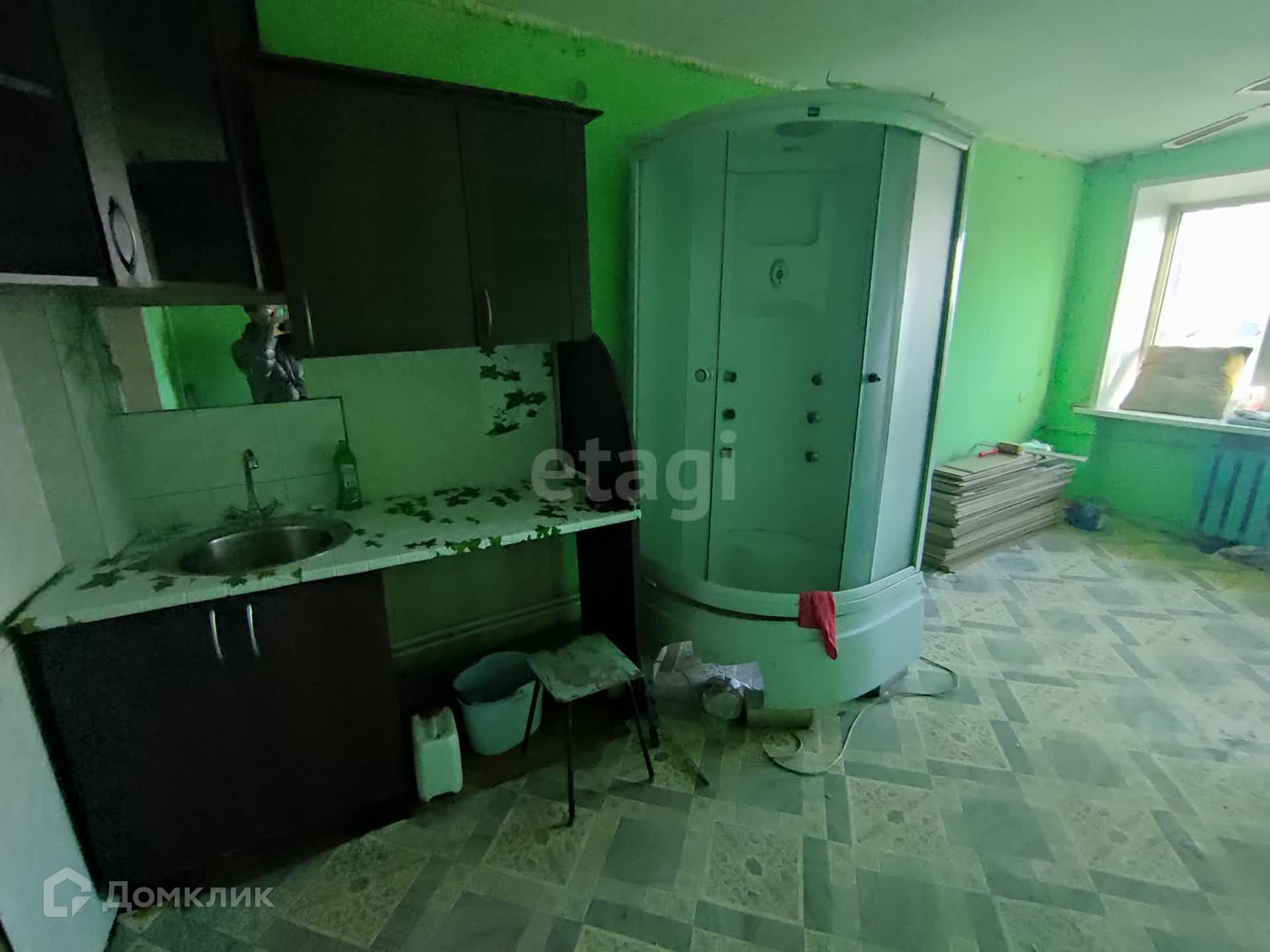 ***В комнате установлено пластиковое окно, установлен водонагреватель, душевая кабина, и кухонный гарнитур. Есть вывод под стиральную машину.