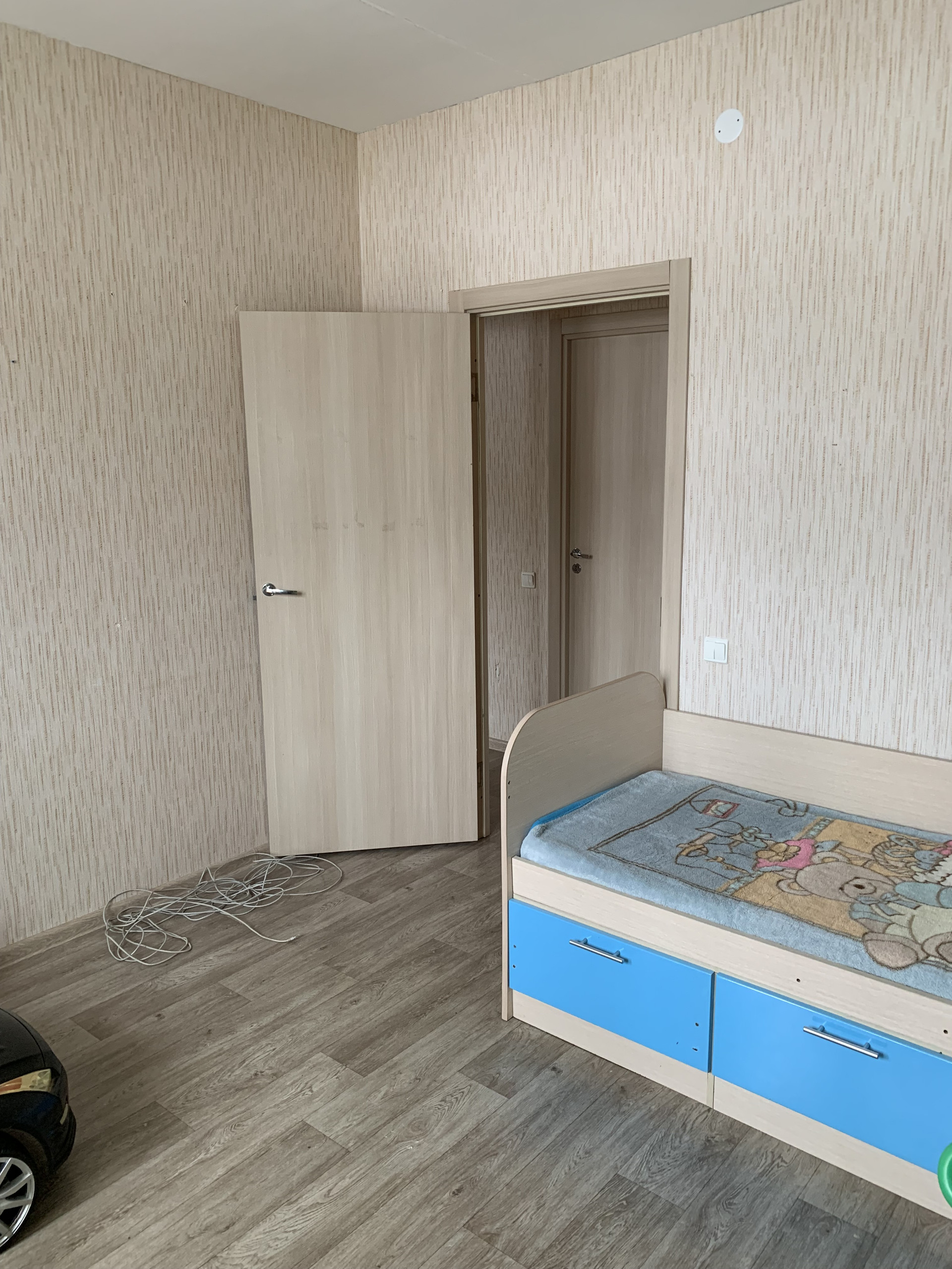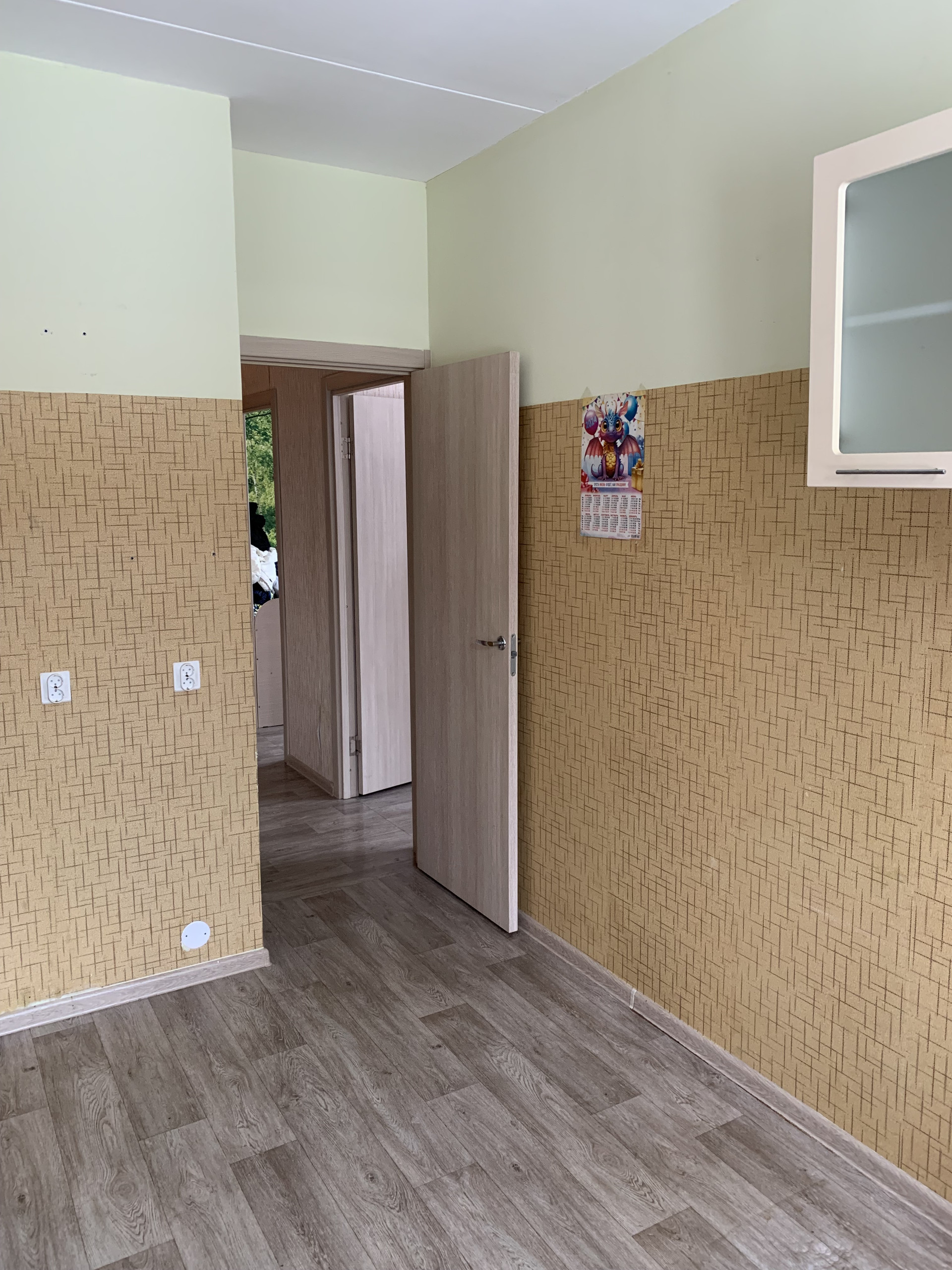 Площадь:  46,7/16 + 10,3/8,7 кв.м.   Все раздельно. Ванна – стеновые панели. Выполнена бюджетная отделка.   Балкон  из маленькой комнаты - остекление слайдорс, утеплен, отделан евровагонкой.  Кухонный гарнитур оставим в подарок.