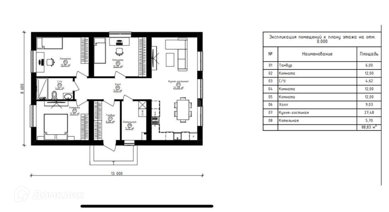 Общая площадь 89 м2