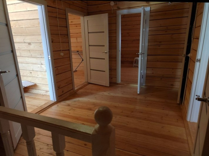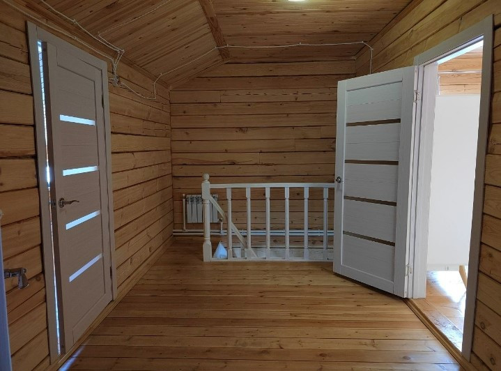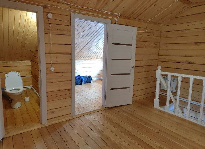 ---На втором этаже 3 спальни, одна с балконом, имеется небольшое помещение под гардеробную, санузел. Весь второй этаж исключительно дерево, запах потрясающий!