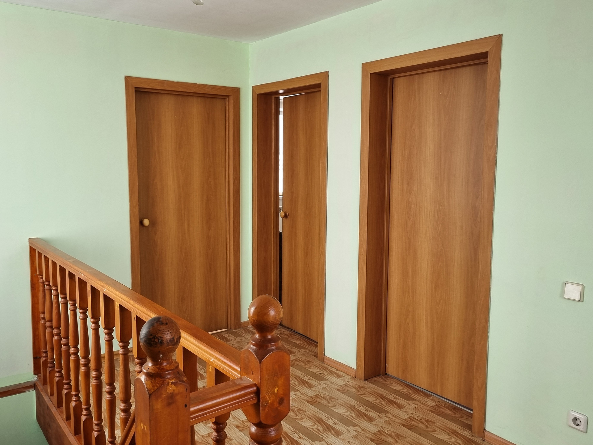 Отделка чистовая стены выровнены и окрашены.