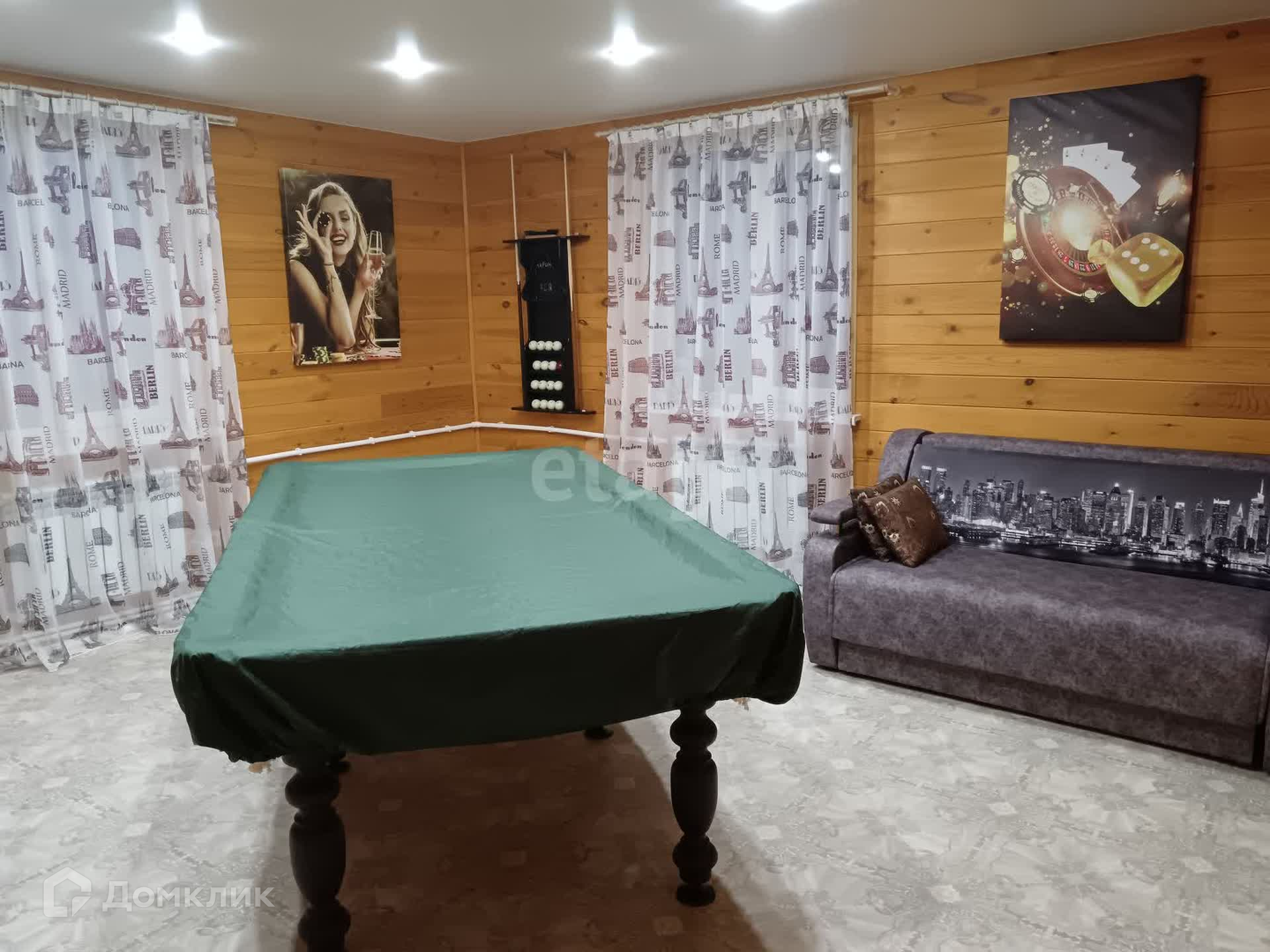 Дом, общей площадью 150 кв.м, включает в себя 5 спален. 1-ый этаж длинный коридор, кухня-гостиная с большим действующим красивым камином, сан узел с душевой, бильярдная, выход с кухни на крытую уличную веранду – 4 м. 2-ой этаж большой длинный хол с большим панорамным окном и прекрасным видом на лес и горы, на черную сопку. Сан узел, 2 спальни. Внутренняя отделка дома имитация бруса, в светлых и приятных тонах. Оба сан узла требуют косметического ремонта, не доделано. При продаже остается кухонный гарнитур, барная стойка, барные стулья, бильярд со всеми аксессуарами.