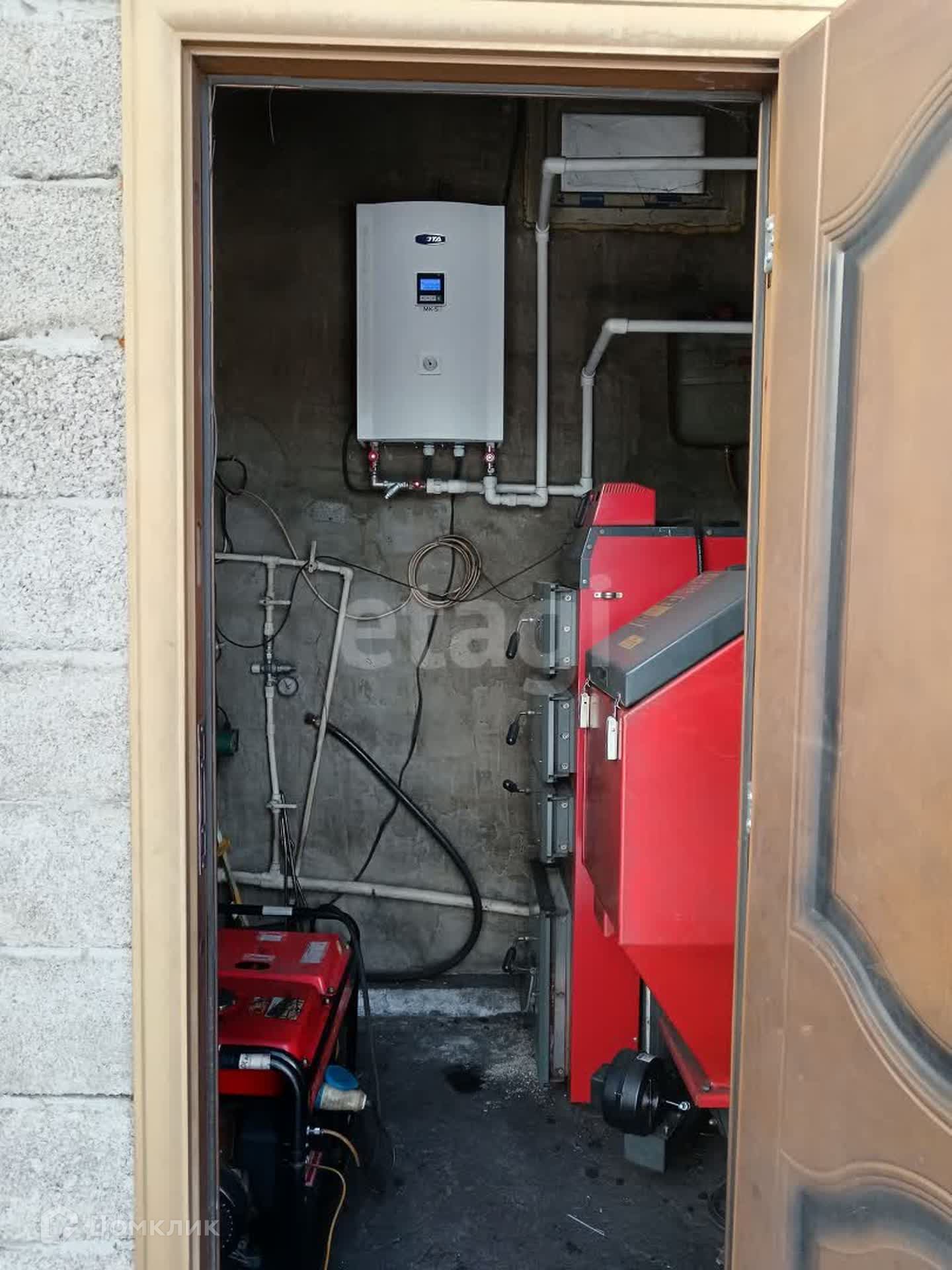 Фундамент дома: ленточный. Стены 1-ый этаж брус 18, 2-ой этаж каркасник. Отопление: автоматический твердотопливный котёл Defro угольный (семечка) 25 квт + электрическая мини-котельная Zota 12 кв, работают автономно. На случай отключения света установлен дизельный генератор Fubag DS5500 - 5 квт, с автоматическим запуском. Вода – скважина, свет 15 Квт. Водоотведение – индивидуальный септик.
