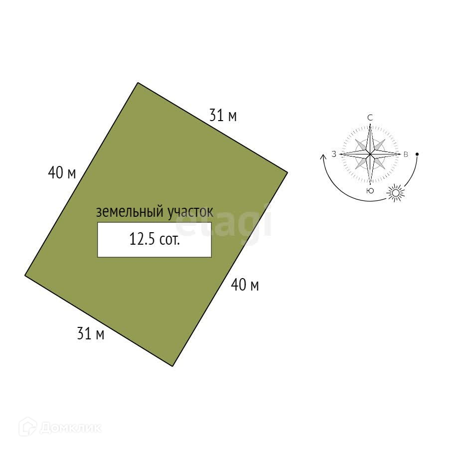 Площадь участка 12.5 сот.