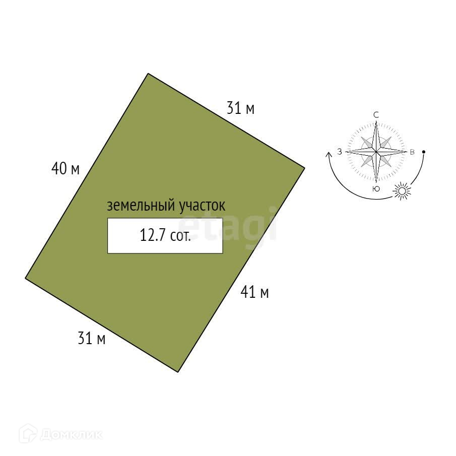 Площадь участка 12.7 сот.