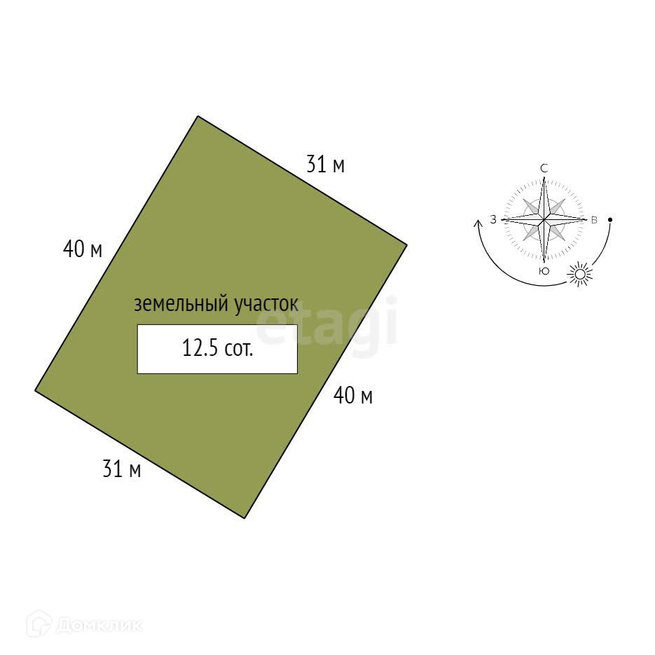 Площадь участка 12.5 сот.