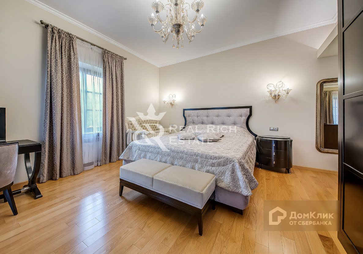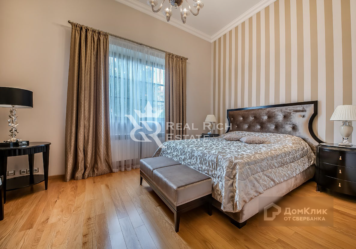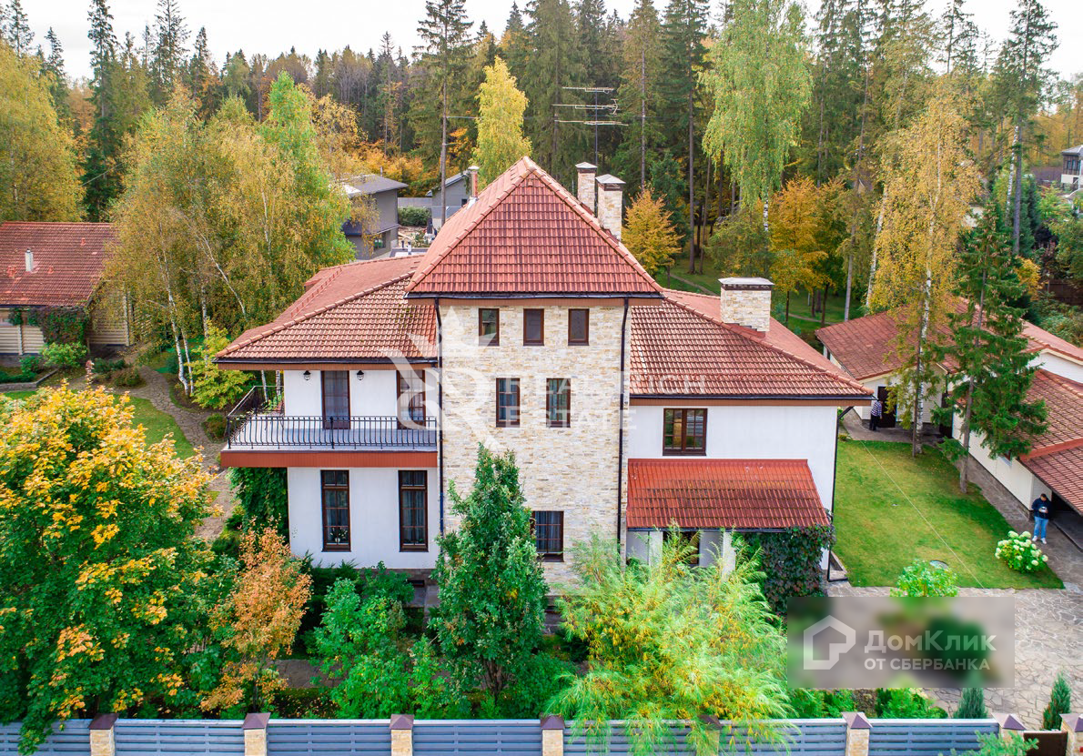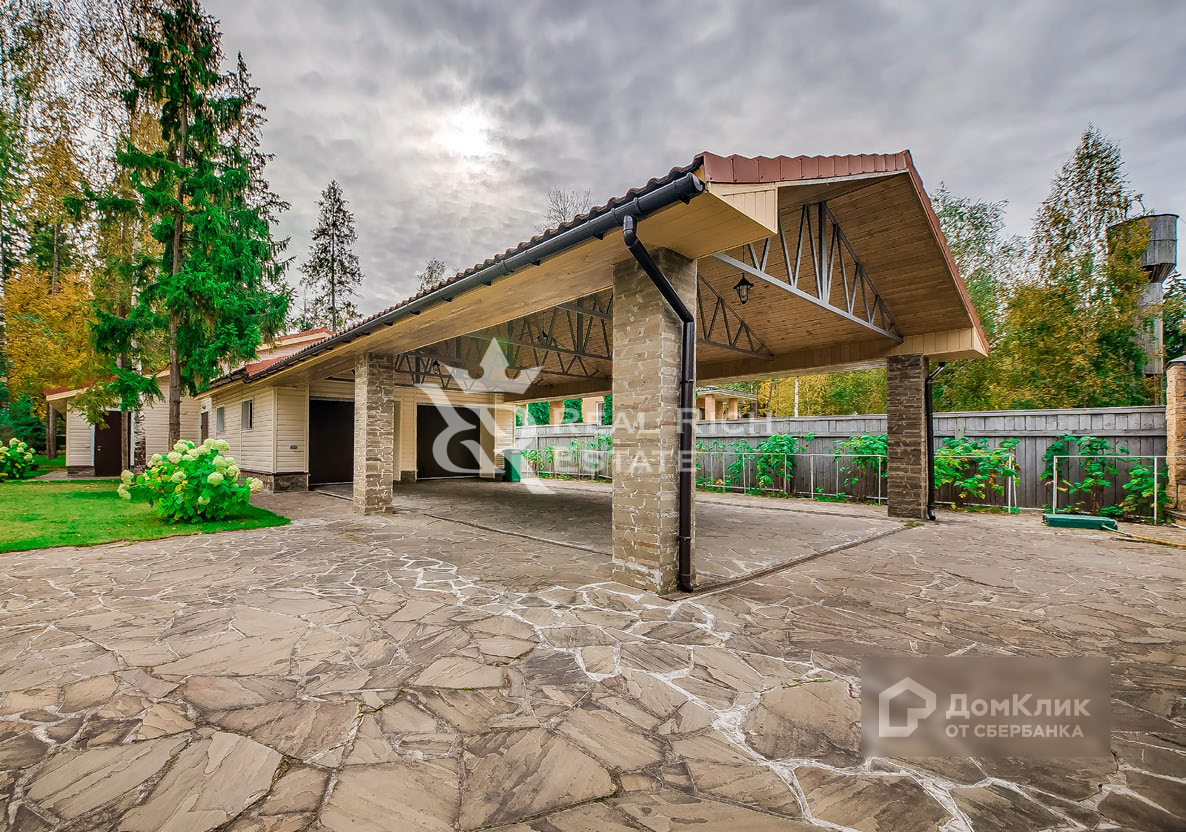 Крытая парковка на четыре машины. Беседка. Детская площадка.  Четырехэтажный особняк общей площадью 555 кв. м. Выполнена качественная дизайнерская отделка в классическом стиле. Особняк полностью меблирован и оборудован всей необходимой бытовой техникой. + Баня бревенчатая на дровах 136 кв. м. + Игровая (с бассейном) 80 кв. м. + Гараж с навесом 121 кв. м.