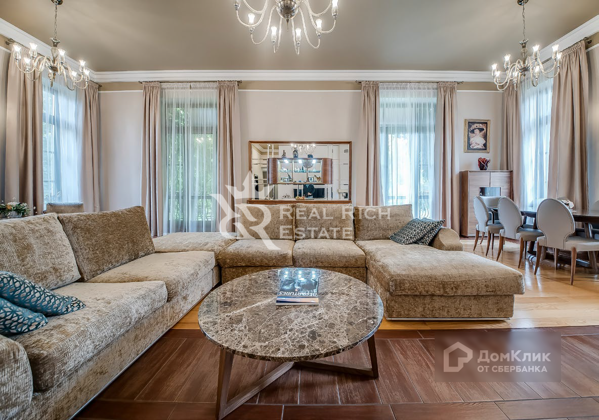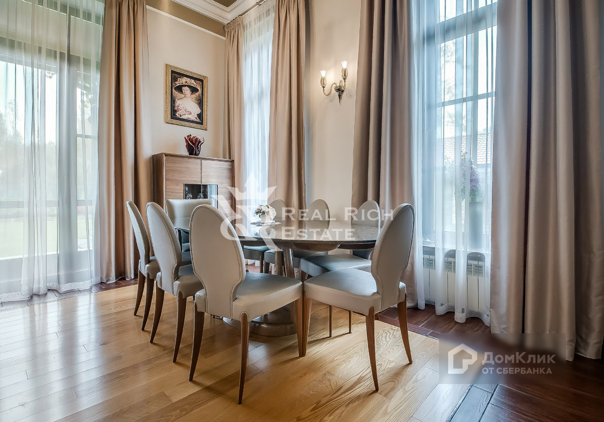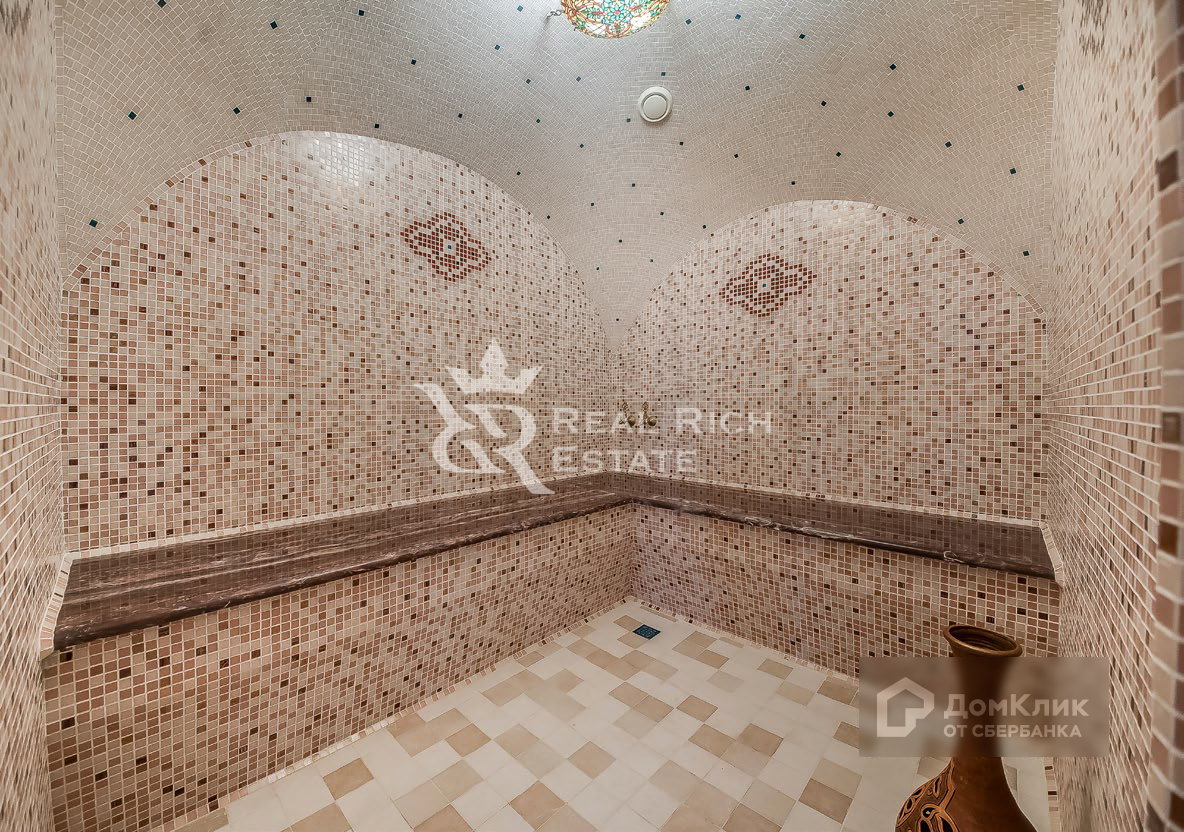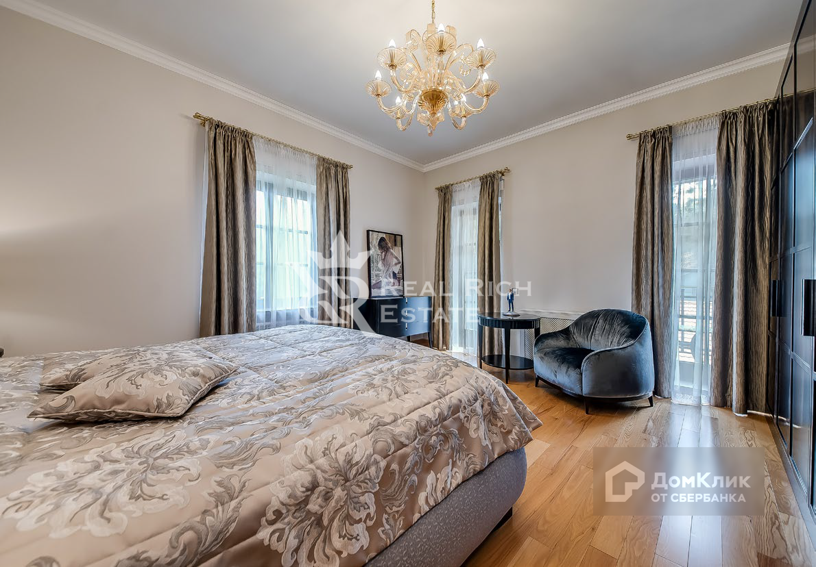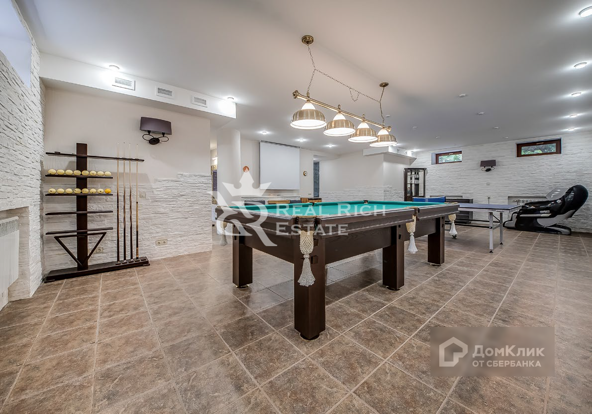 Крытая парковка на четыре машины. Беседка. Детская площадка.  Четырехэтажный особняк общей площадью 555 кв. м. Выполнена качественная дизайнерская отделка в классическом стиле. Особняк полностью меблирован и оборудован всей необходимой бытовой техникой. + Баня бревенчатая на дровах 136 кв. м. + Игровая (с бассейном) 80 кв. м. + Гараж с навесом 121 кв. м.