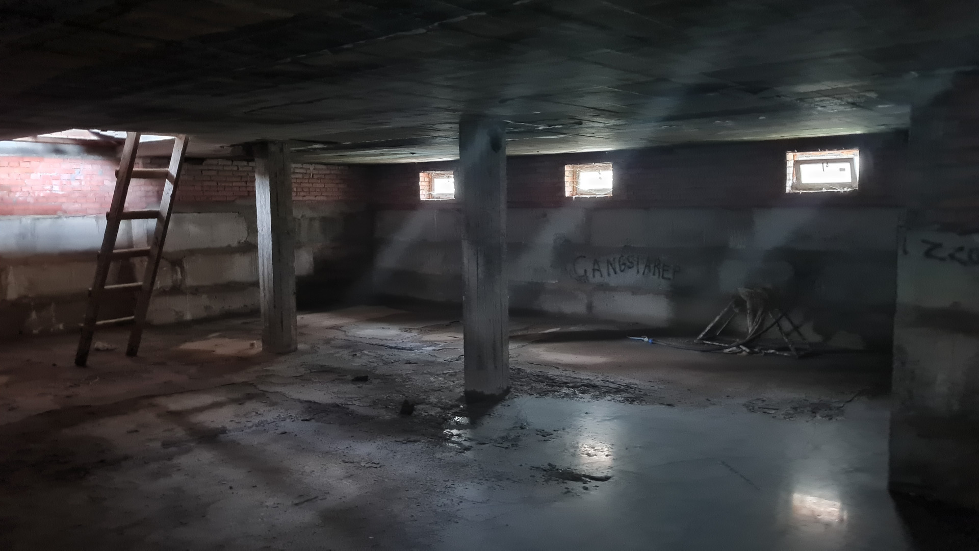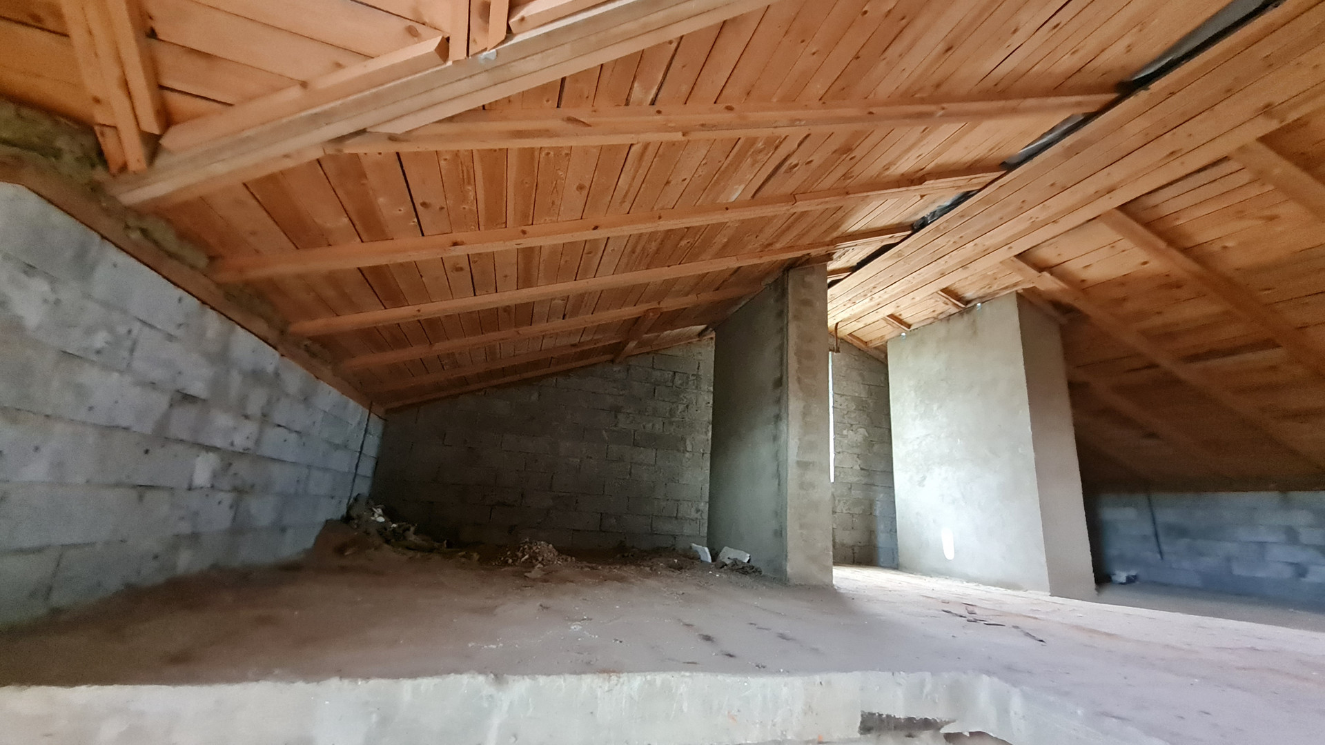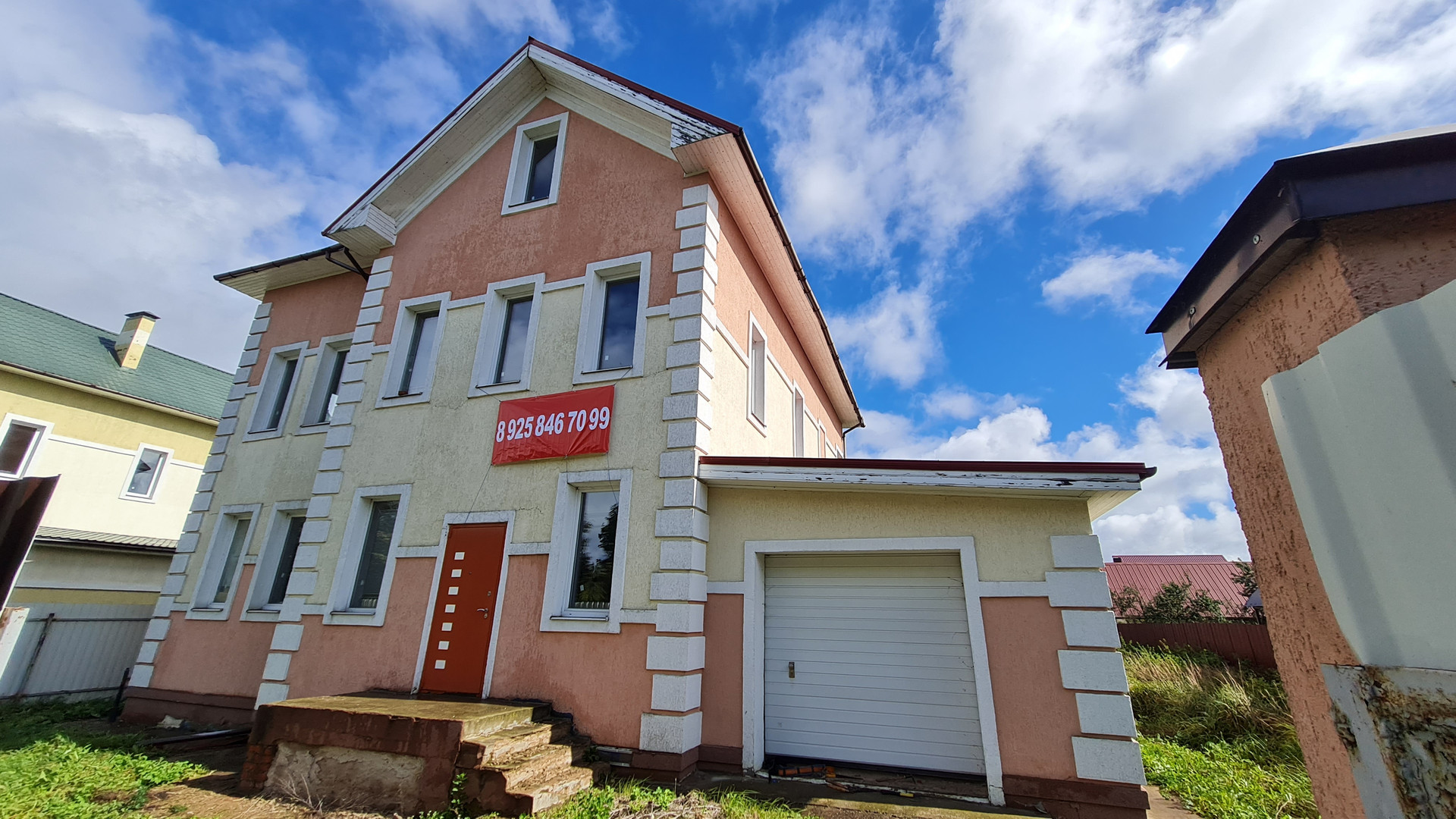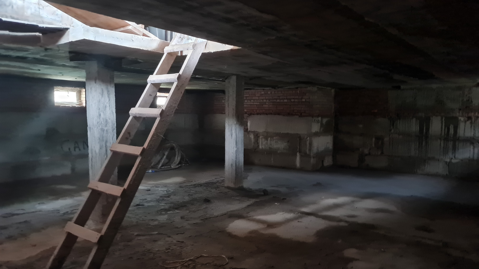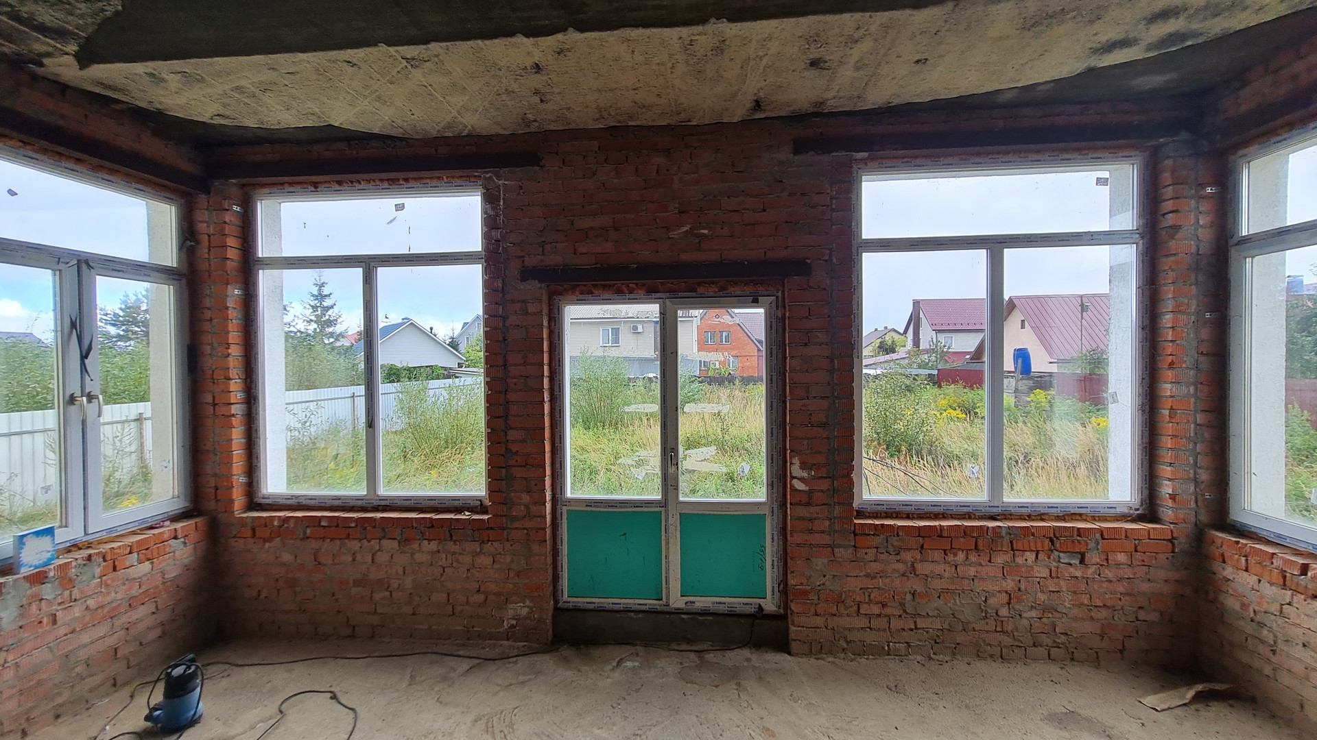 Два жилых этажа 240 кв.м. + 1 мансардный + 1 цокольный (с окнами). Каждый этаж около 110 кв.м. Всего 400 кв.м. + закрытый теплый паркинг пристроен к дому. Материал стен кирпич, железобетонный каркас, монолитные перекрытия, сплошной монолитный фундамент, внутренние стены кирпич, газобетон. Свободная планировка, без отделки.