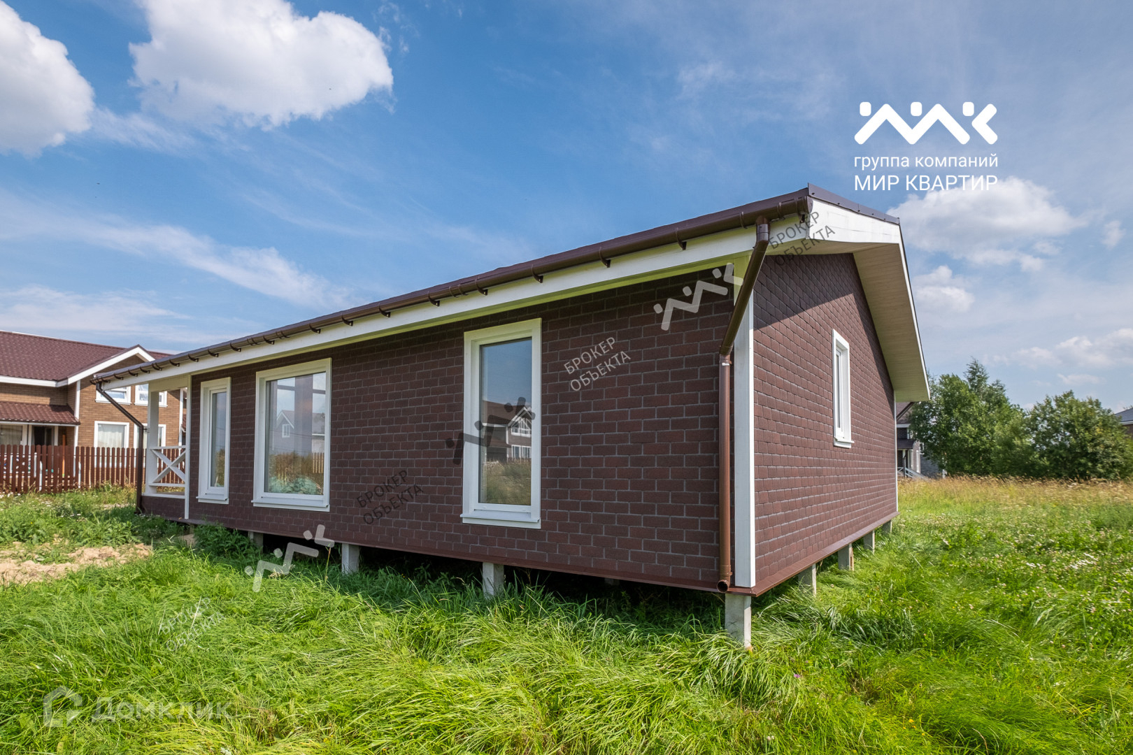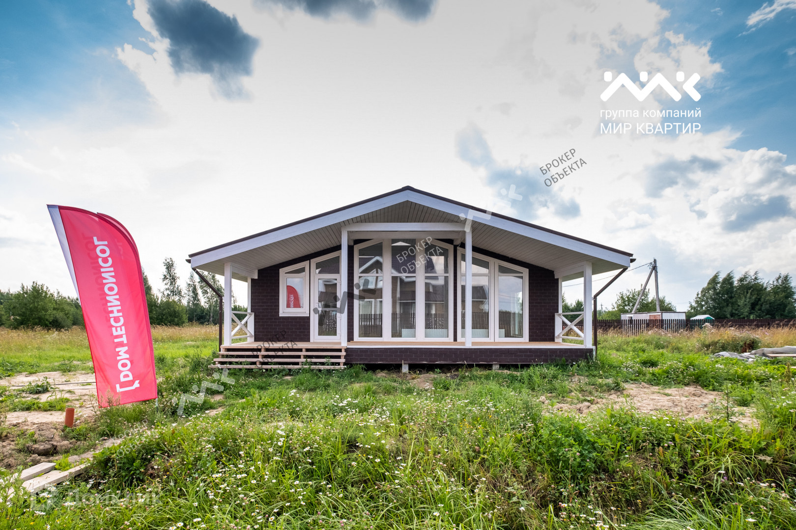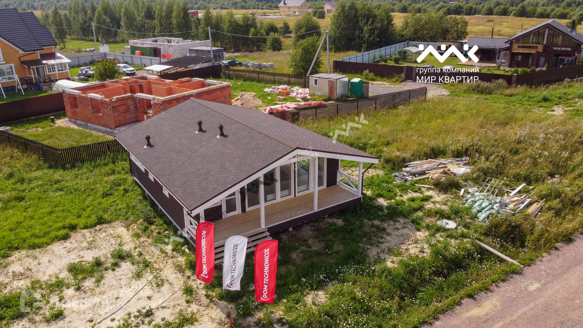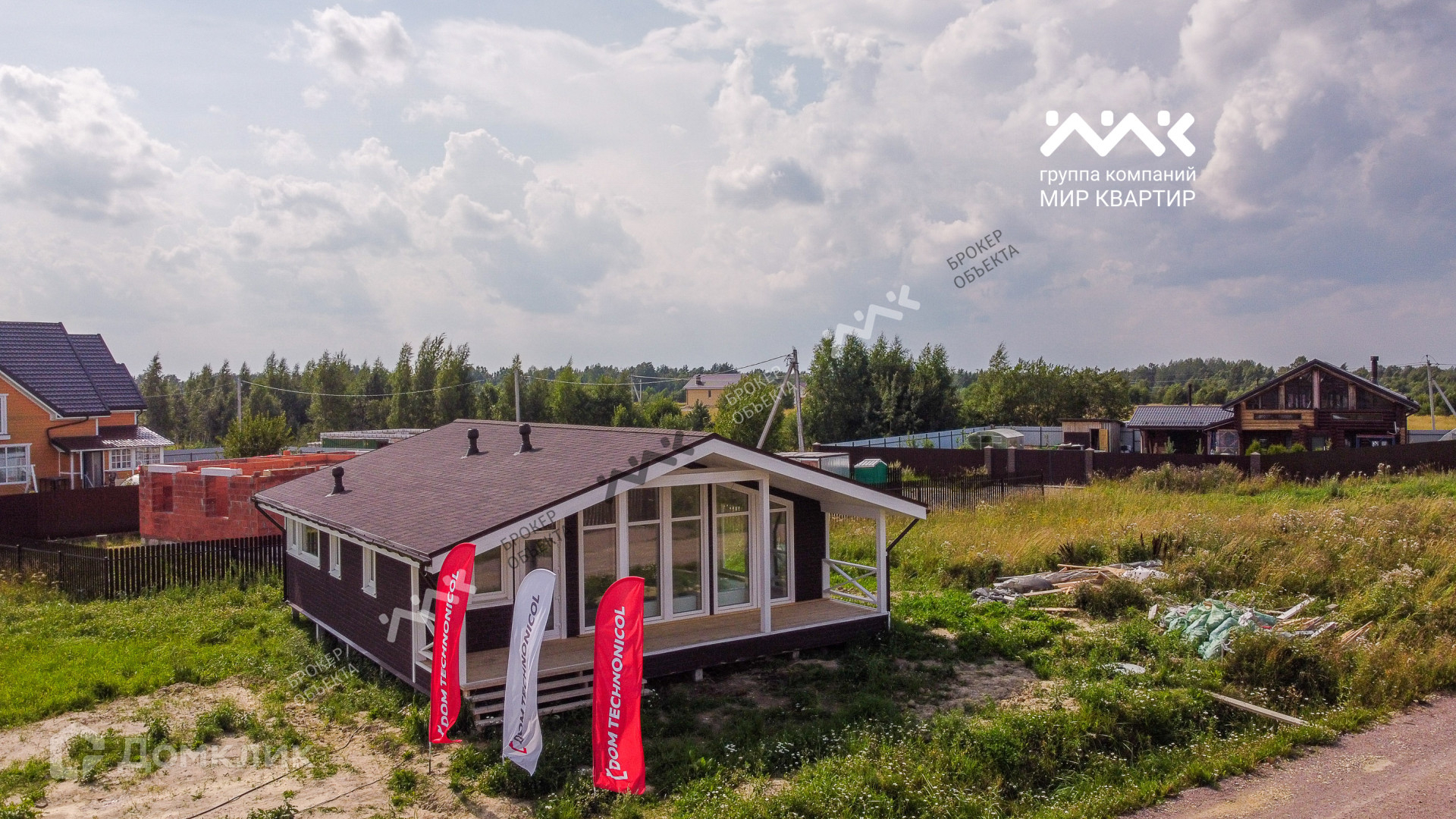 - готовый «под ключ»  в доме расположены две жилые комнаты по 12,4 кв.м., большая кухня - гостиная 33 кв.м. санузел, котельная. Крыша уложена мягкой черепицей,  в доме выполнена система вентиляции. Внутри дома стены отделаны крашенной сухой доской, в комнатах уложен ламинат, в санузлах — плитка и установлена мебель и сантехника. В дом заведена вода (скважина) и электричество 15 кВт. Во дворе сделан заезд на участок, возведен фасадный забор 15 метров, установлена станция биологической очистки;