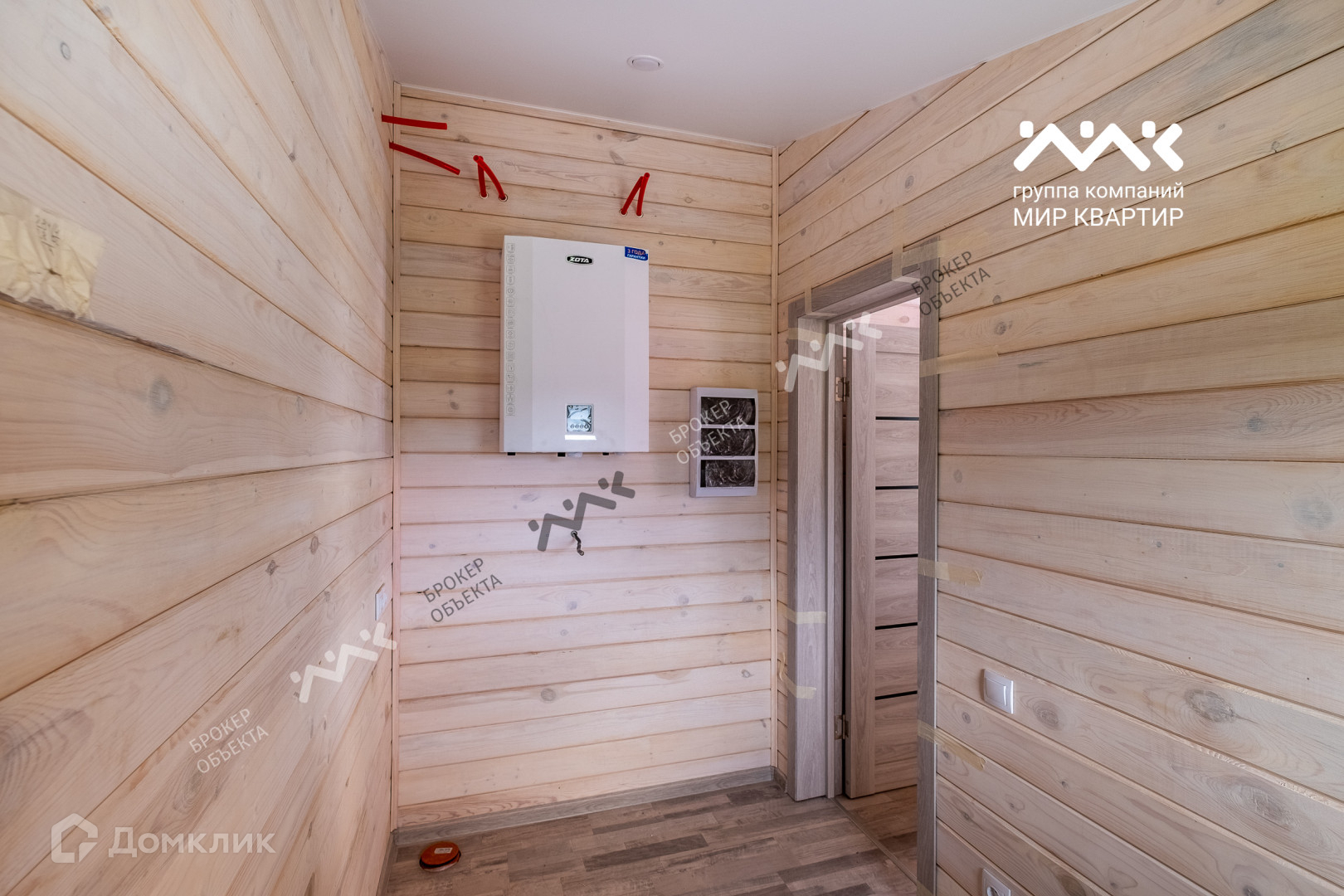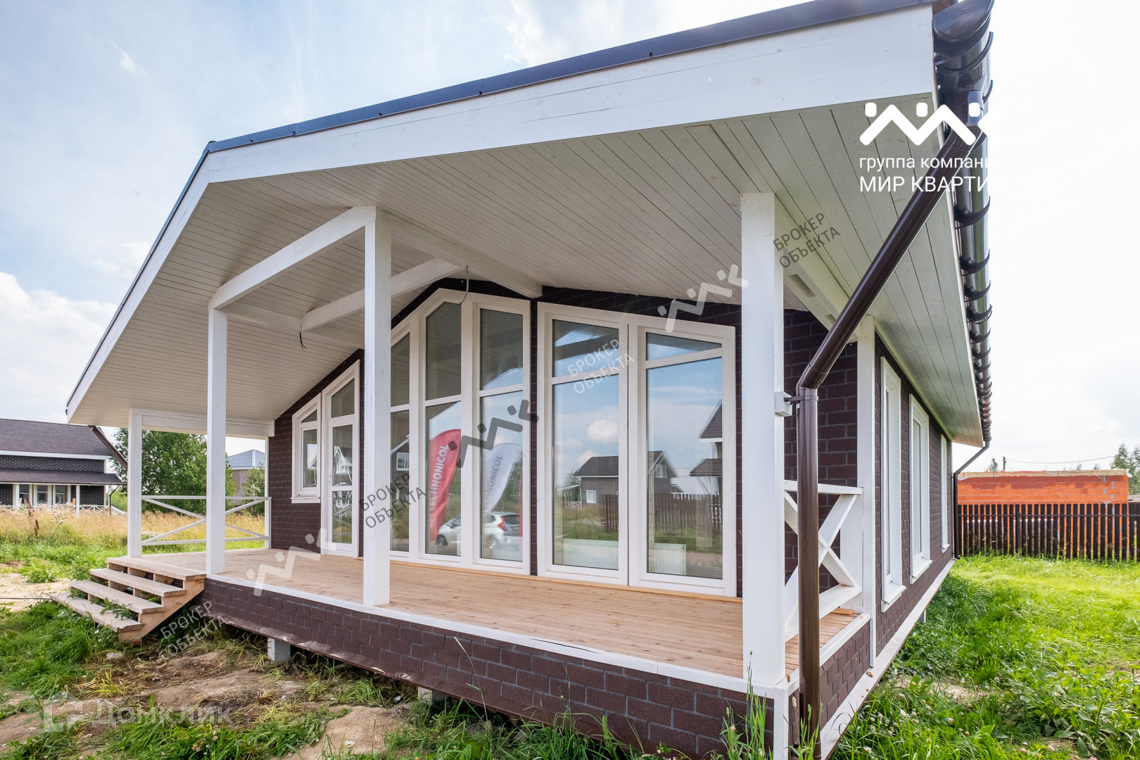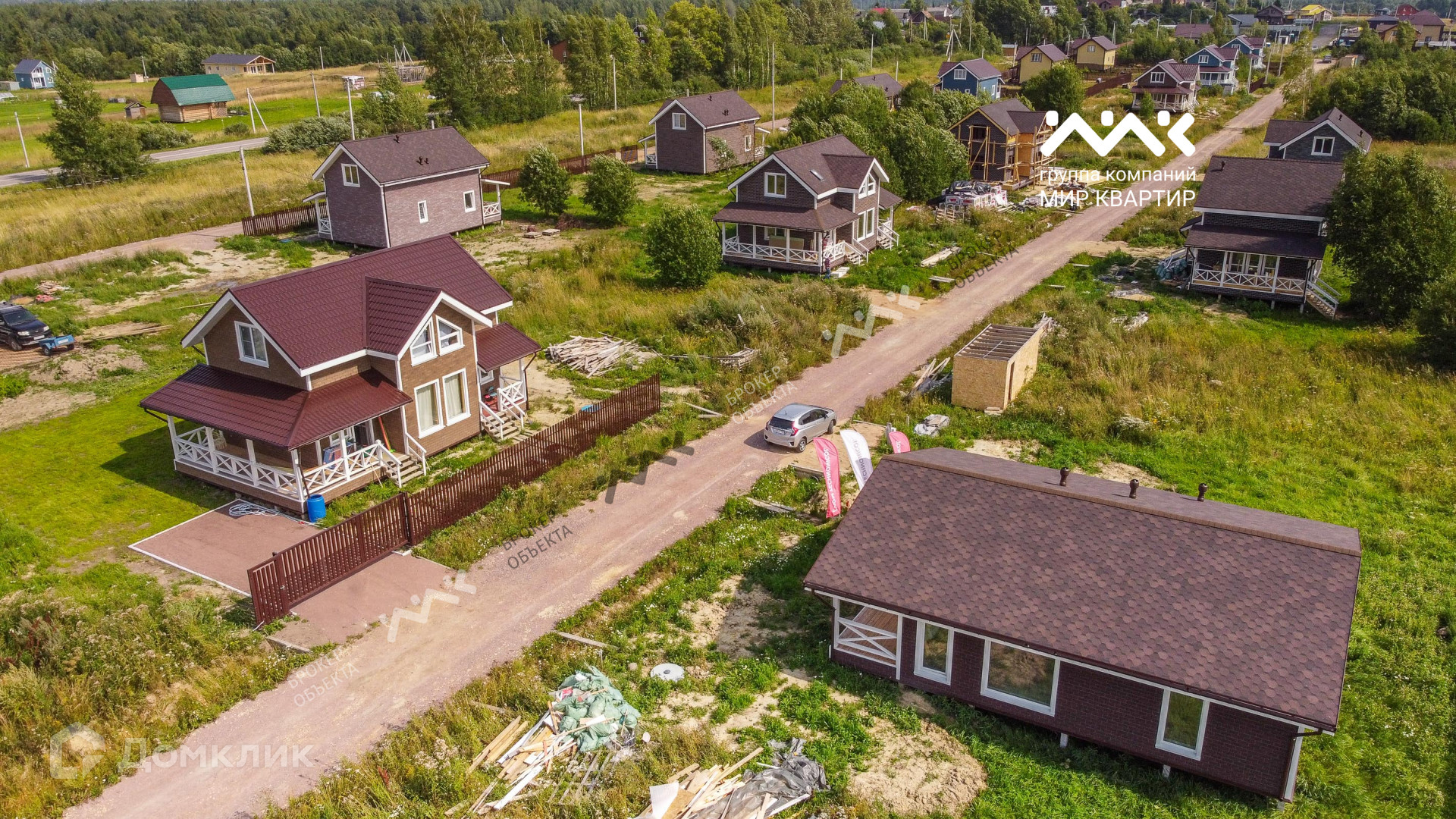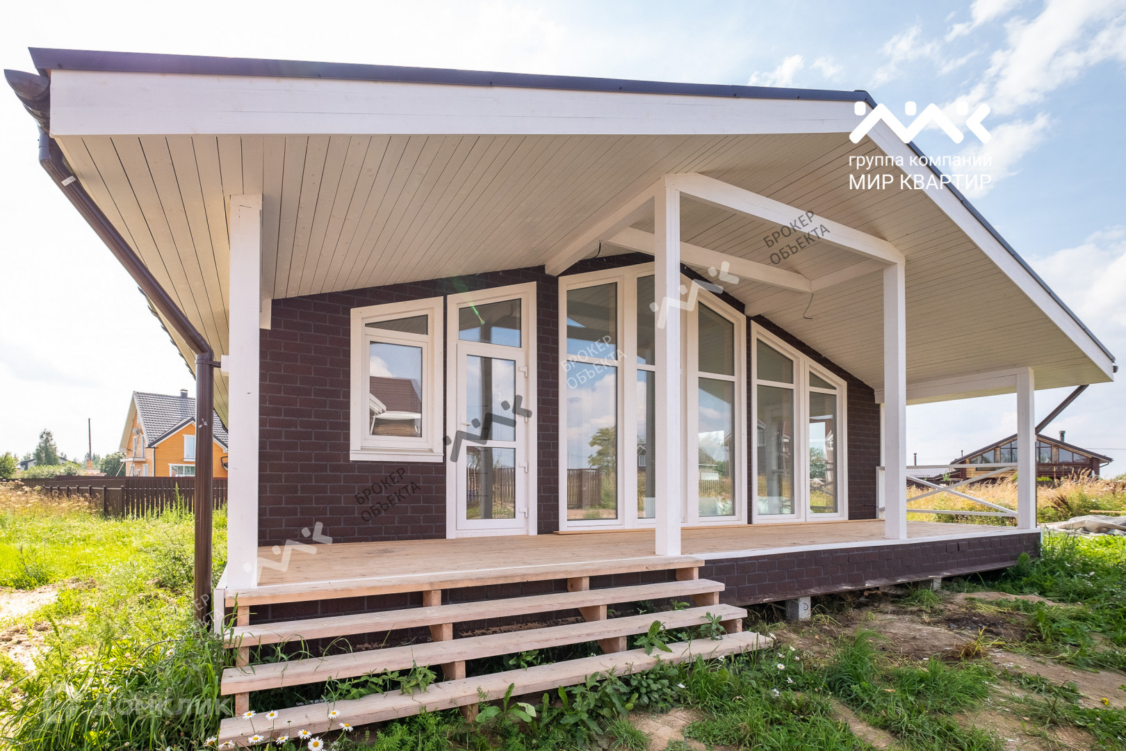 - готовый «под ключ»  в доме расположены две жилые комнаты по 12,4 кв.м., большая кухня - гостиная 33 кв.м. санузел, котельная. Крыша уложена мягкой черепицей,  в доме выполнена система вентиляции. Внутри дома стены отделаны крашенной сухой доской, в комнатах уложен ламинат, в санузлах — плитка и установлена мебель и сантехника. В дом заведена вода (скважина) и электричество 15 кВт. Во дворе сделан заезд на участок, возведен фасадный забор 15 метров, установлена станция биологической очистки;