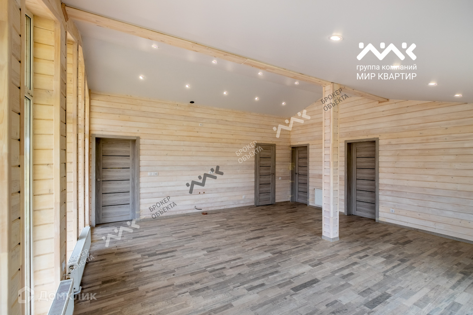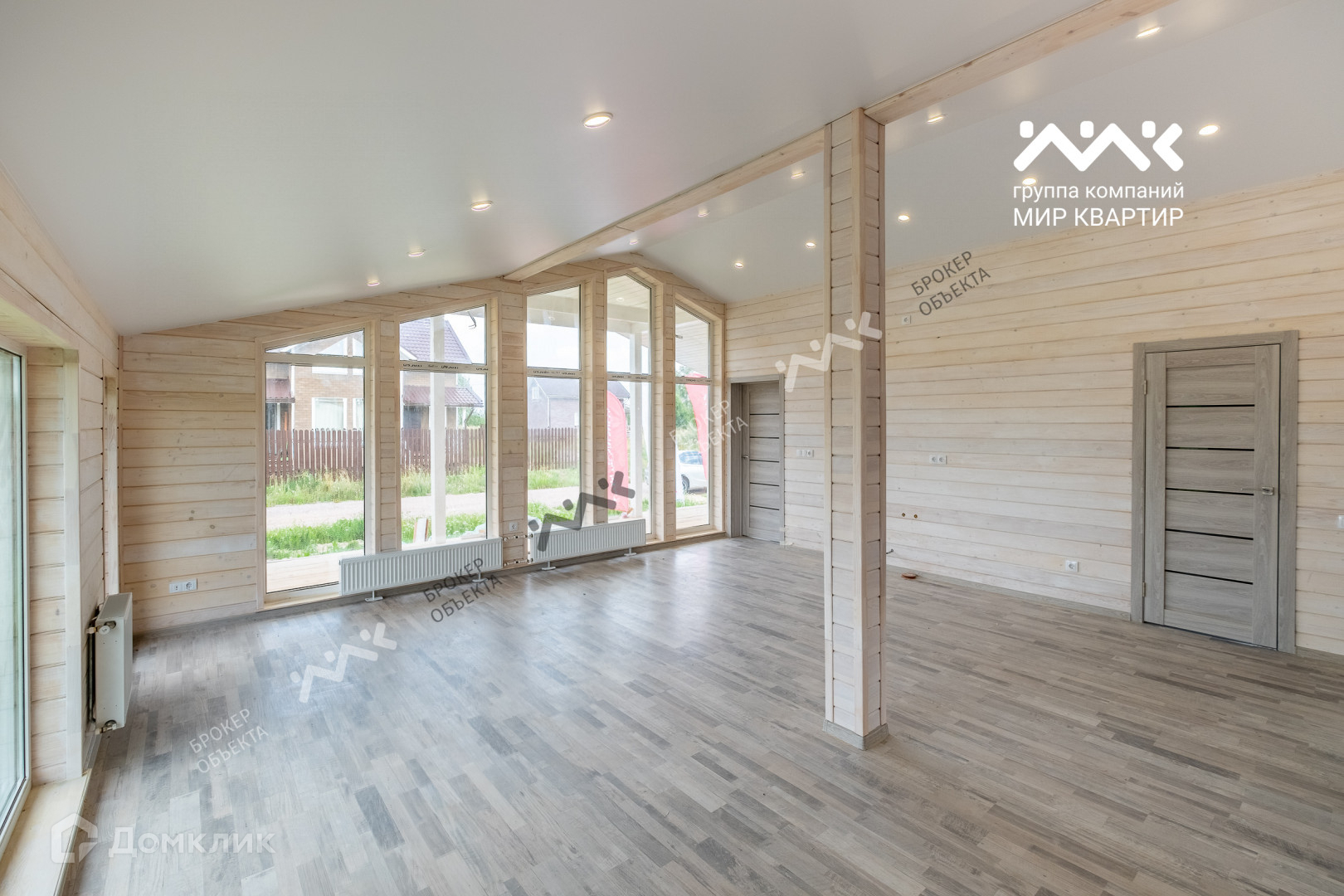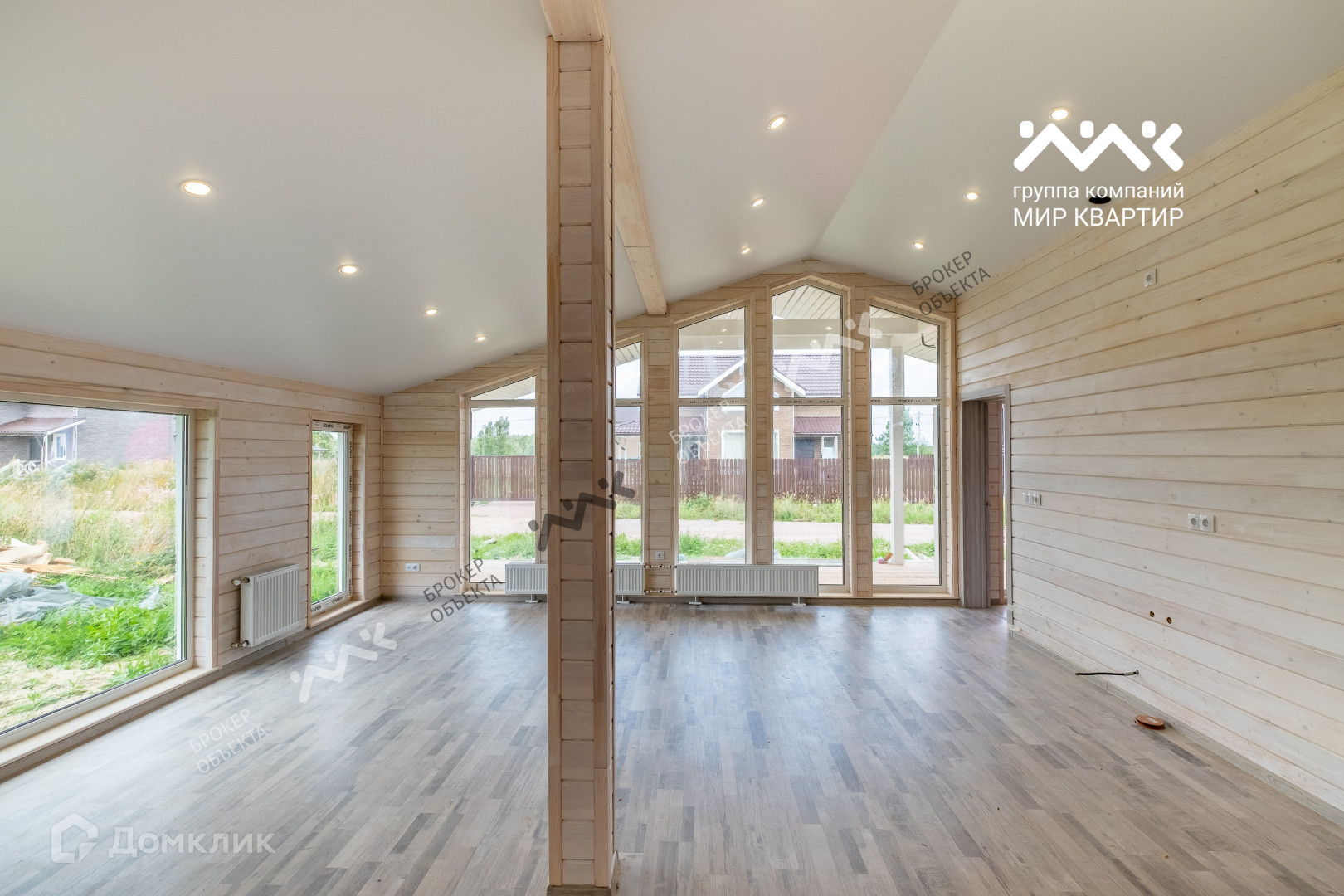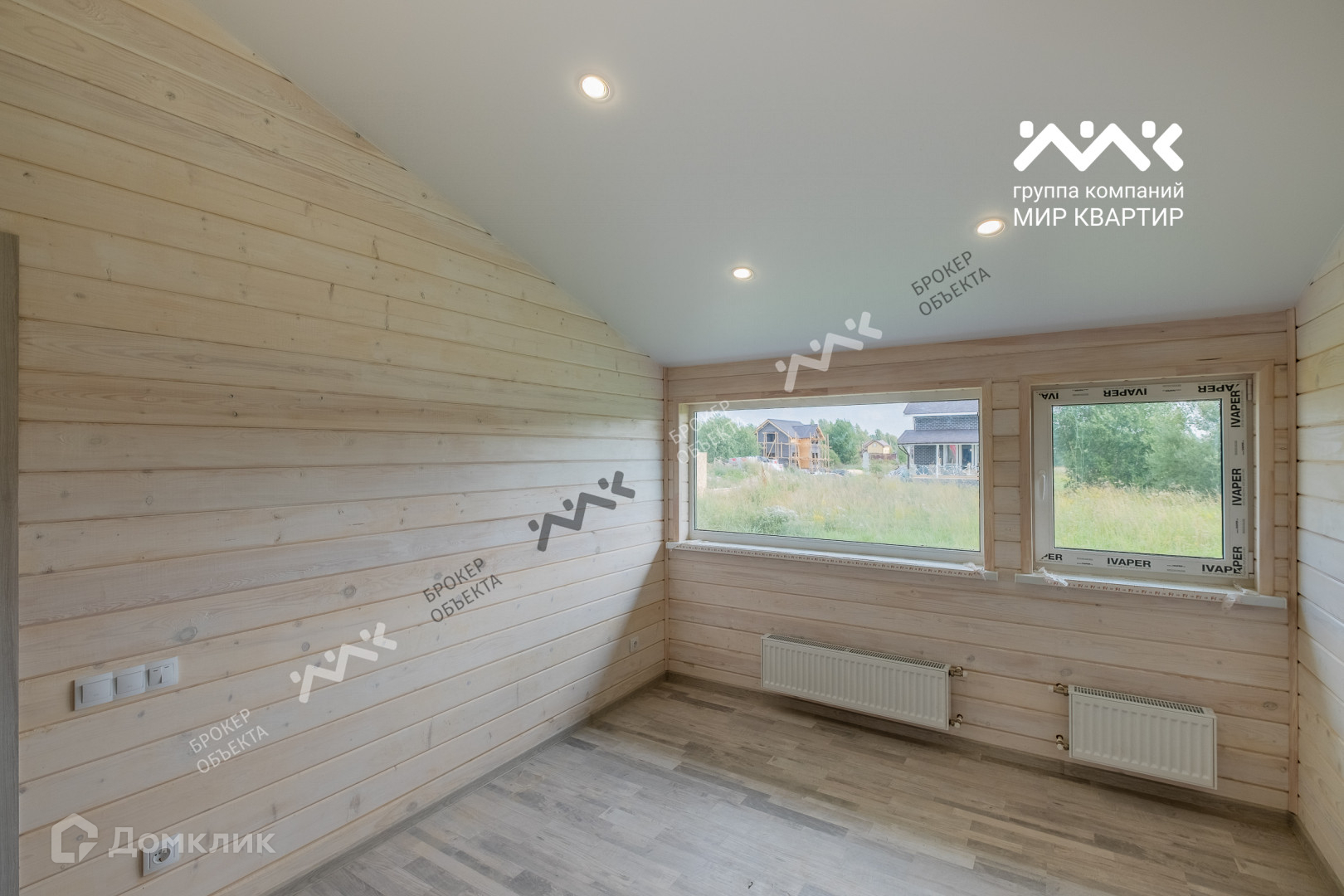 - готовый «под ключ»  в доме расположены две жилые комнаты по 12,4 кв.м., большая кухня - гостиная 33 кв.м. санузел, котельная. Крыша уложена мягкой черепицей,  в доме выполнена система вентиляции. Внутри дома стены отделаны крашенной сухой доской, в комнатах уложен ламинат, в санузлах — плитка и установлена мебель и сантехника. В дом заведена вода (скважина) и электричество 15 кВт. Во дворе сделан заезд на участок, возведен фасадный забор 15 метров, установлена станция биологической очистки;