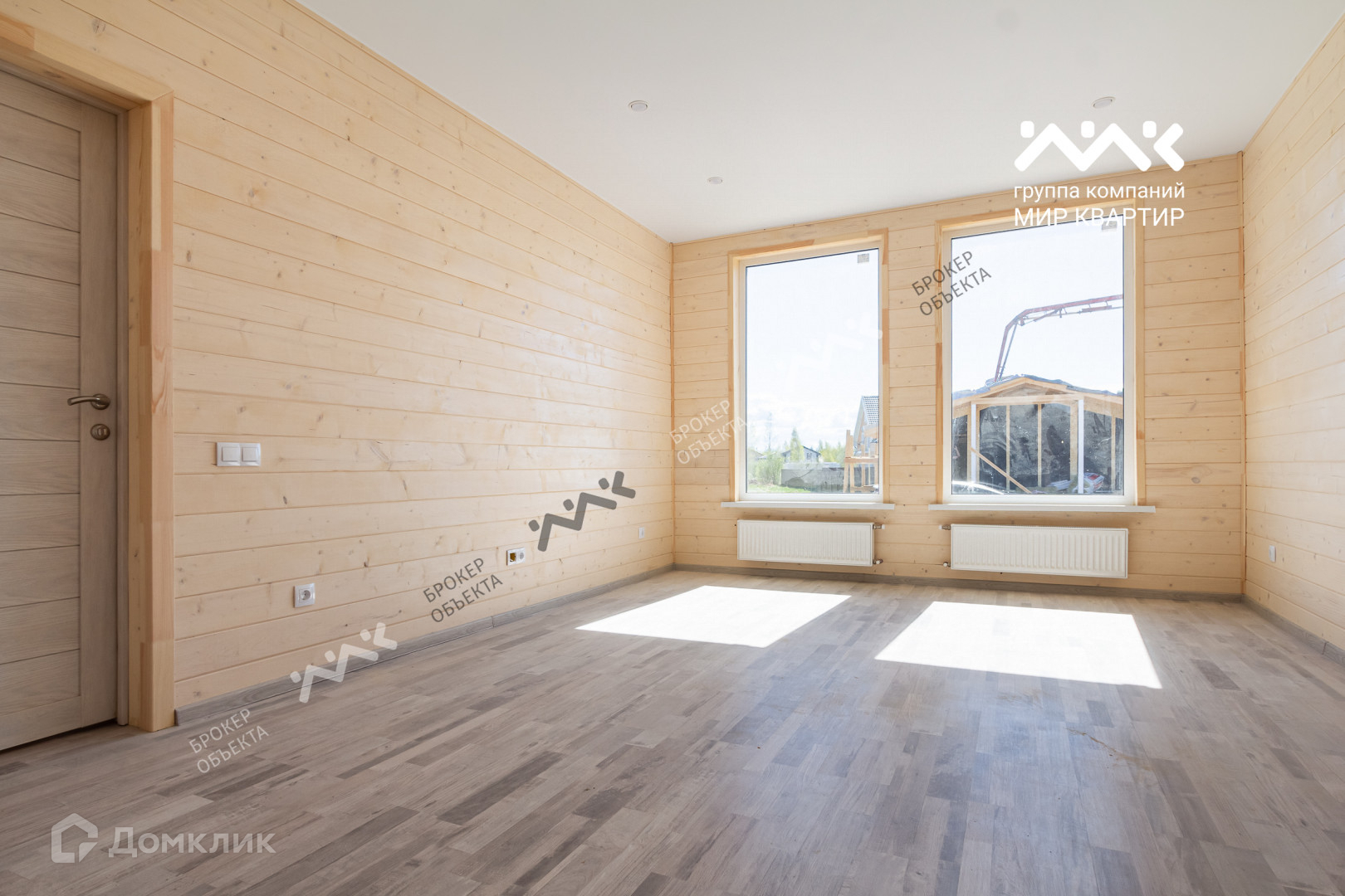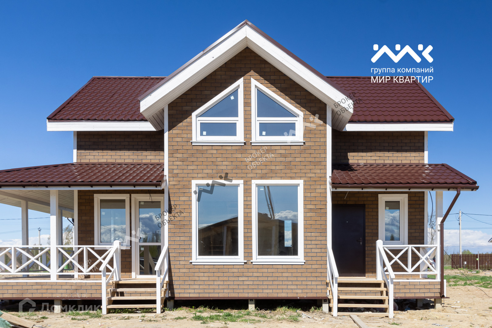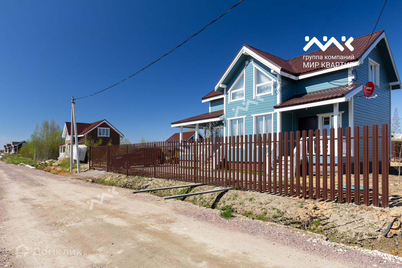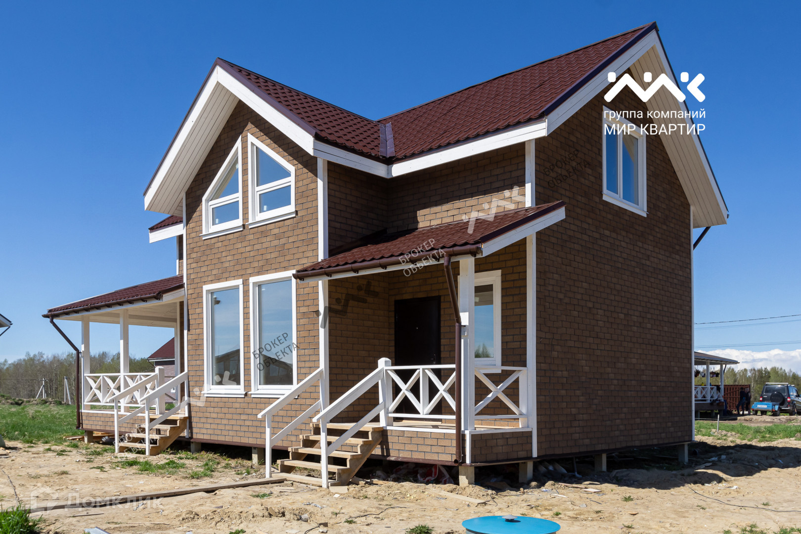 - готовый «под ключ» на двух этажах расположены пять жилых комнат, два санузла и электросауна. Крыша уложена мягкой кровлей. Внутри дома стены отделаны крашеной сухой доской, в комнатах уложен ламинат, в санузлах — плитка и установлена мебель и сантехника. В дом заведена вода (скважина) и электричество 15 кВт. Во дворе сделан заезд на участок, возведен фасадный забор 15 метров, установлена станция биологической очистки;