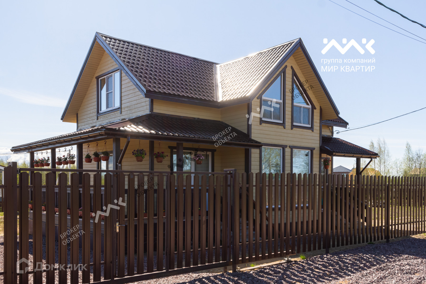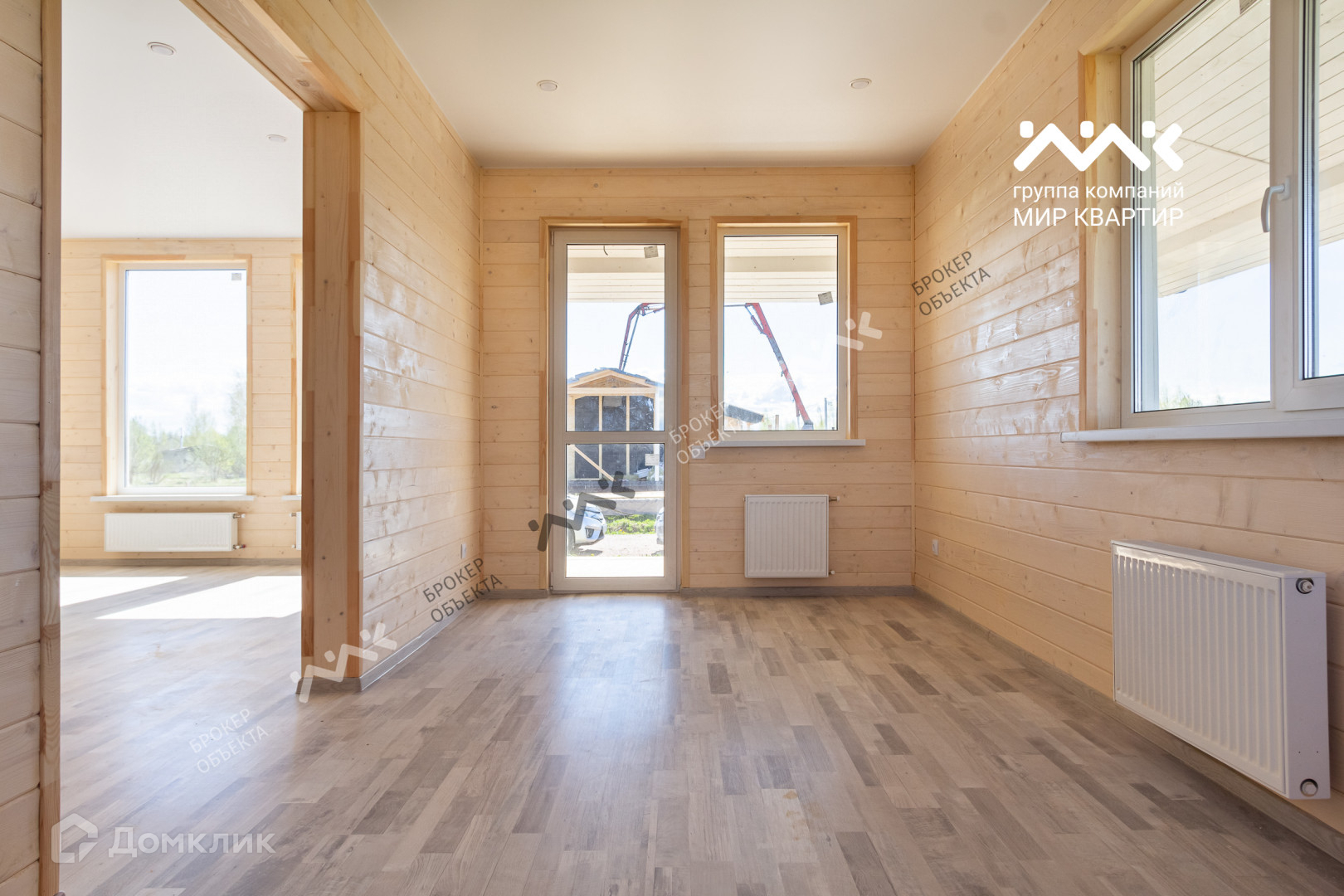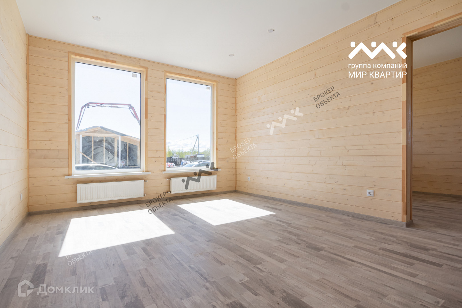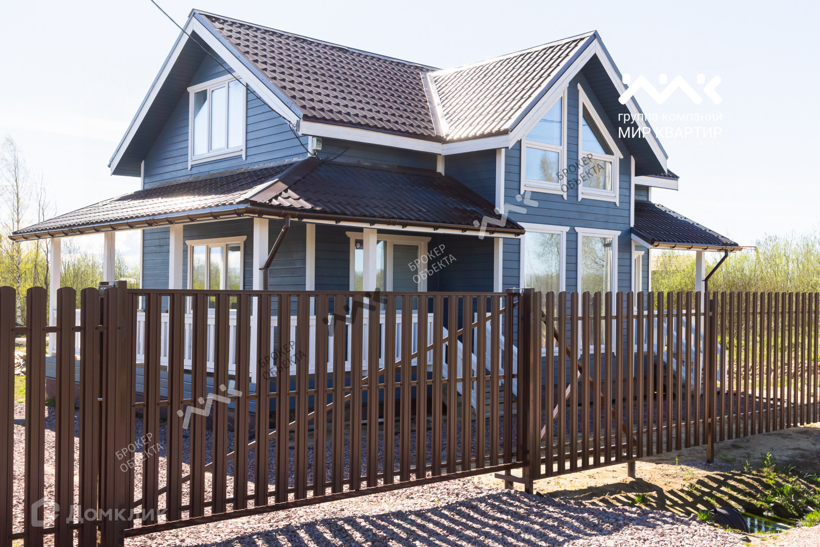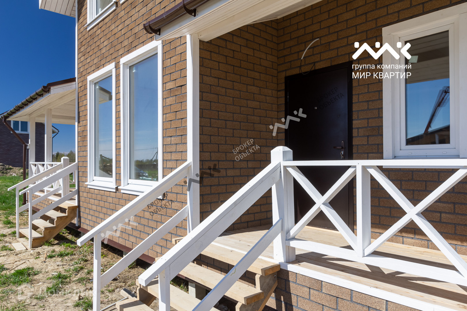 - готовый «под ключ» на двух этажах расположены пять жилых комнат, два санузла и электросауна. Крыша уложена мягкой кровлей. Внутри дома стены отделаны крашеной сухой доской, в комнатах уложен ламинат, в санузлах — плитка и установлена мебель и сантехника. В дом заведена вода (скважина) и электричество 15 кВт. Во дворе сделан заезд на участок, возведен фасадный забор 15 метров, установлена станция биологической очистки;