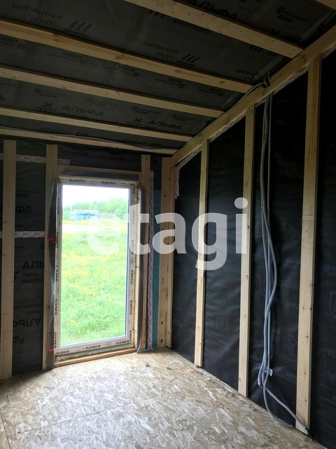 Дом возводится по каркасной технологии. Внутри дома окрашены стены, в комнатах уложен ламинат, на кухне и в санузле плитка, оснащен сантехникой и электрокотлом.